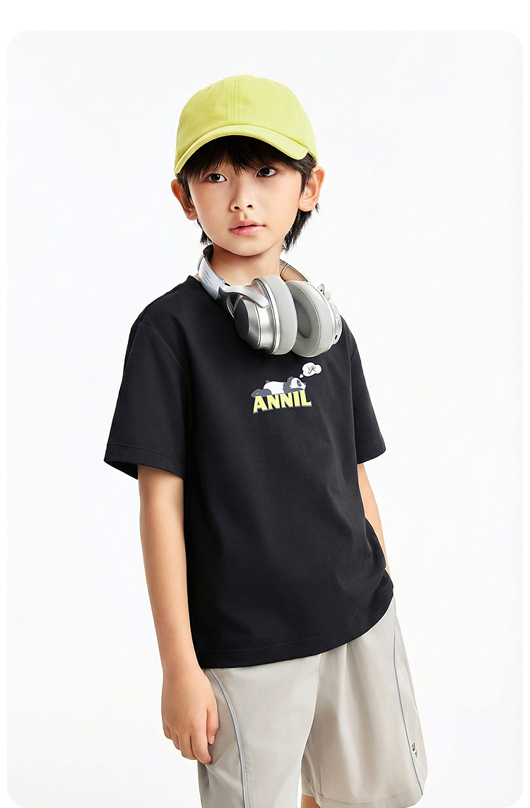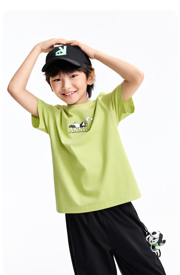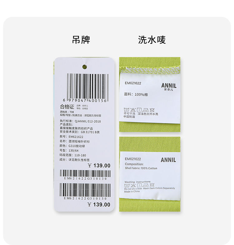 男女童圆领短袖针织衫夏季新款安奈儿童装EM621622