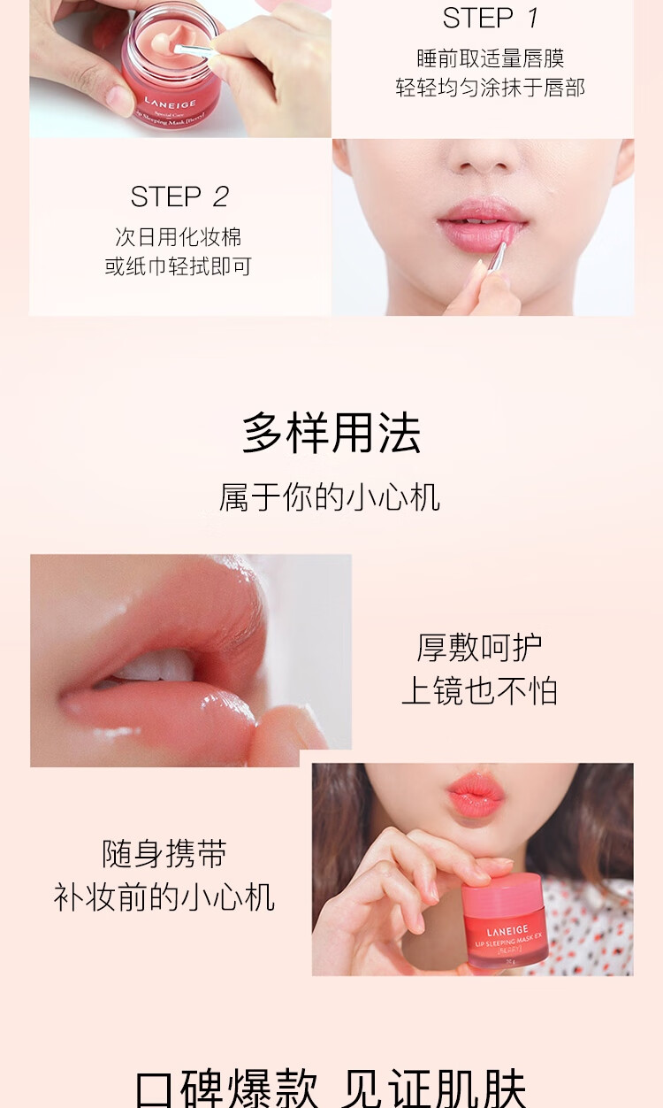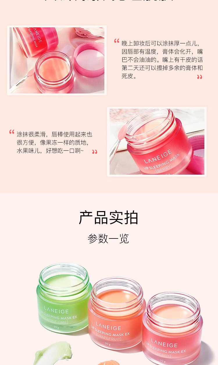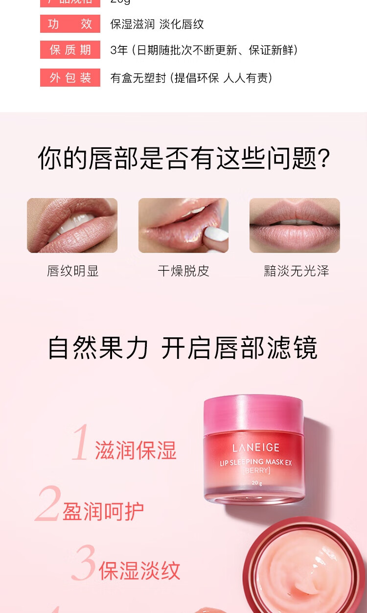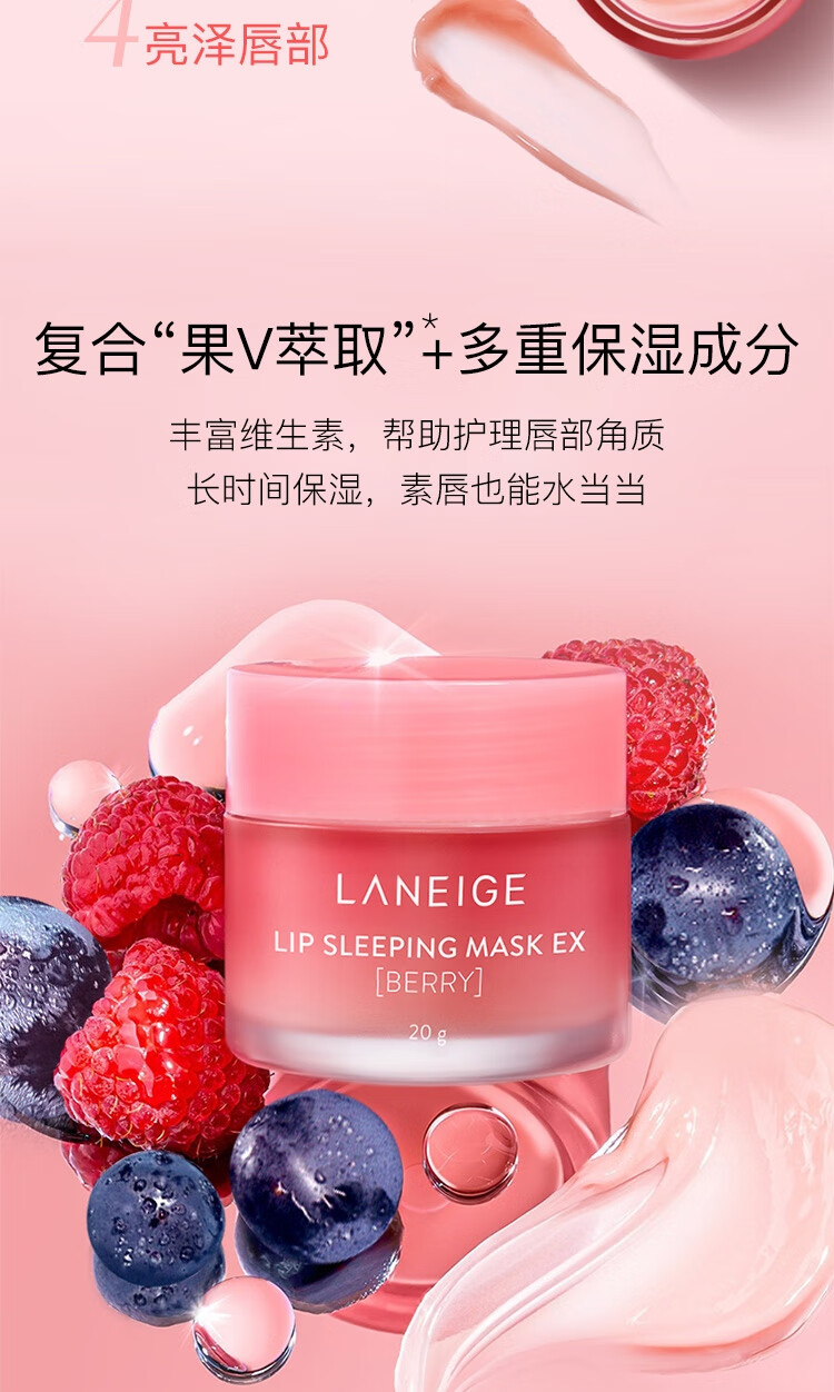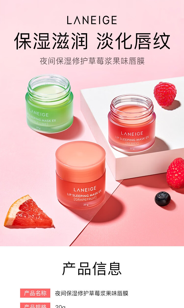 韩国兰芝唇膜 夜间保湿修护草莓浆果味20g