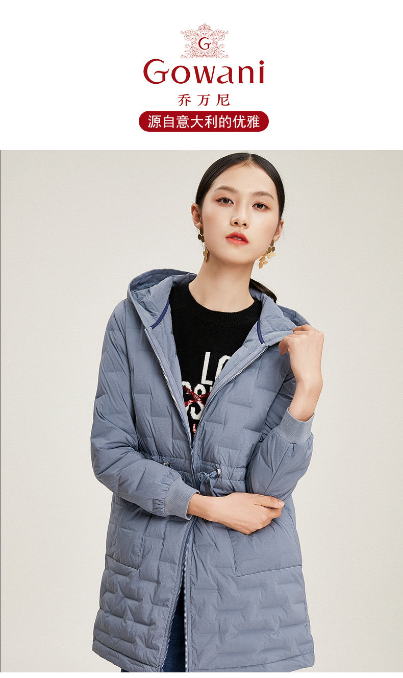 乔万尼羽绒服时尚白鸭绒冬季连帽外套中长款EN4T779