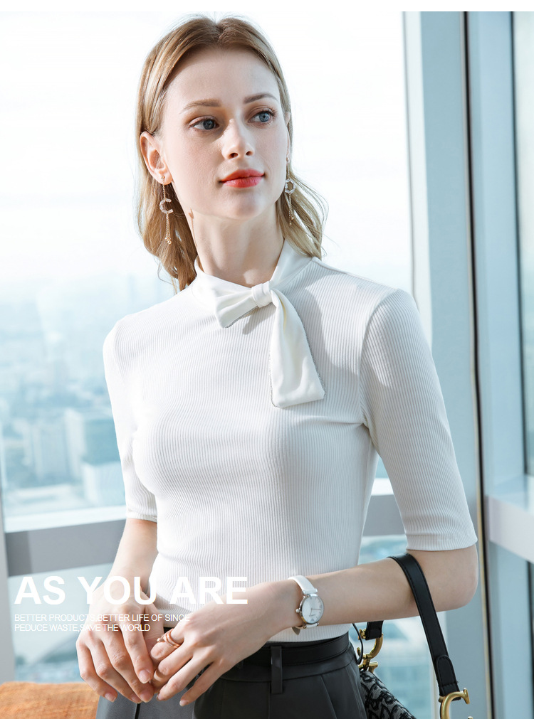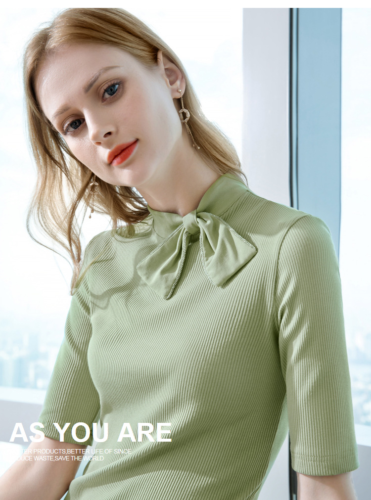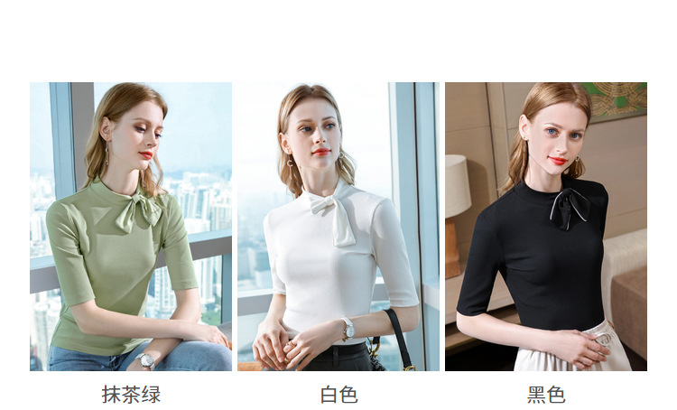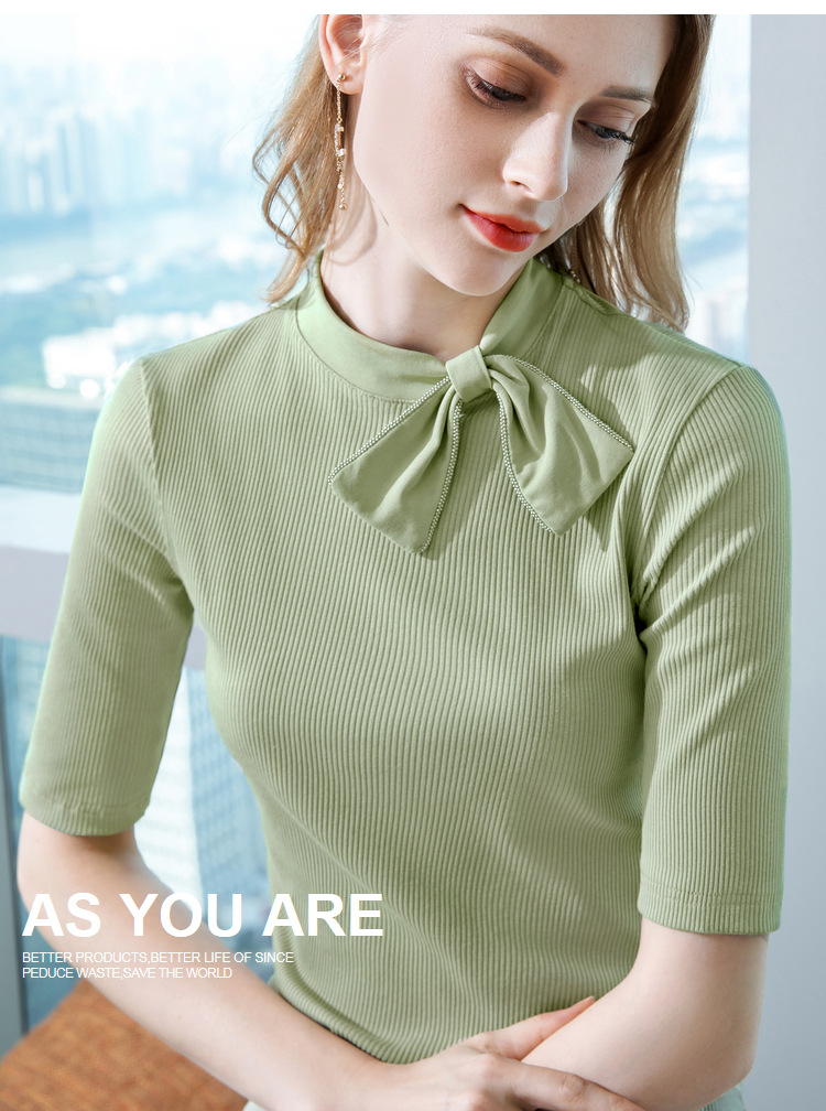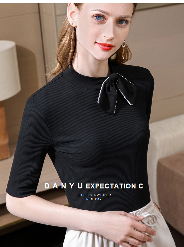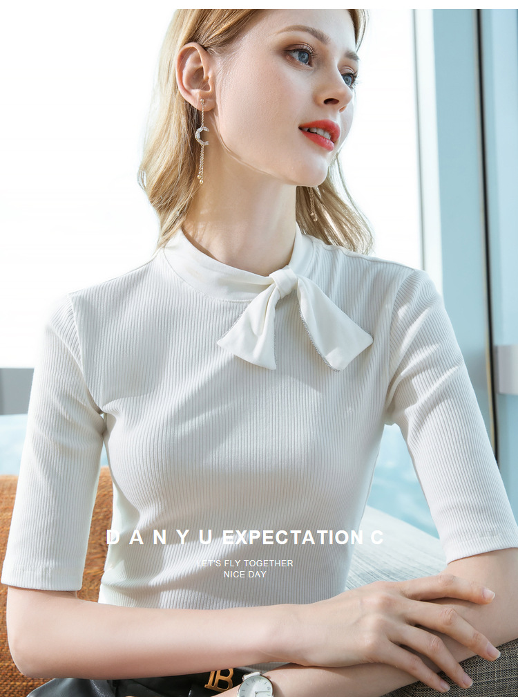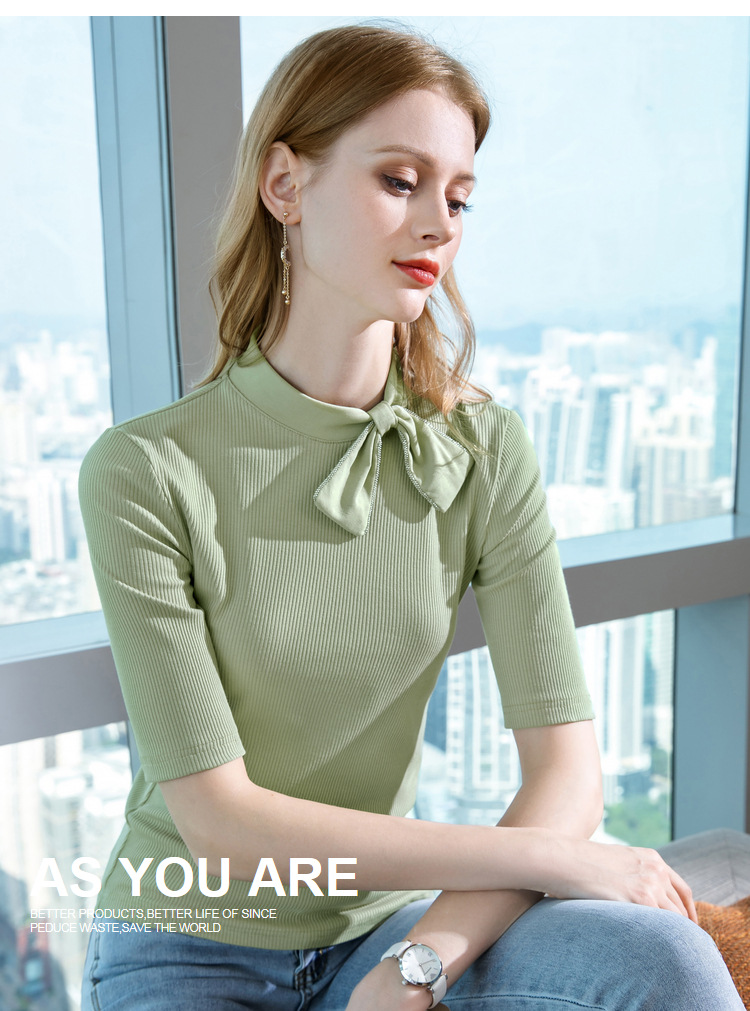 莫代尔五分袖t恤女女装海军风系带纯色中袖韩版女式上衣301866WX216