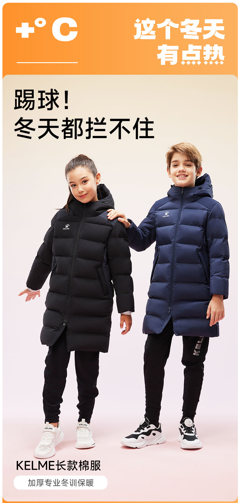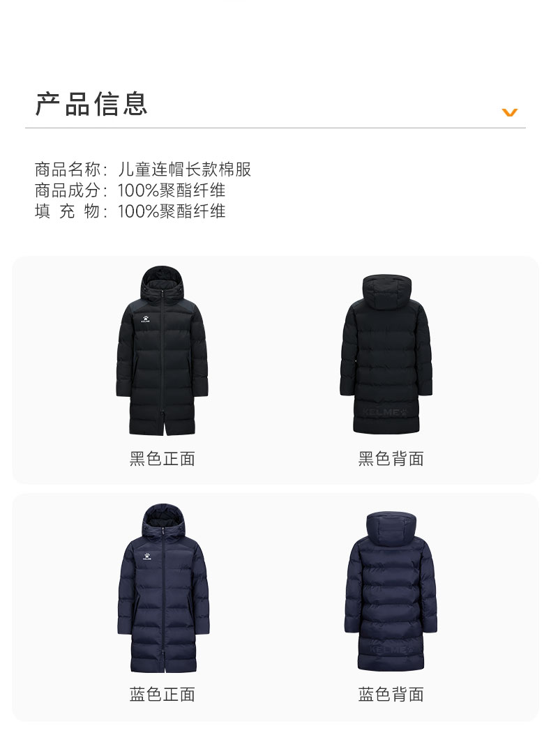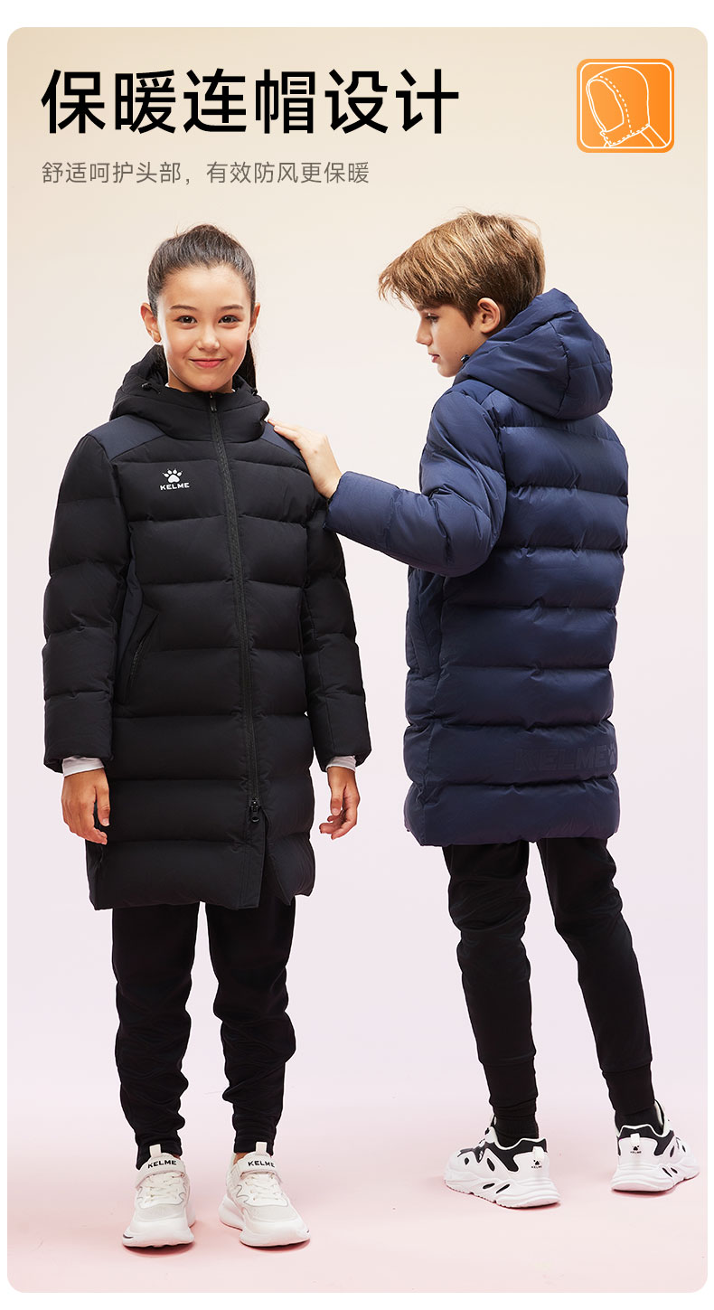 卡尔美2024新款儿童长款棉服