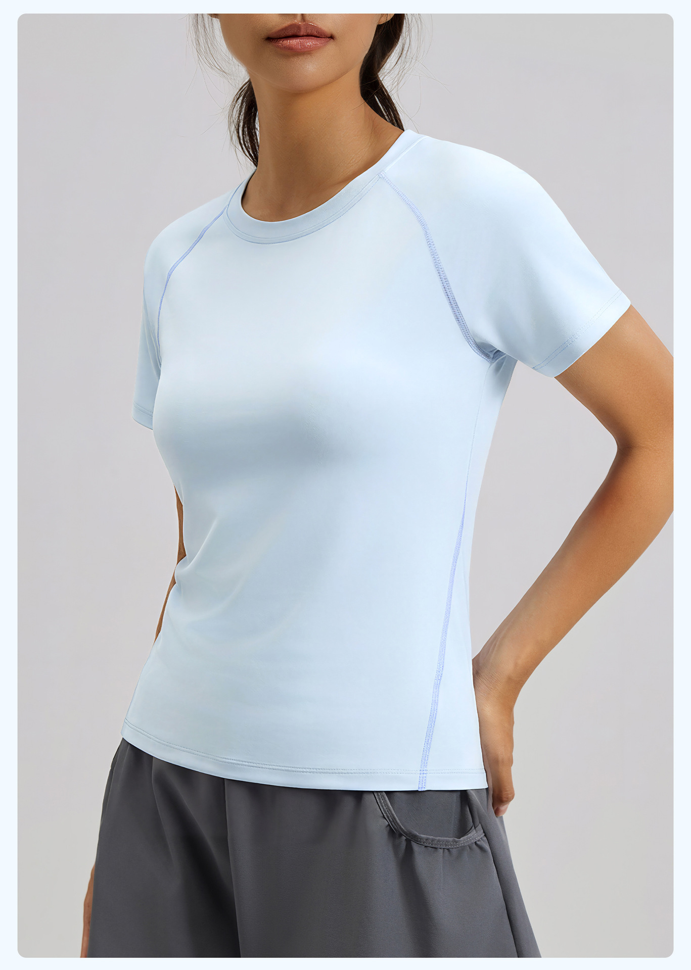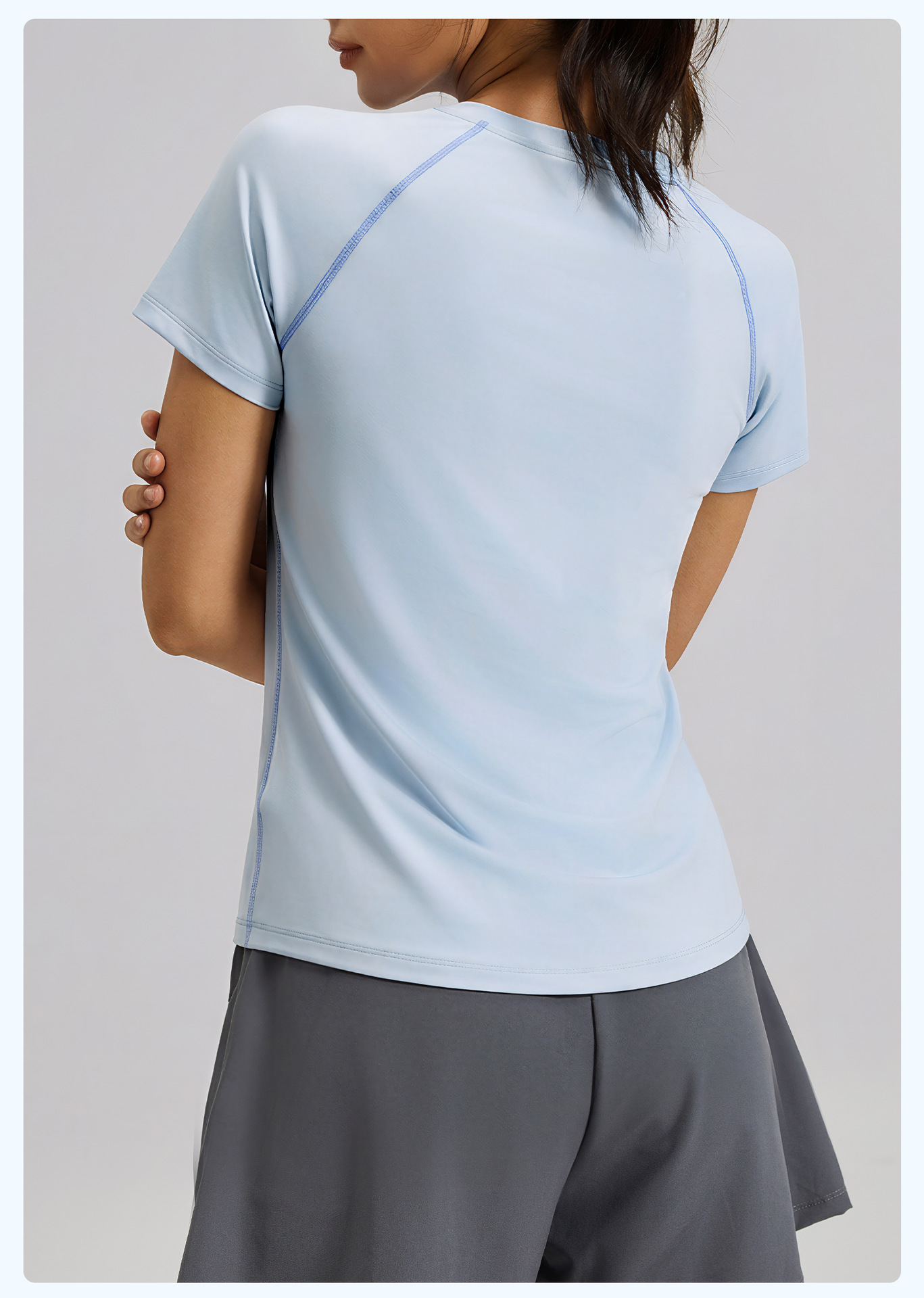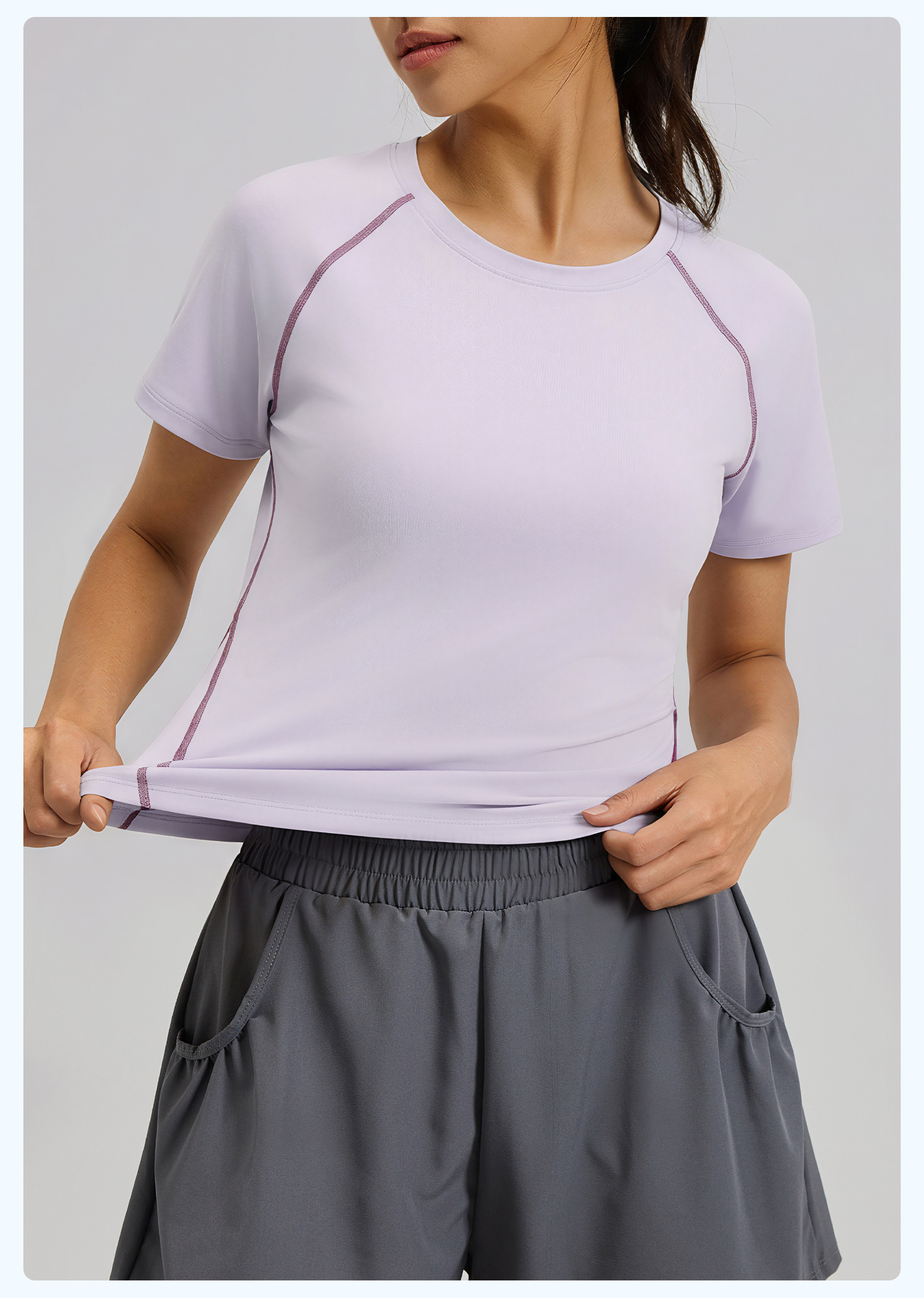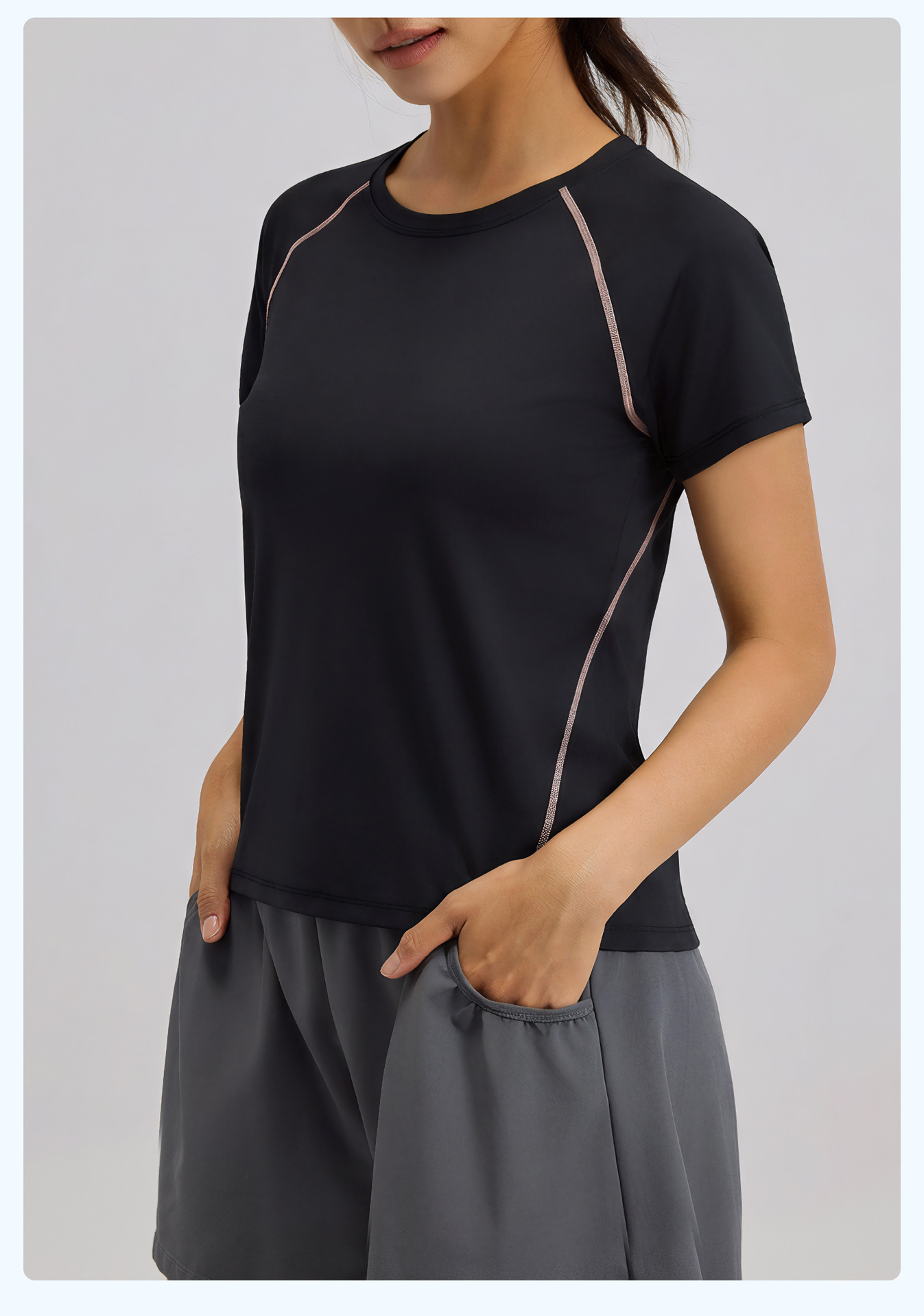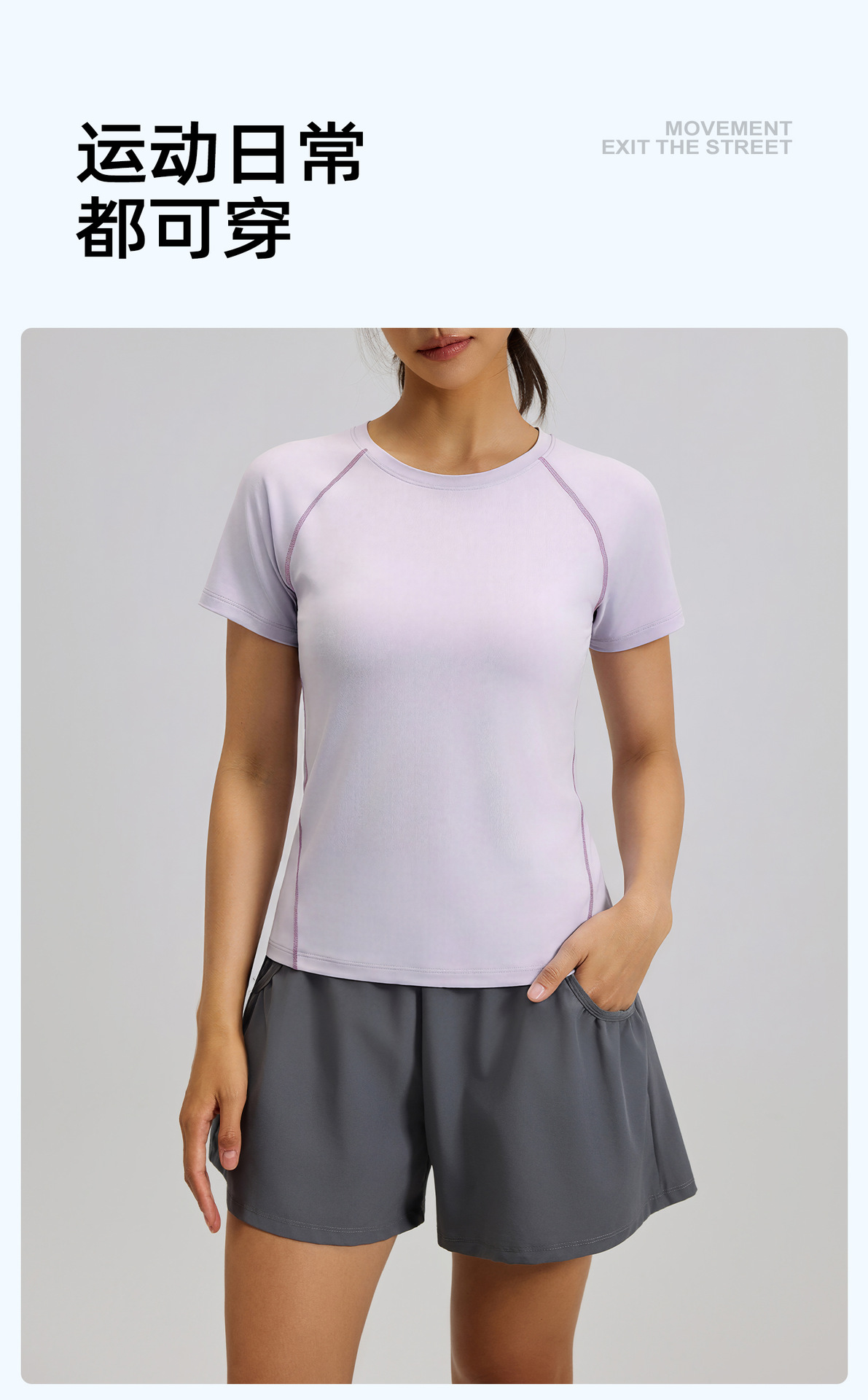 跃牌【瑜堂系列】夏季圆领运动风显瘦瑜伽上衣女透气宽松百搭运动短袖t恤JYWD033