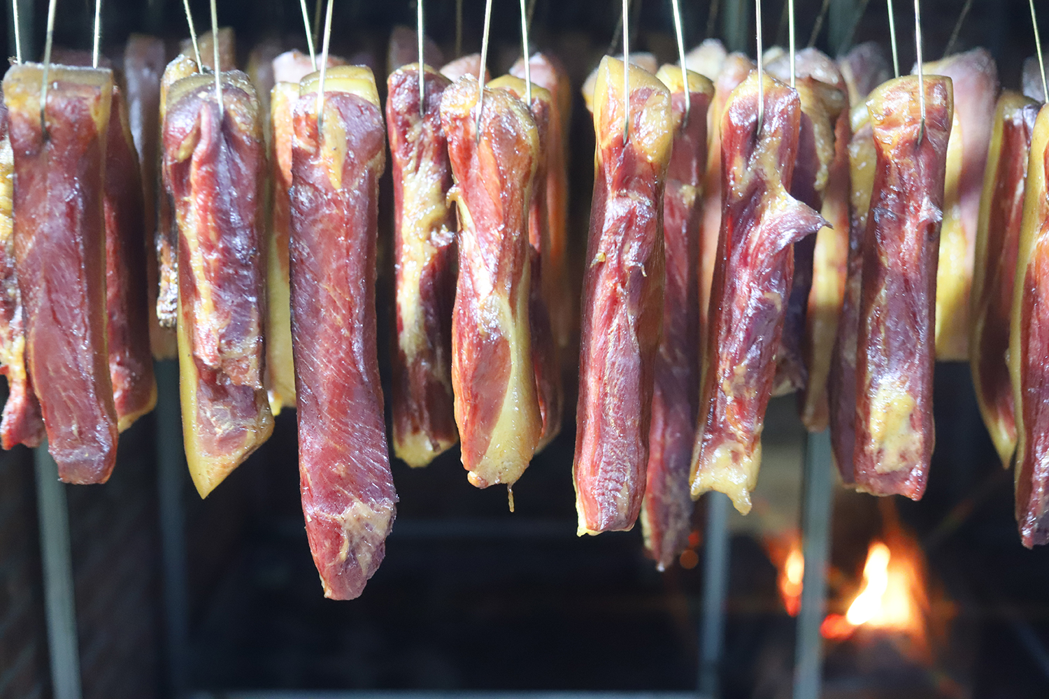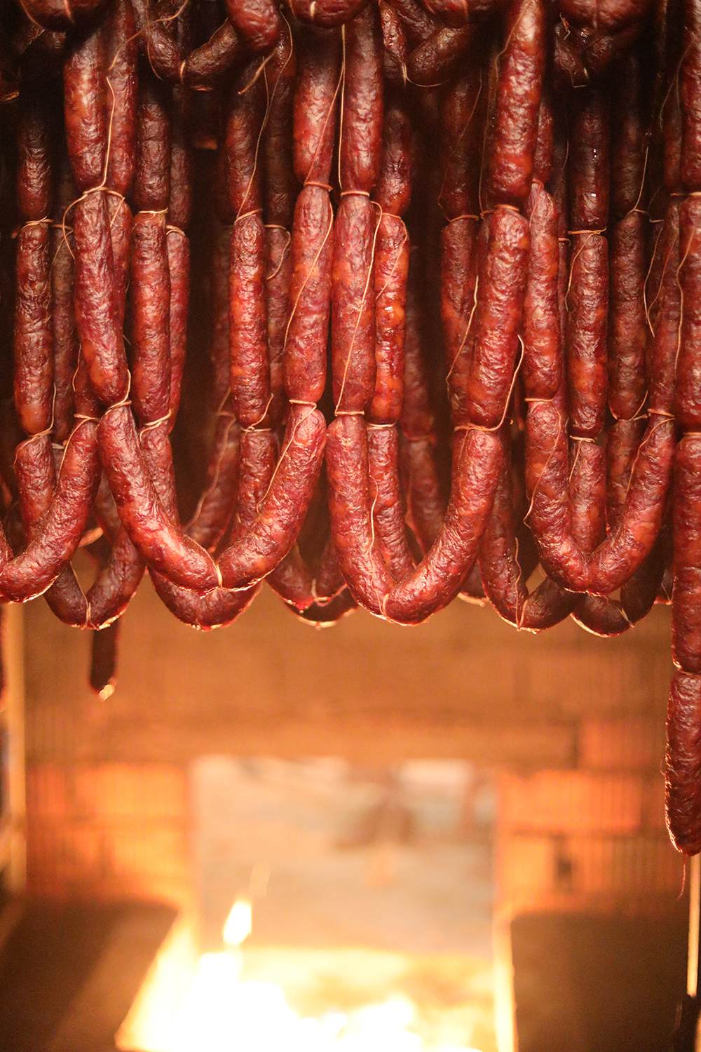 在猪肉的千种品鉴方式中,必定有一种是腊味。除了腊肉和香肠,还有腊排骨、排骨香肠等等。不同部位的原材料,多重工艺之后,在吸收盐和香料的同时,经历风和时间的洗礼,从而成就了那种令人回味无穷的醇香口感。