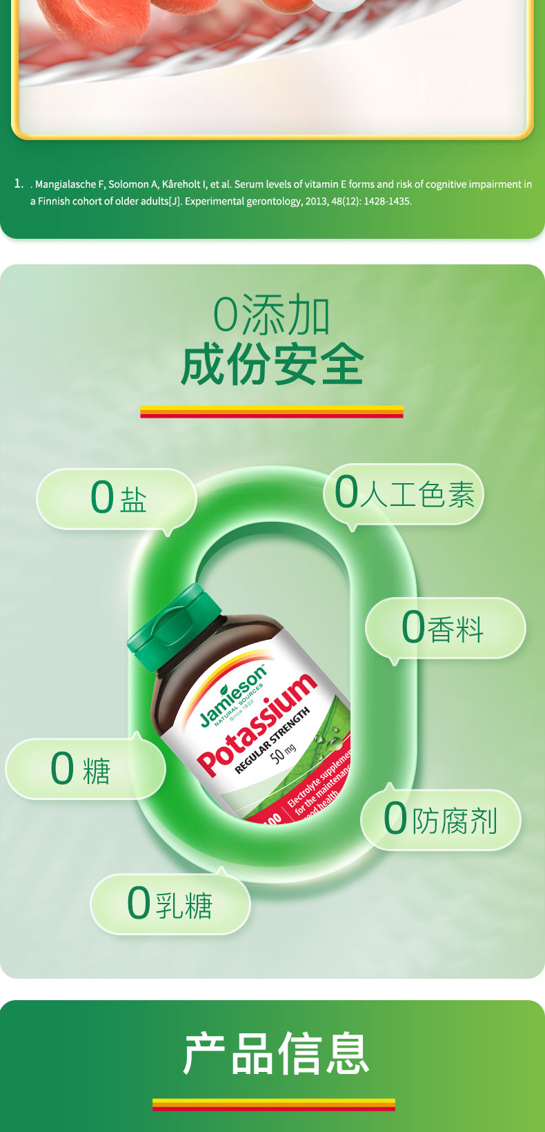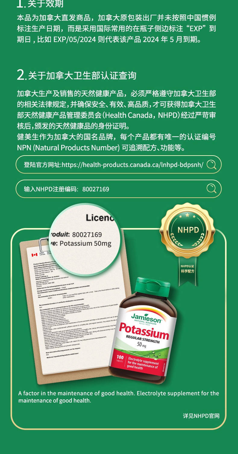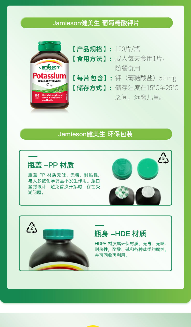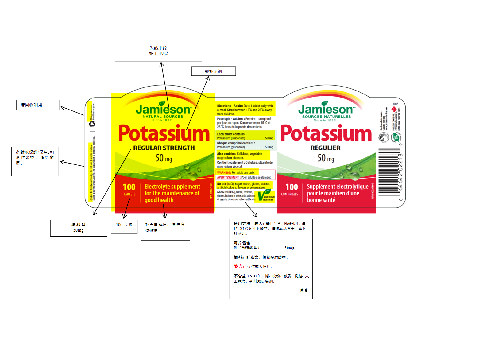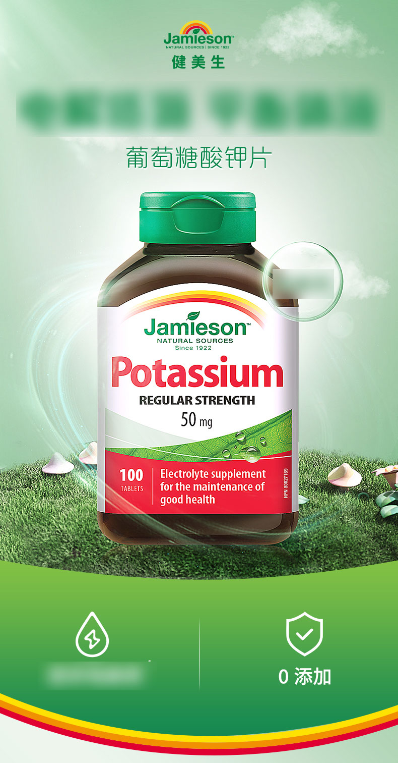 【分销】Jamieson健美生葡萄1糖酸钾片50mg100片