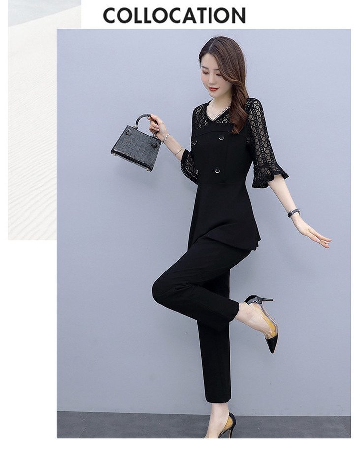 GYH 659气质显瘦两件套大码蕾丝拼接减龄