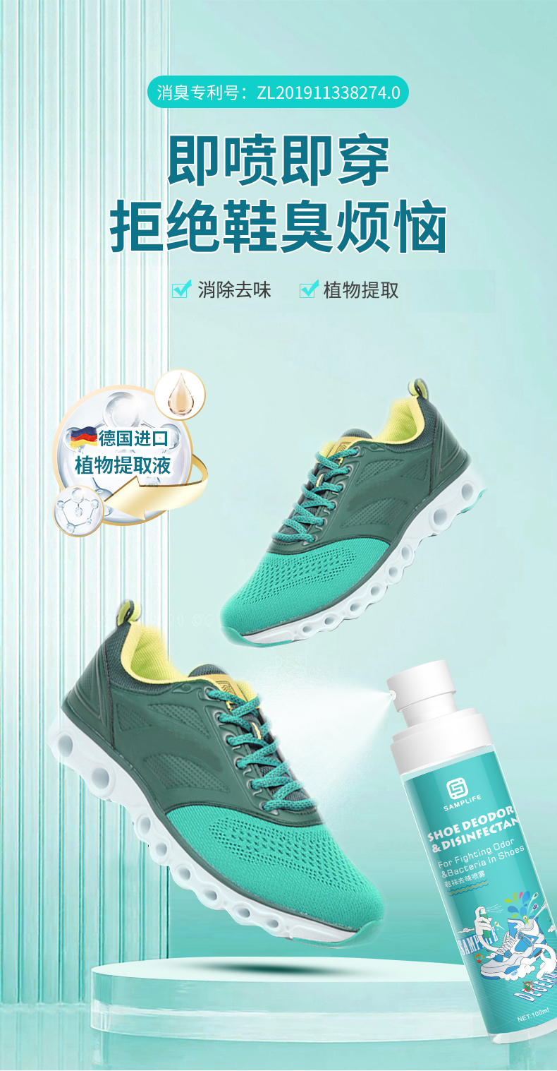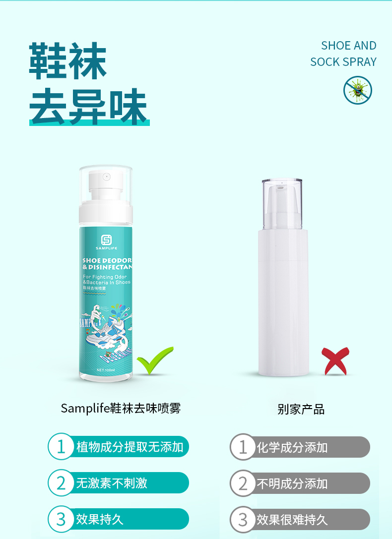 【鞋臭星人克星】SAMPLIFE鞋袜去味喷雾根源除臭植物提取液温和有用即喷即干