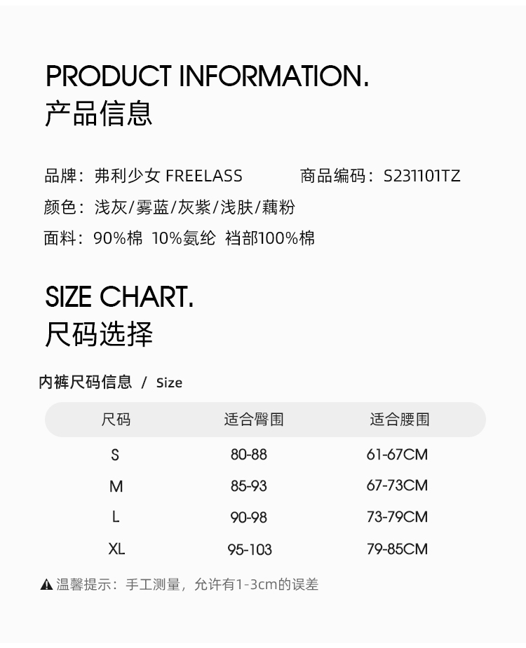 内裤为私密贴身物品,出于卫生考虑,拆封后不退不换,请选择好尺码下单,敬请谅解!