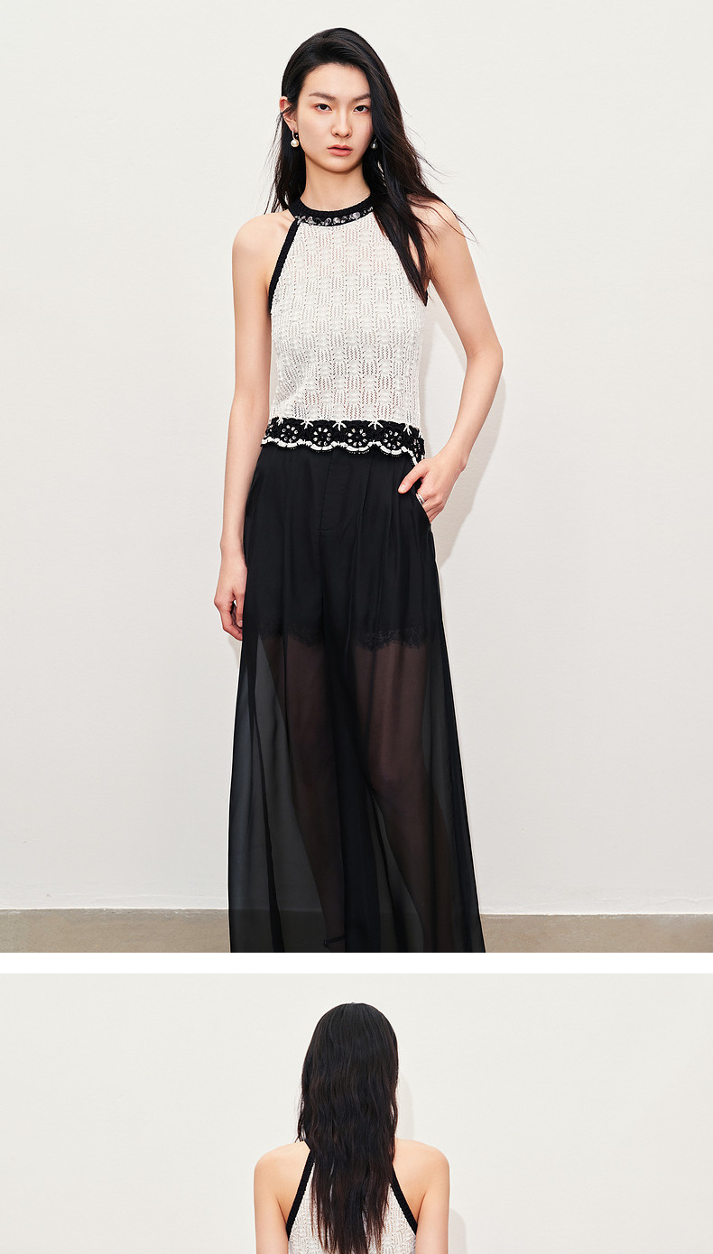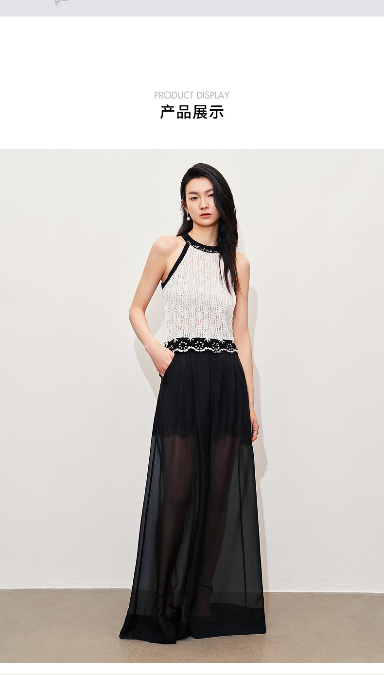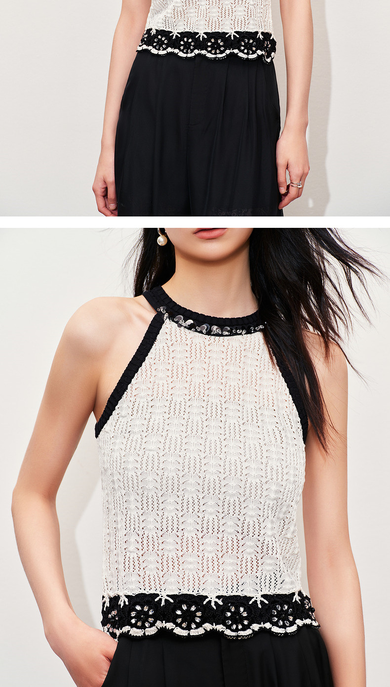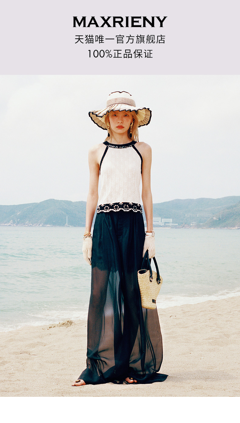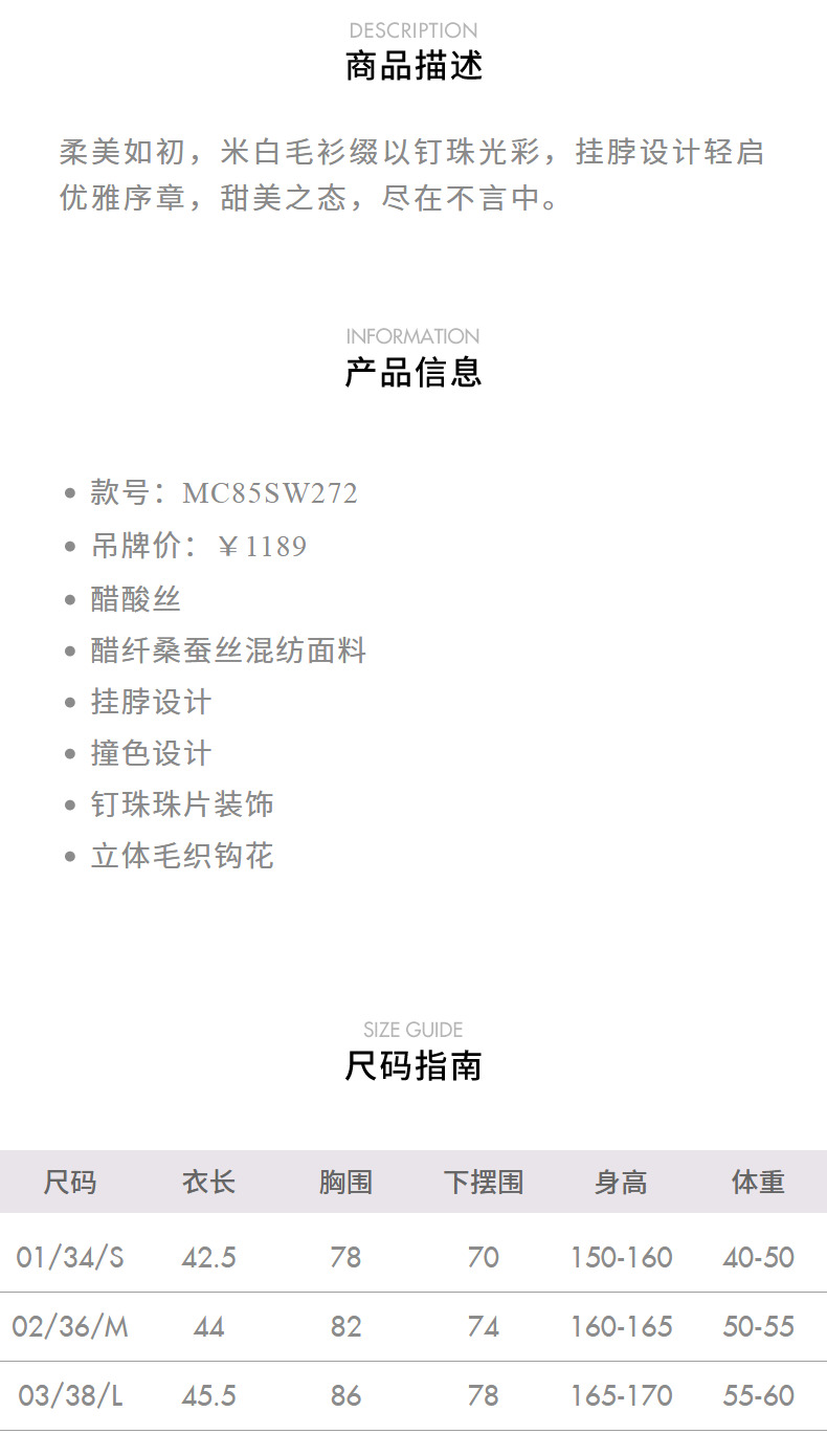 【商场同款】MAXRIENY钉珠装饰挂脖针织衫修身显瘦桑蚕丝上衣女(货号:MC85SW272)