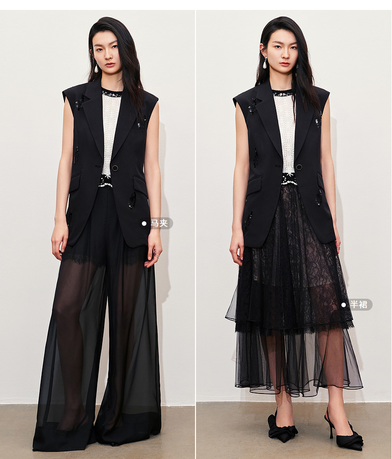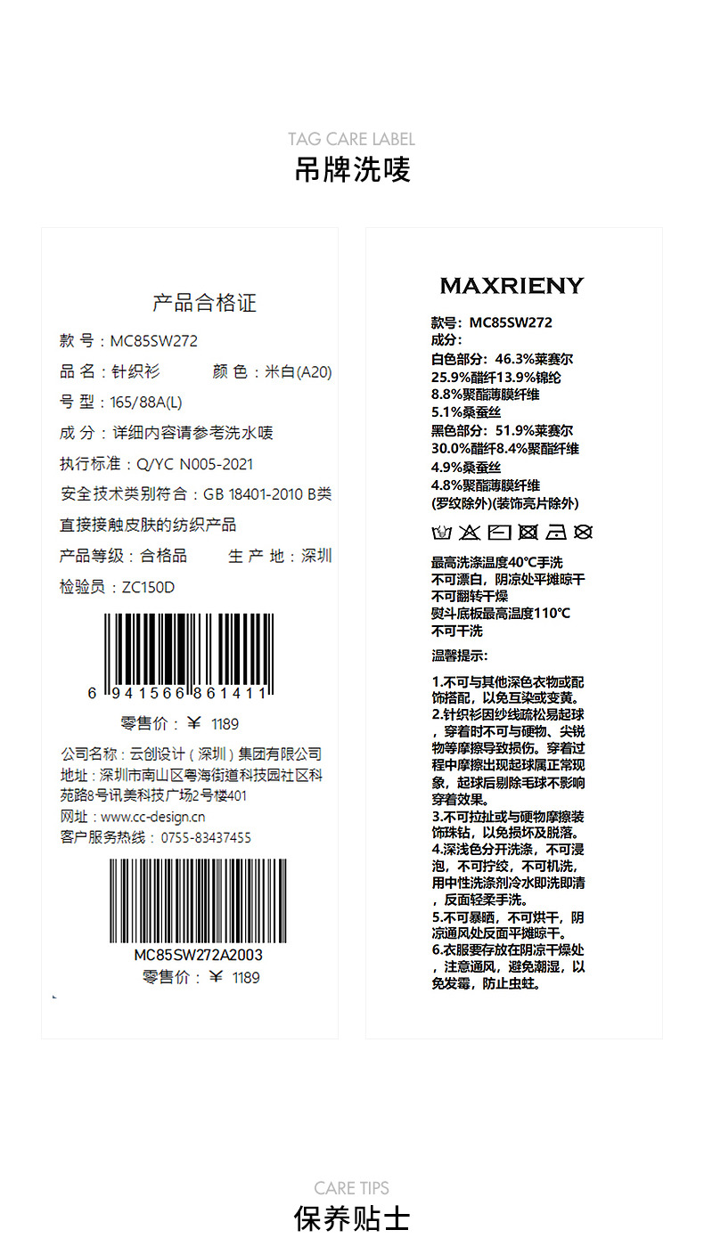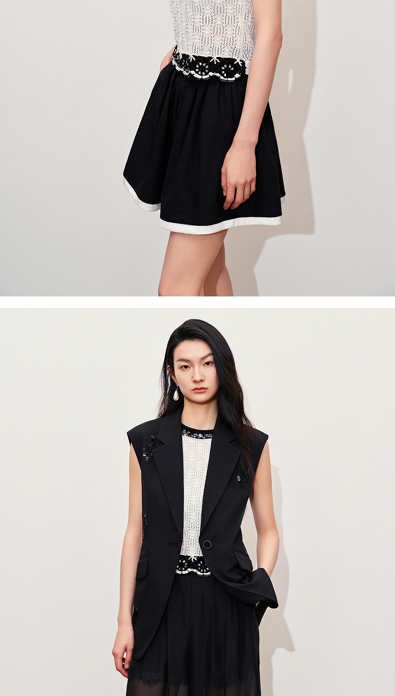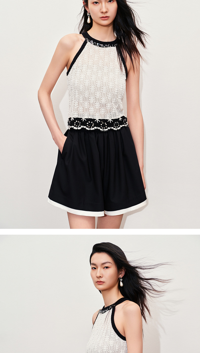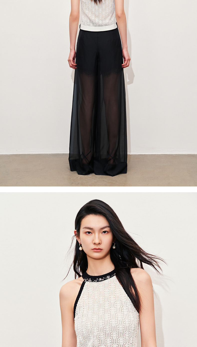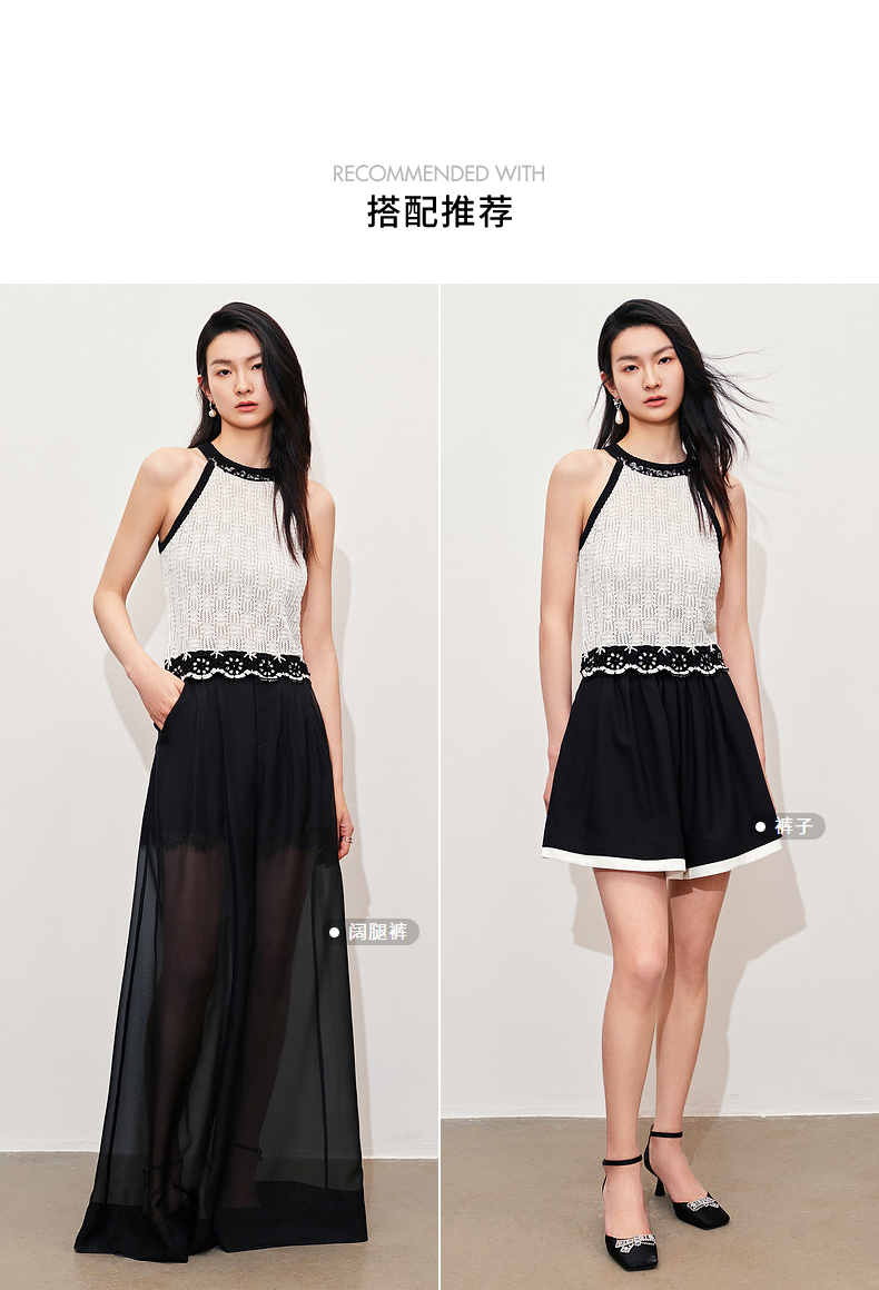 【商场同款】MAXRIENY钉珠装饰挂脖针织衫修身显瘦桑蚕丝上衣女(货号:MC85SW272)