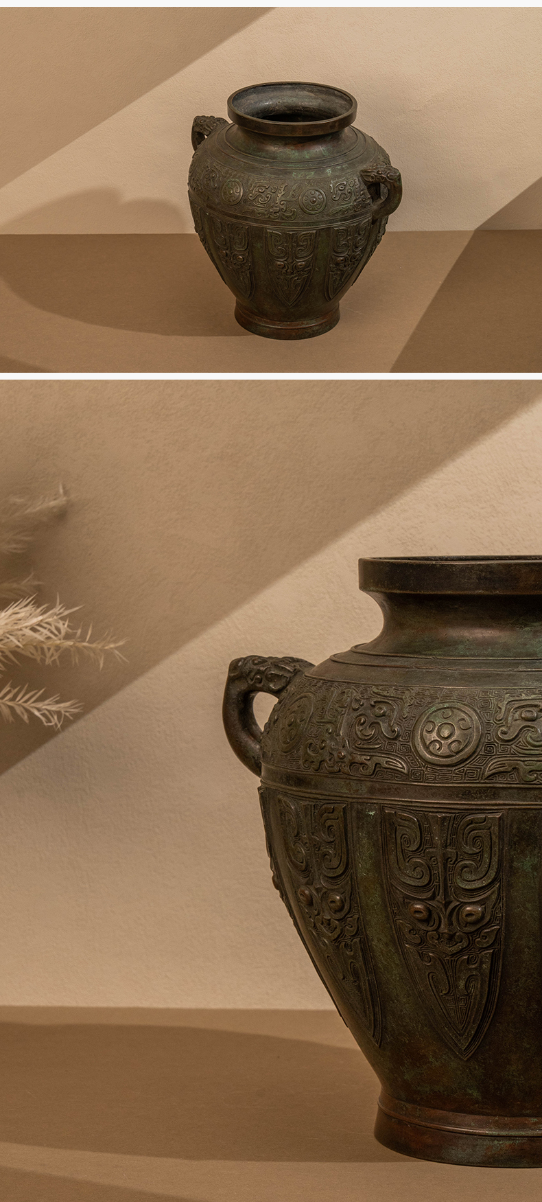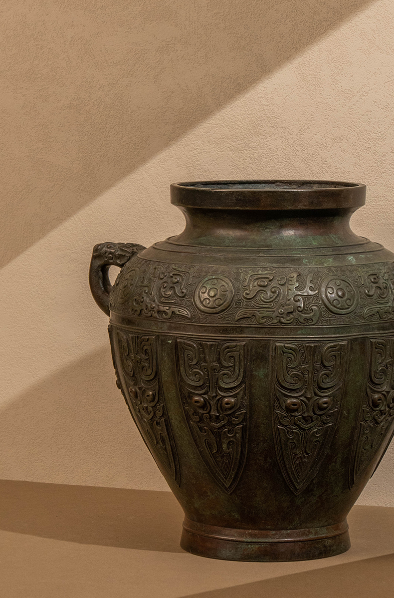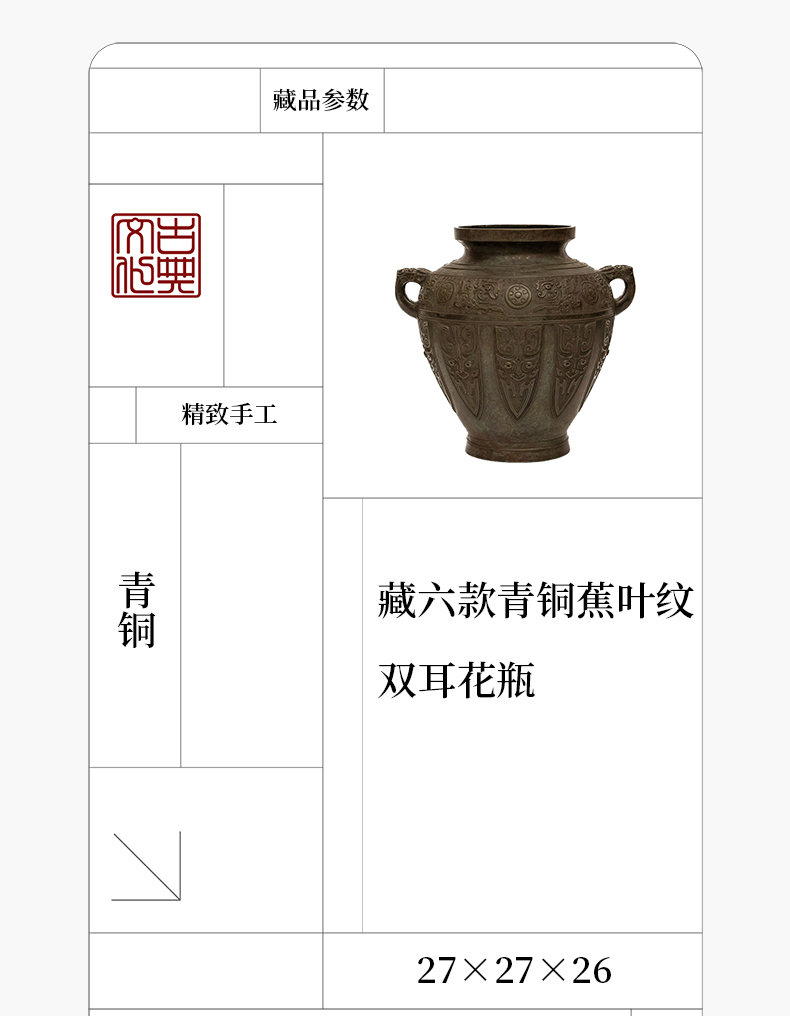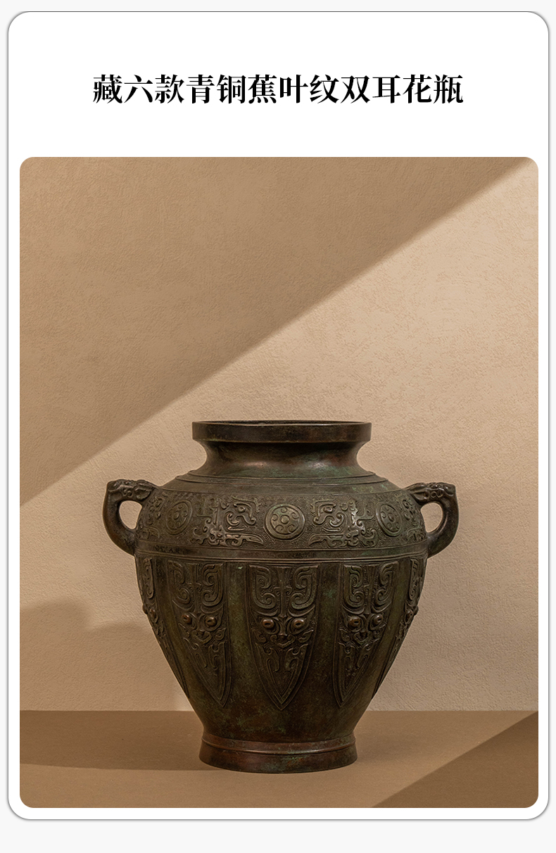 藏六款青铜蕉叶纹双耳花瓶