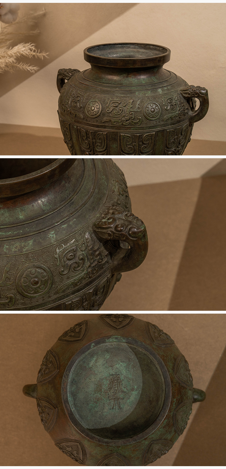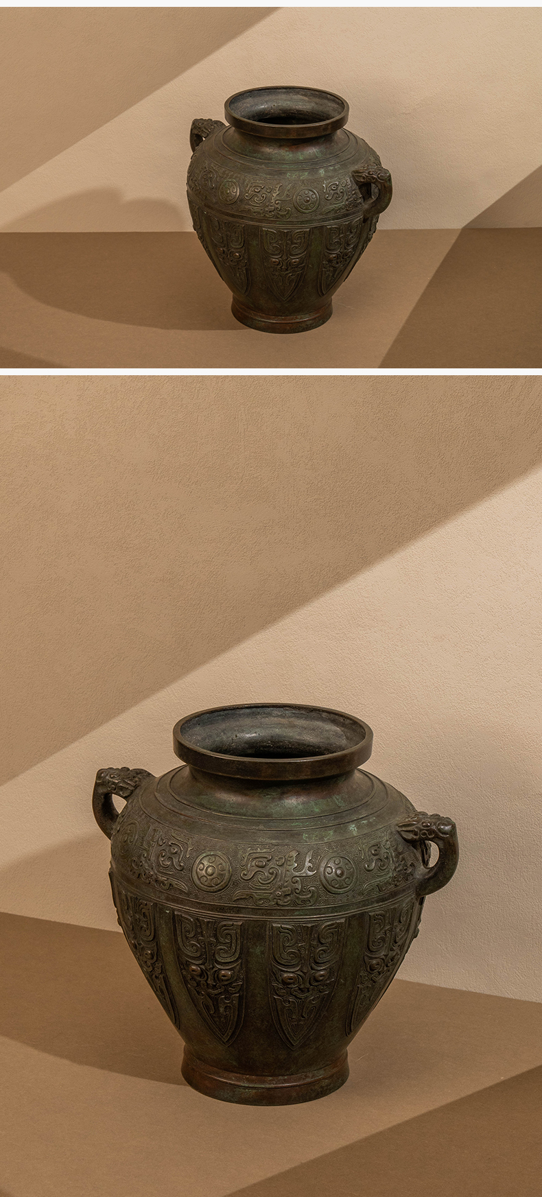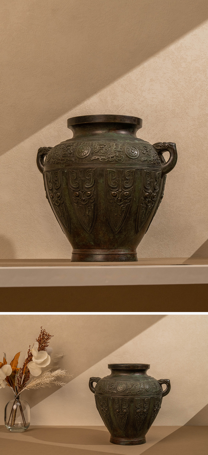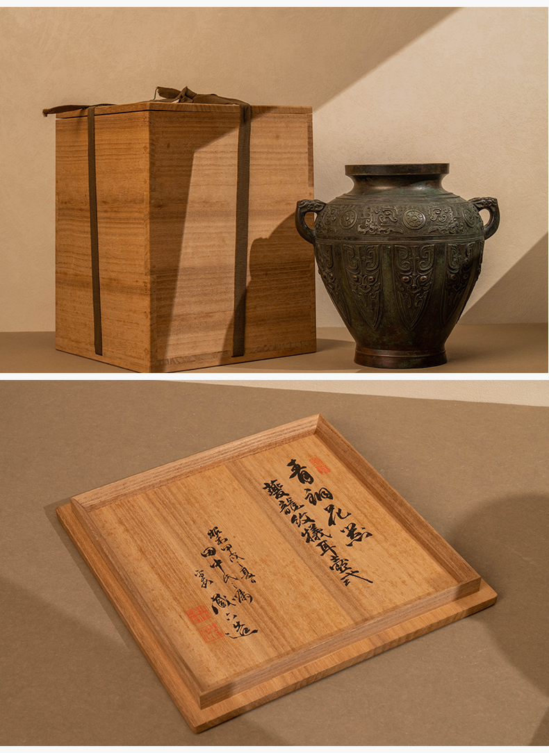 藏六款青铜蕉叶纹双耳花瓶