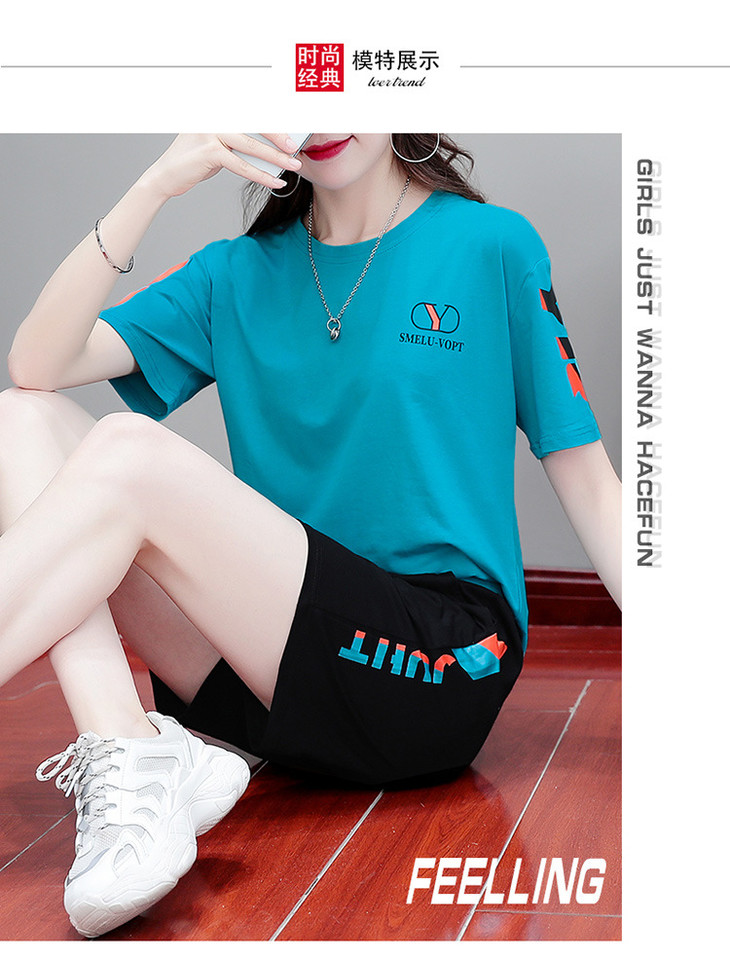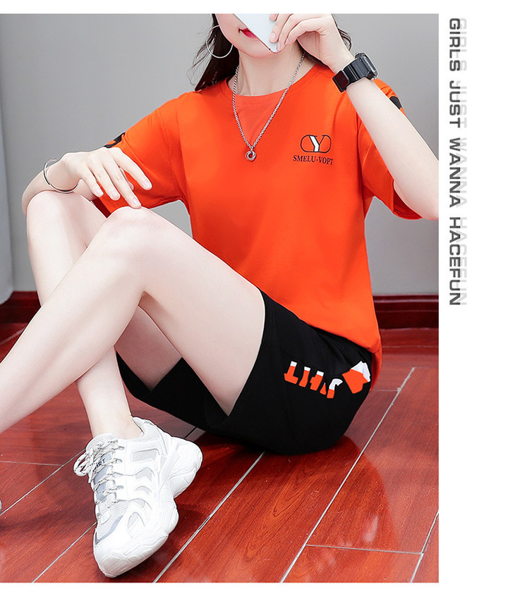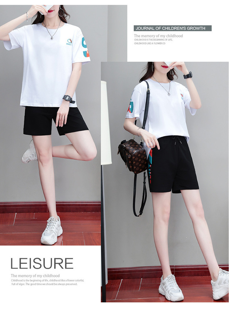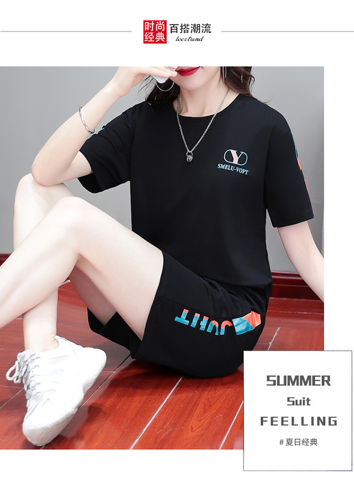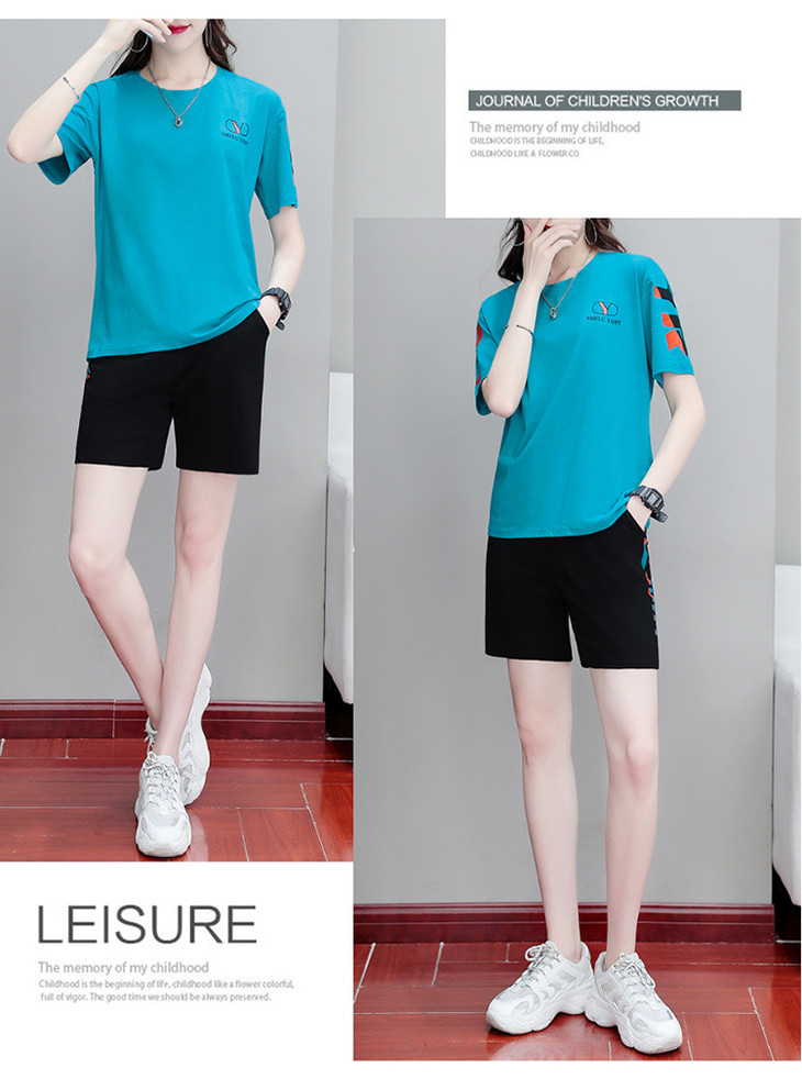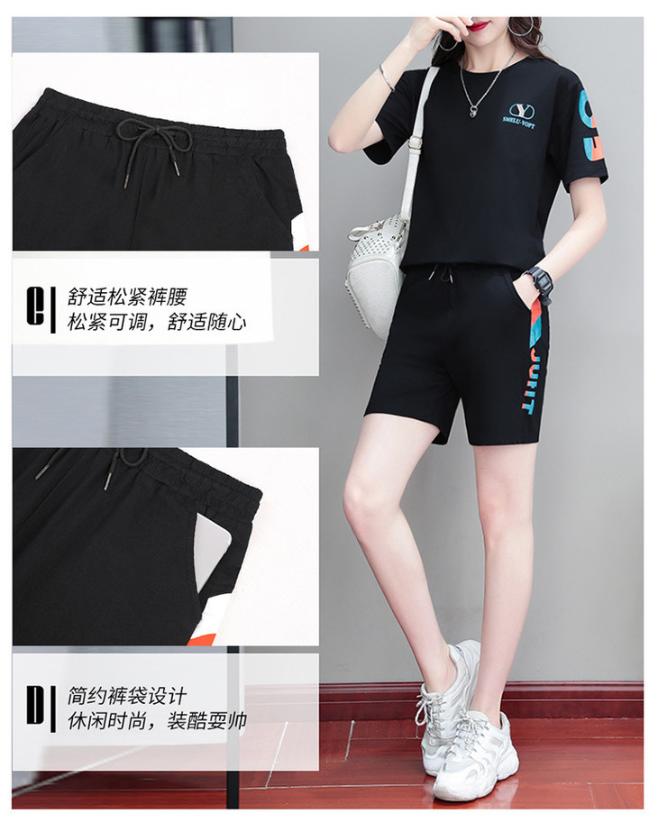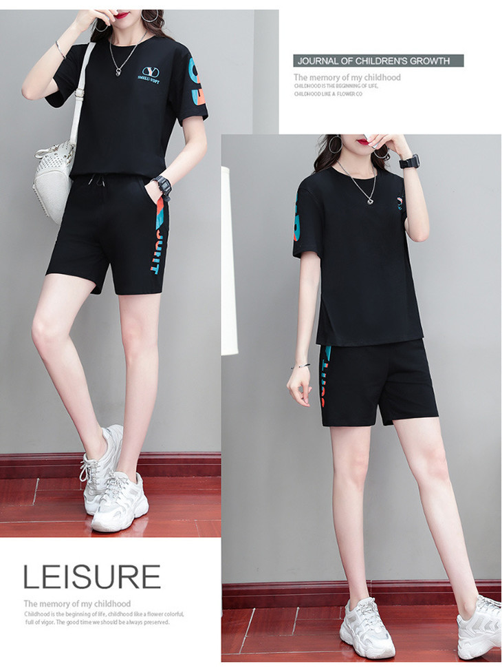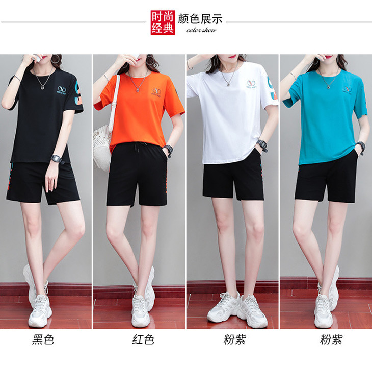 TR-CXJ8826 运动服套装女夏季薄款2021时尚宽松纯棉休闲装洋气减龄短袖两件套
