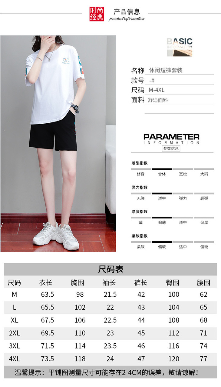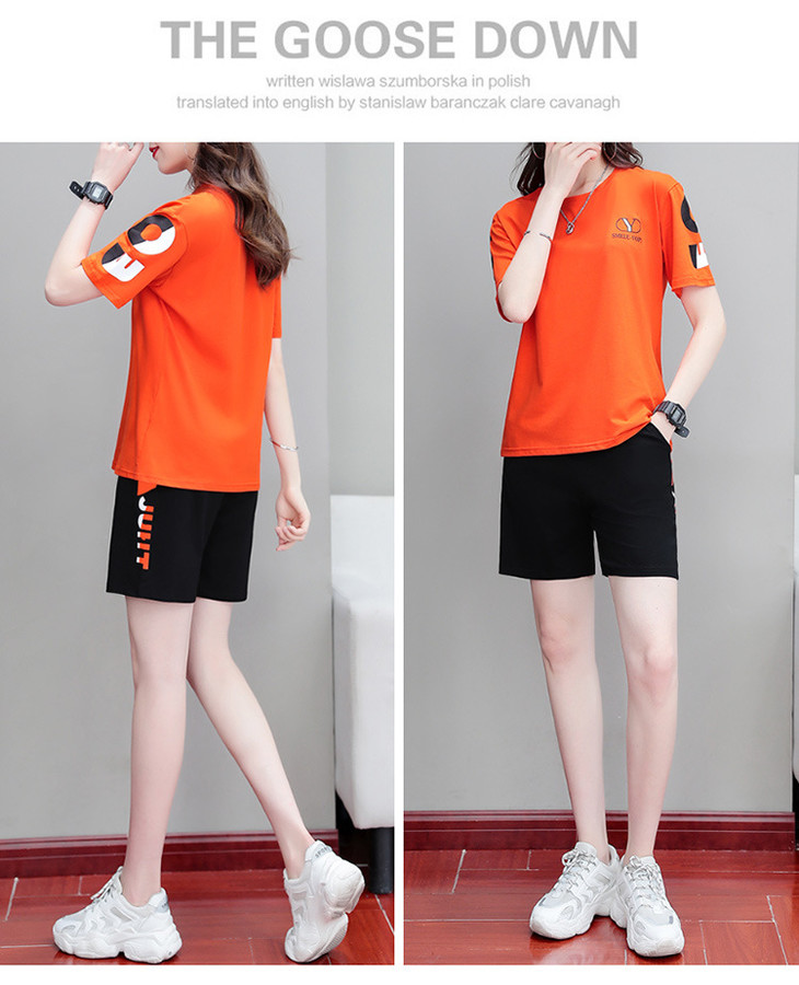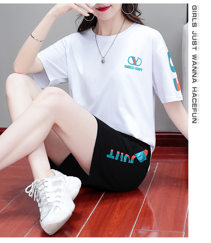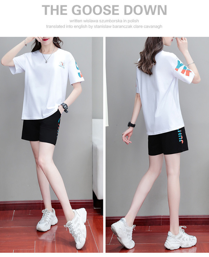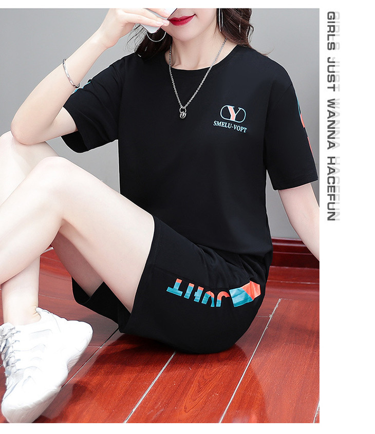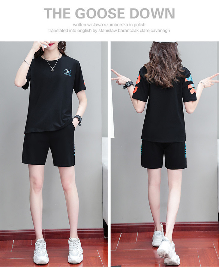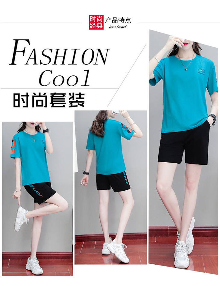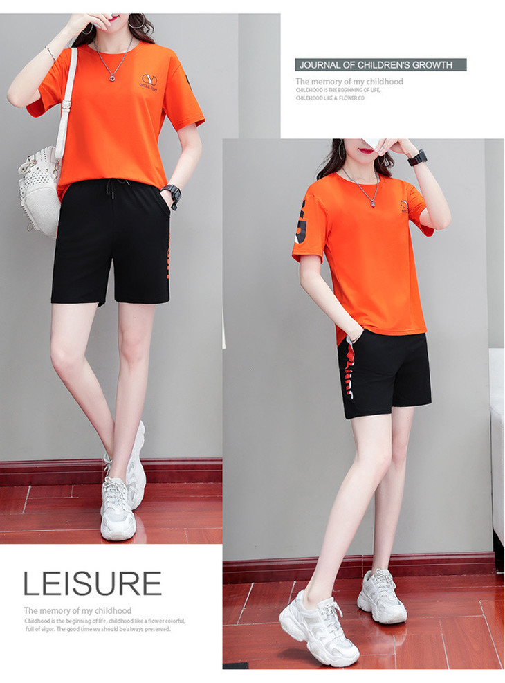 TR-CXJ8826 运动服套装女夏季薄款2021时尚宽松纯棉休闲装洋气减龄短袖两件套