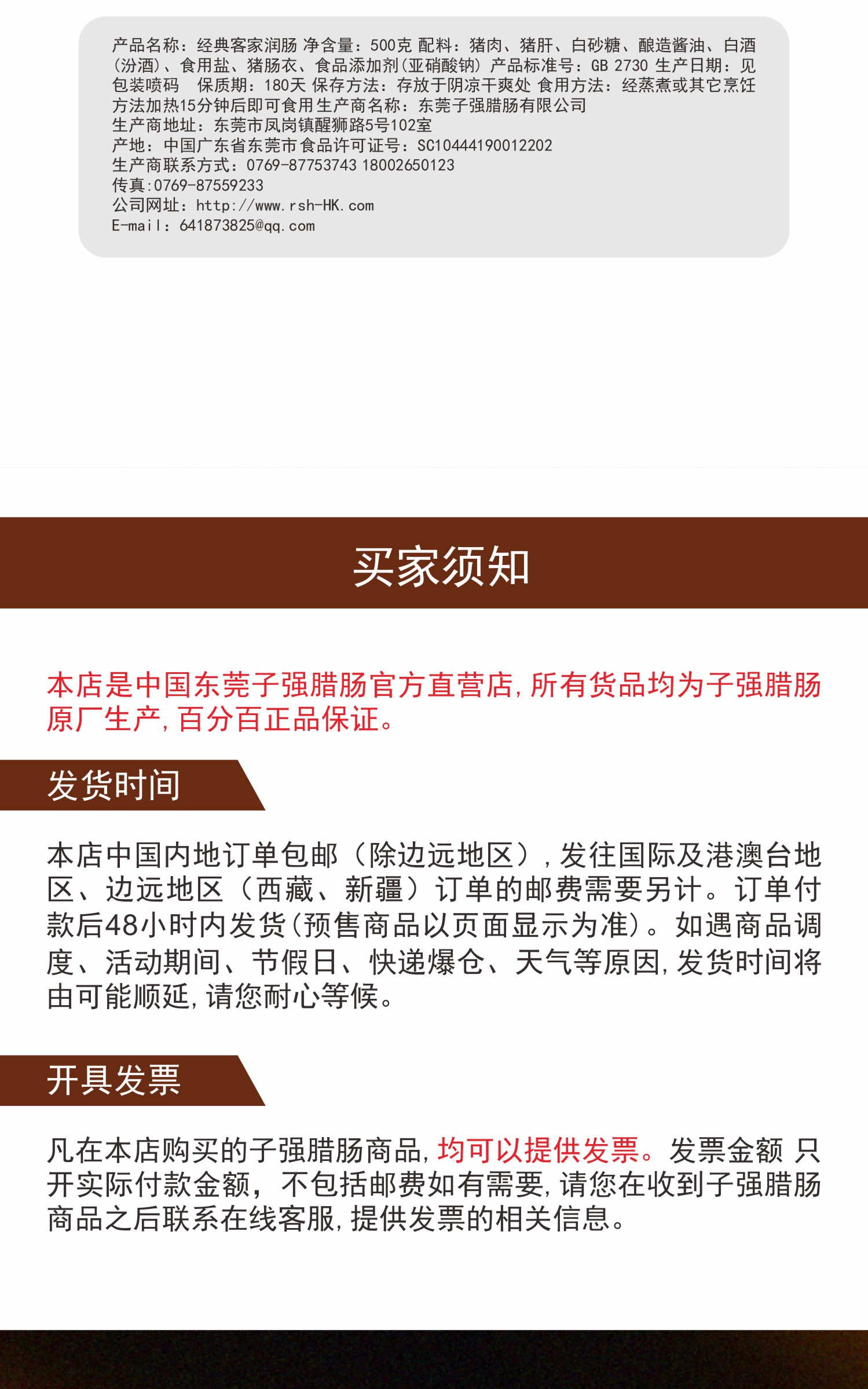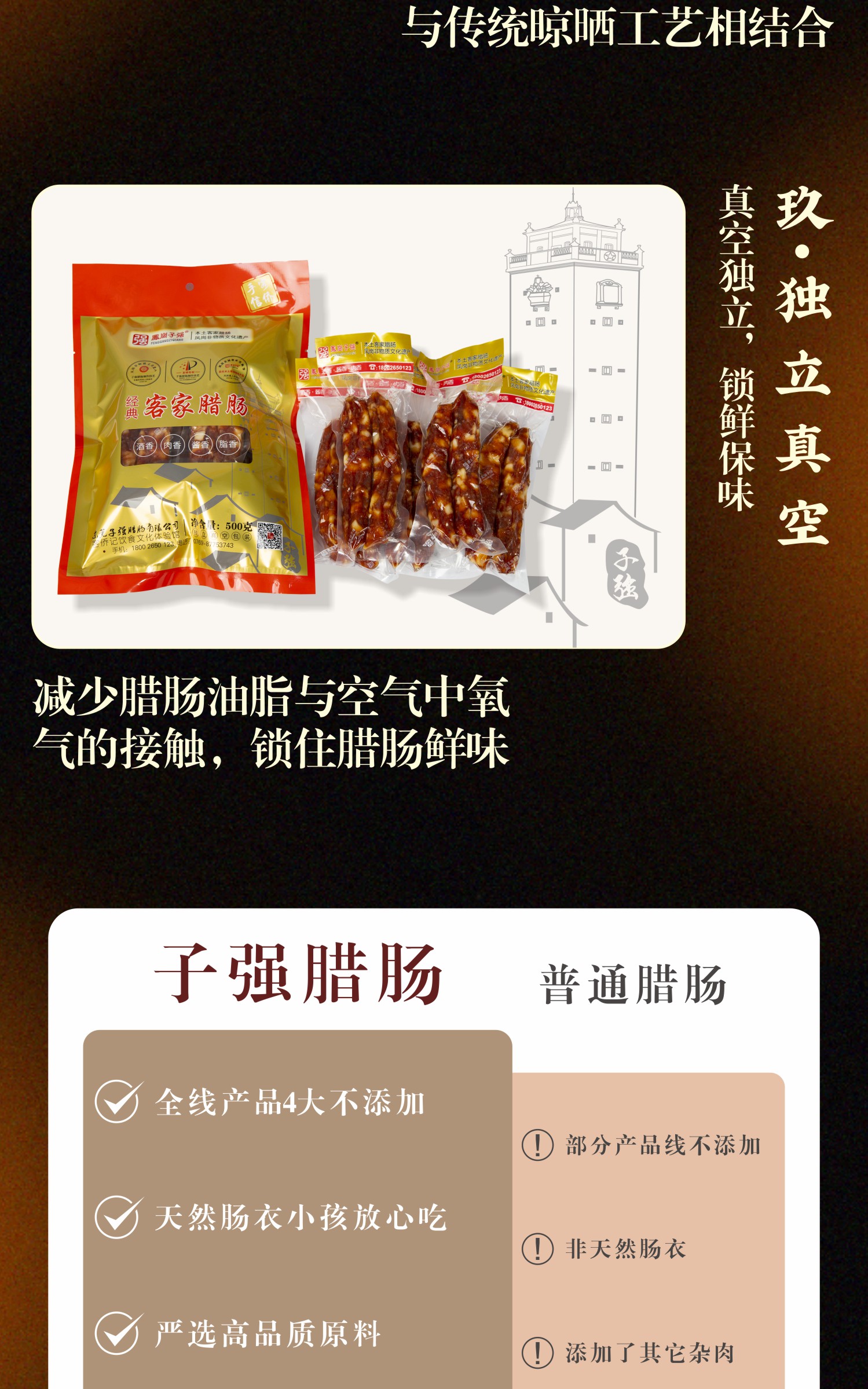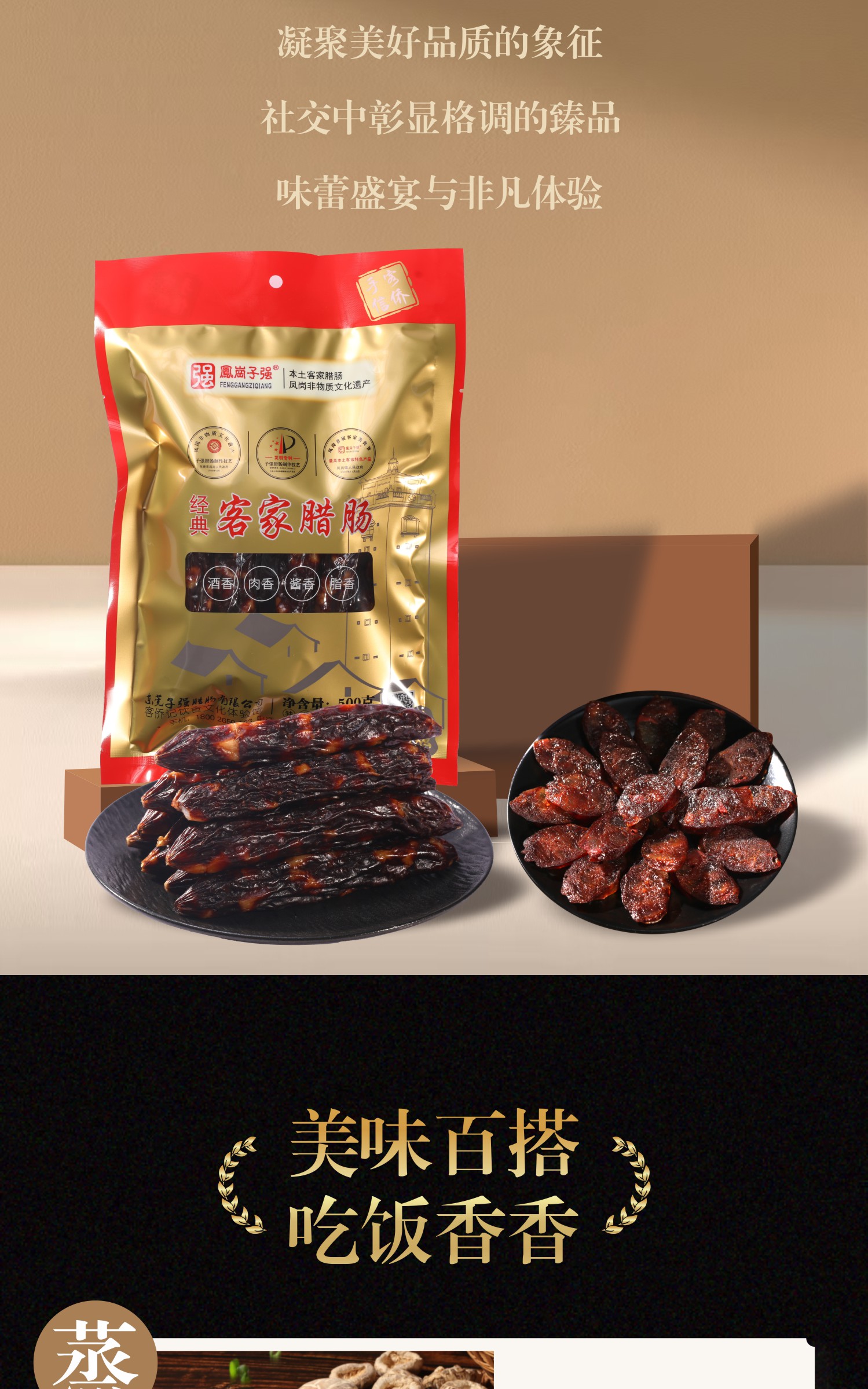 经典客家腊肠(袋装) 500g/袋 真空包装