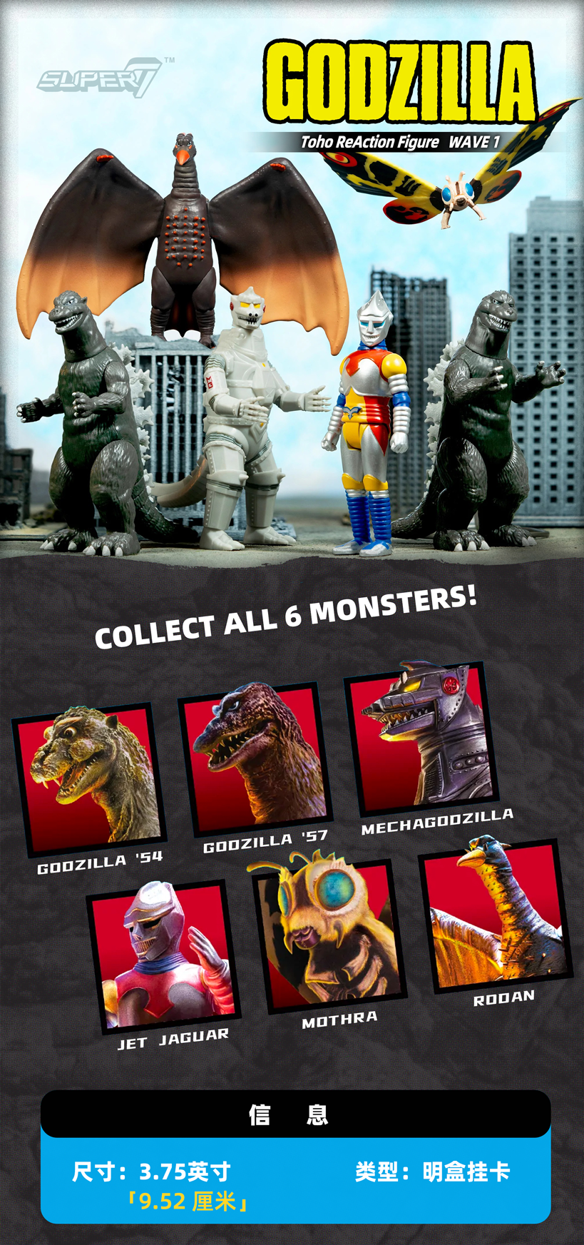现货 Super7 东宝哥斯拉系列 挂卡 Godzilla 摩斯拉 拉顿