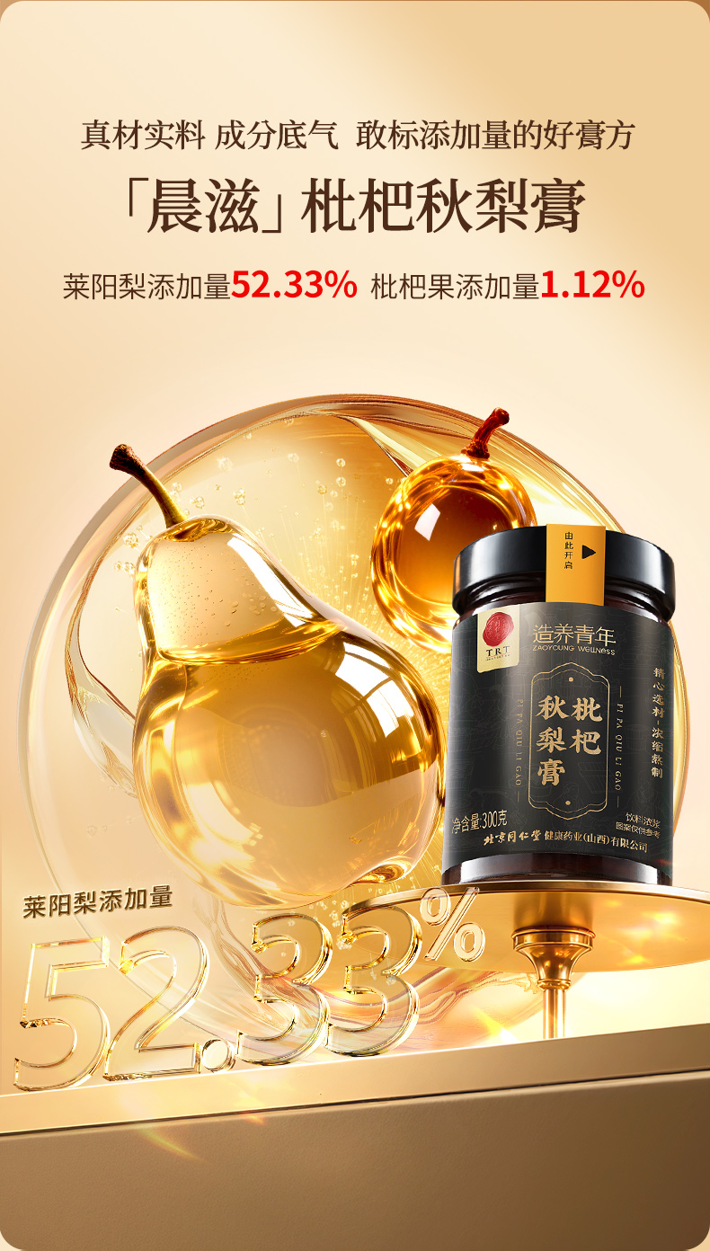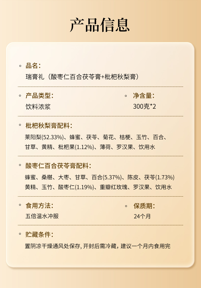【正宗同仁堂品牌】北京同仁堂 造养青年 枇杷秋梨膏300g 酸枣仁百合茯苓膏300克 地道原料 晨滋夜养 SY