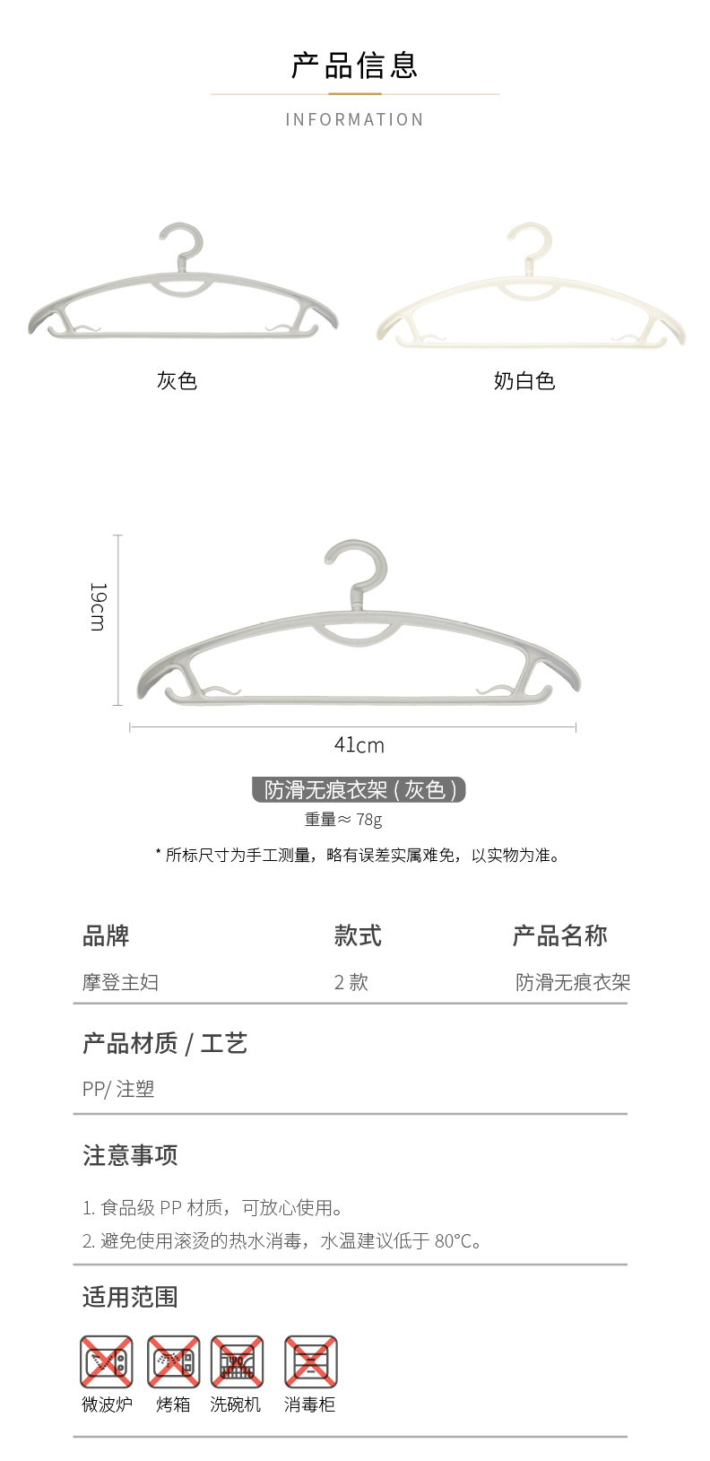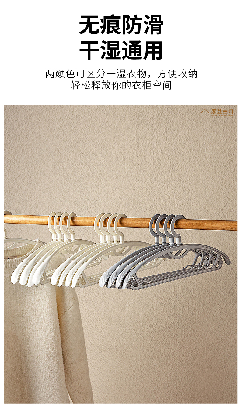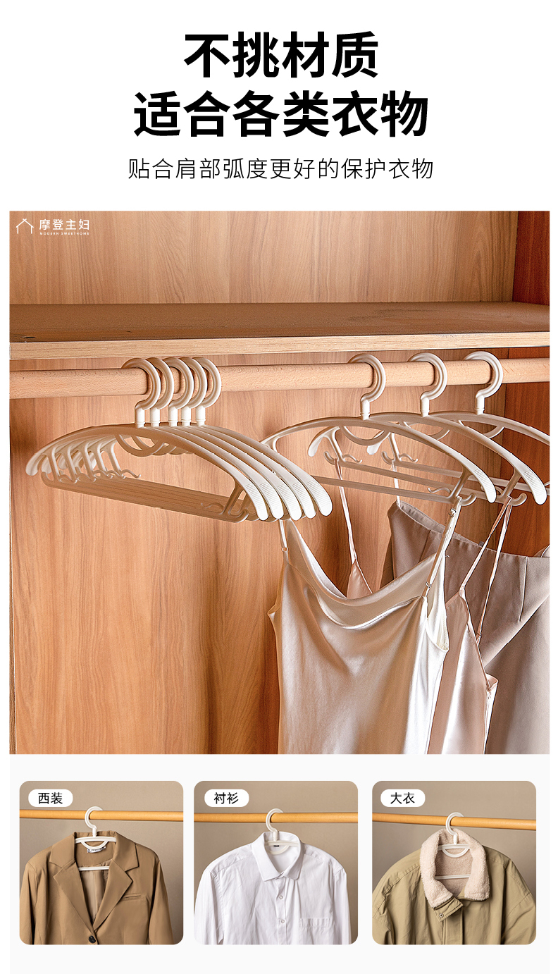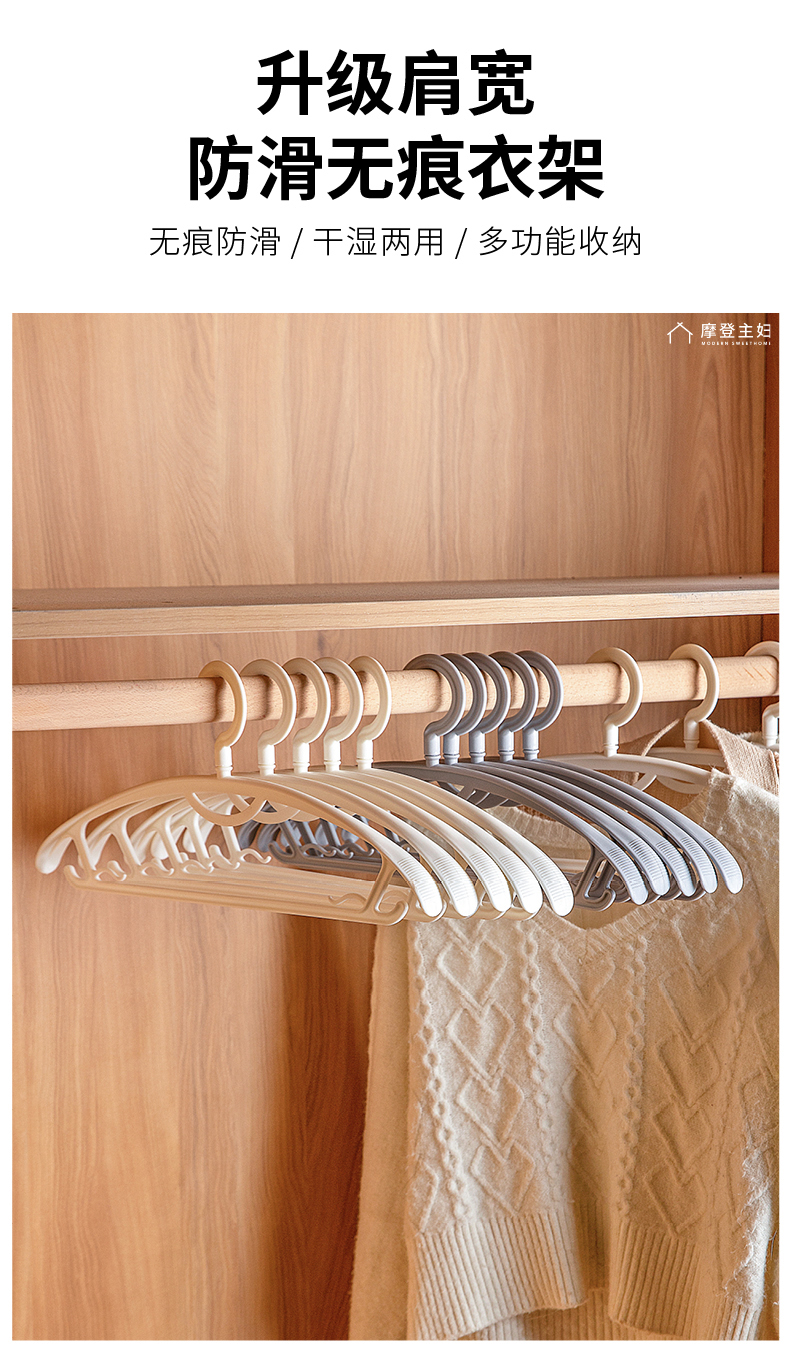 摩登主妇无痕晾衣架家用挂衣收纳神器防滑不鼓包宽肩加厚加粗衣撑