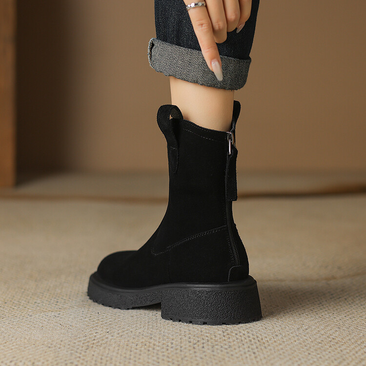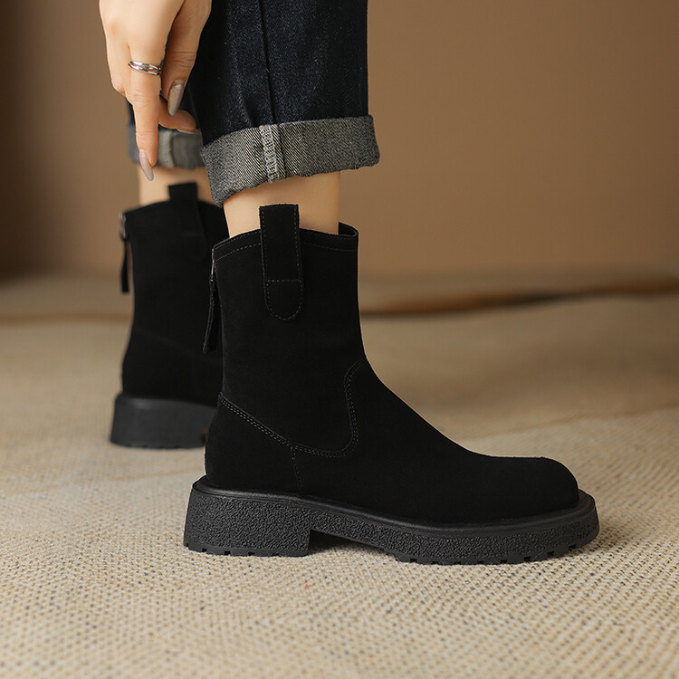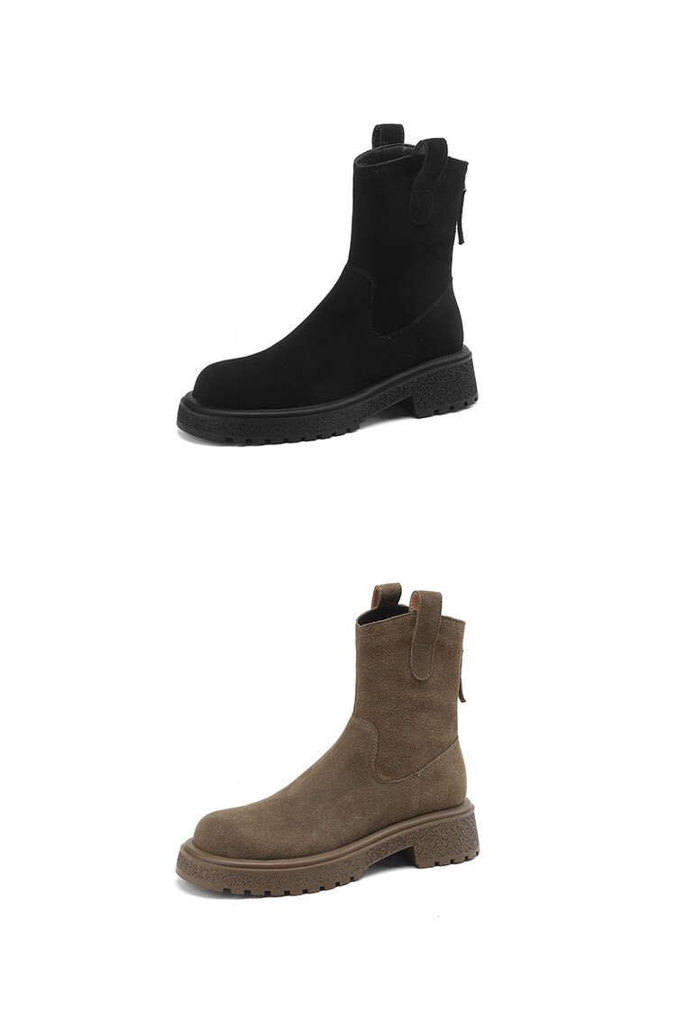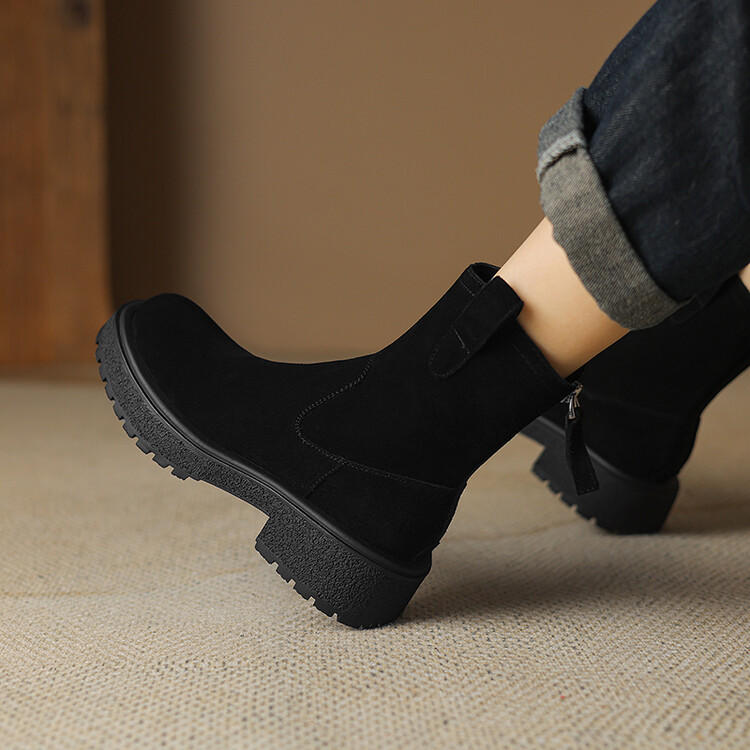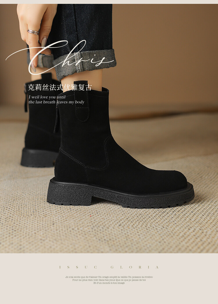 【预售5天】舒适~英伦风磨砂牛皮短靴女厚底秋冬翻毛皮马丁靴中跟高跟HCYYHD&3741