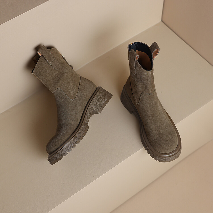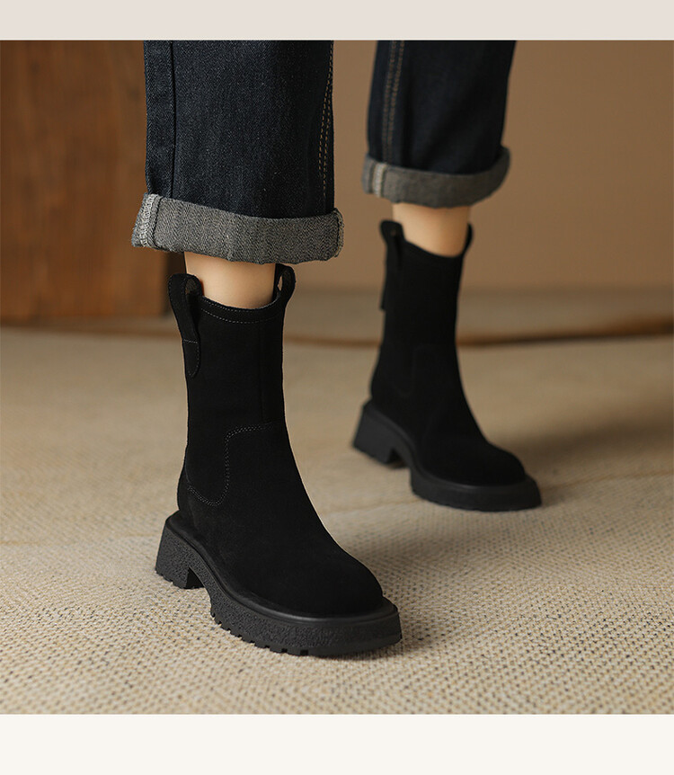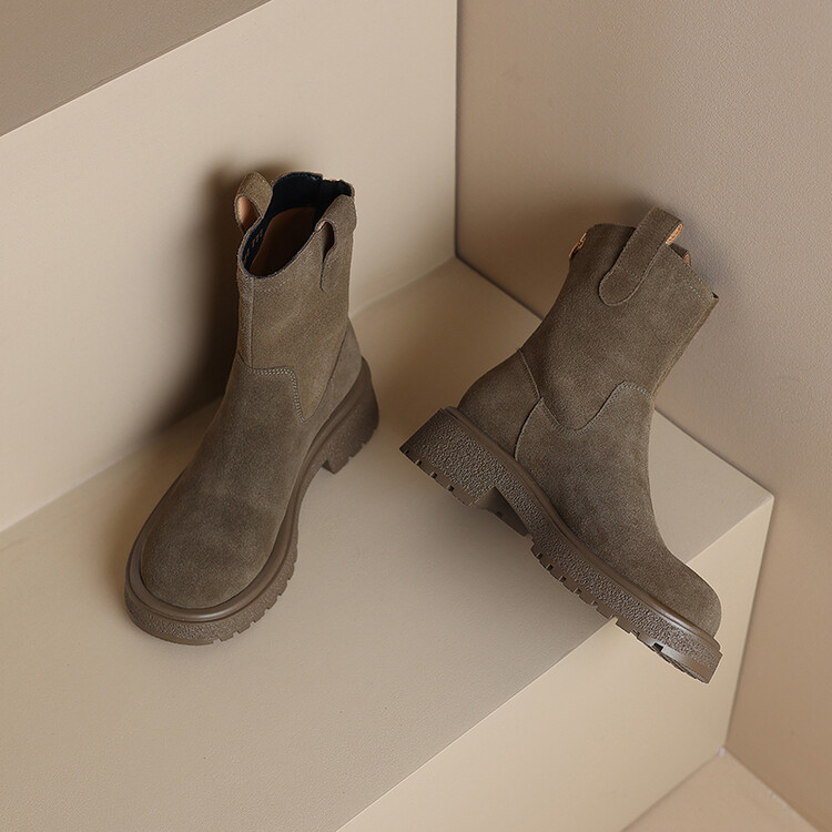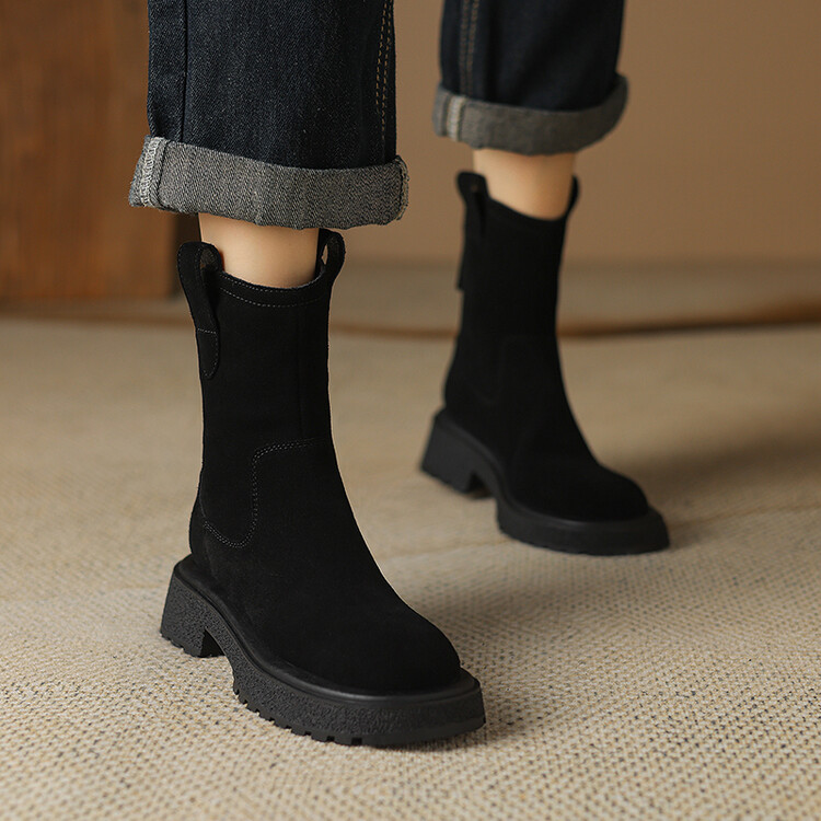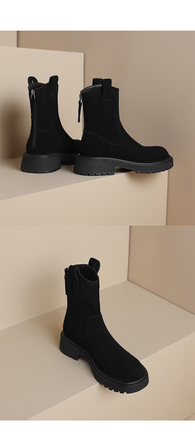 【预售5天】舒适~英伦风磨砂牛皮短靴女厚底秋冬翻毛皮马丁靴中跟高跟HCYYHD&3741