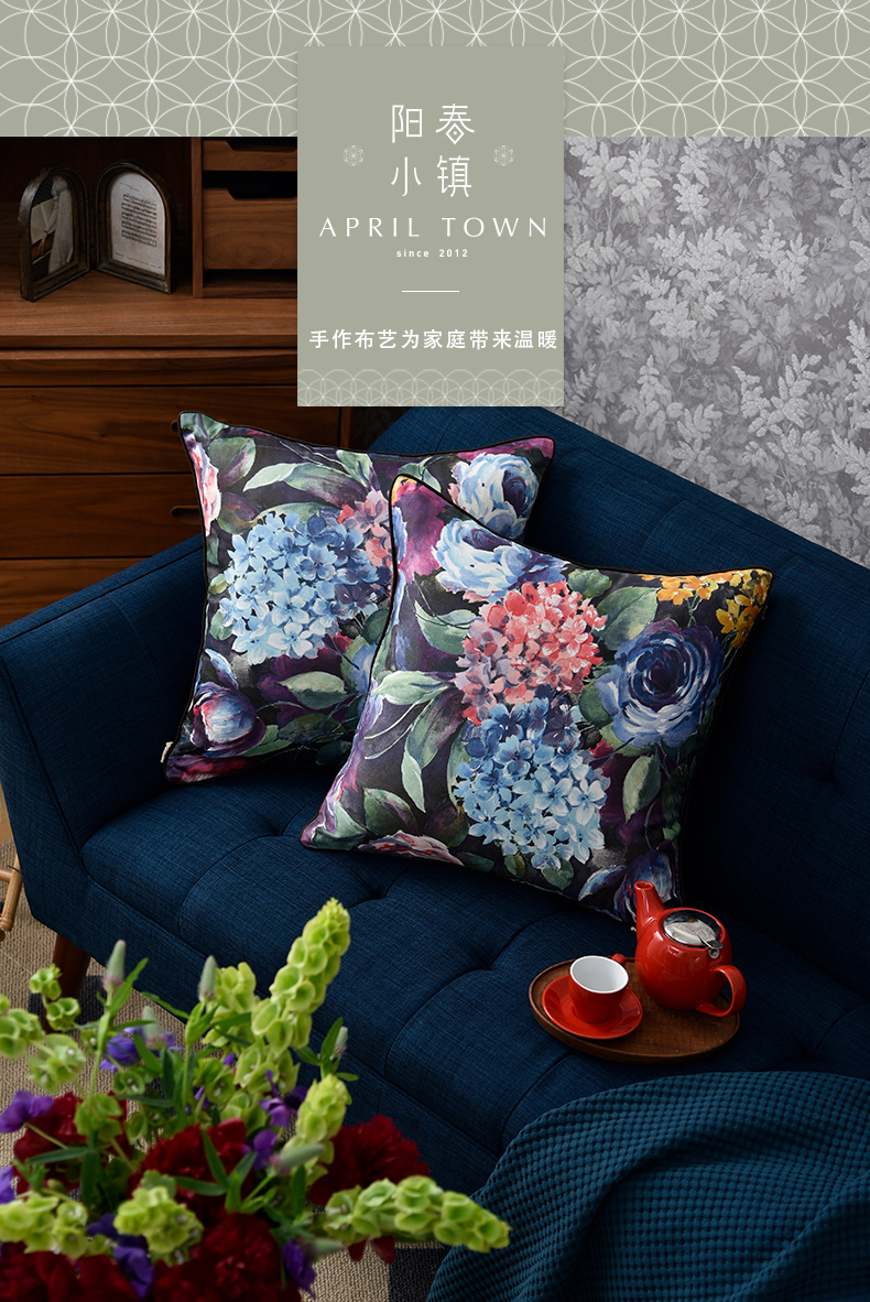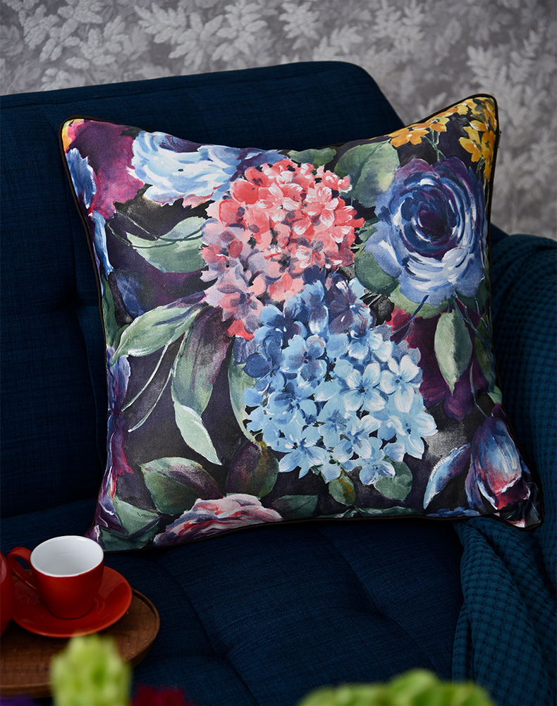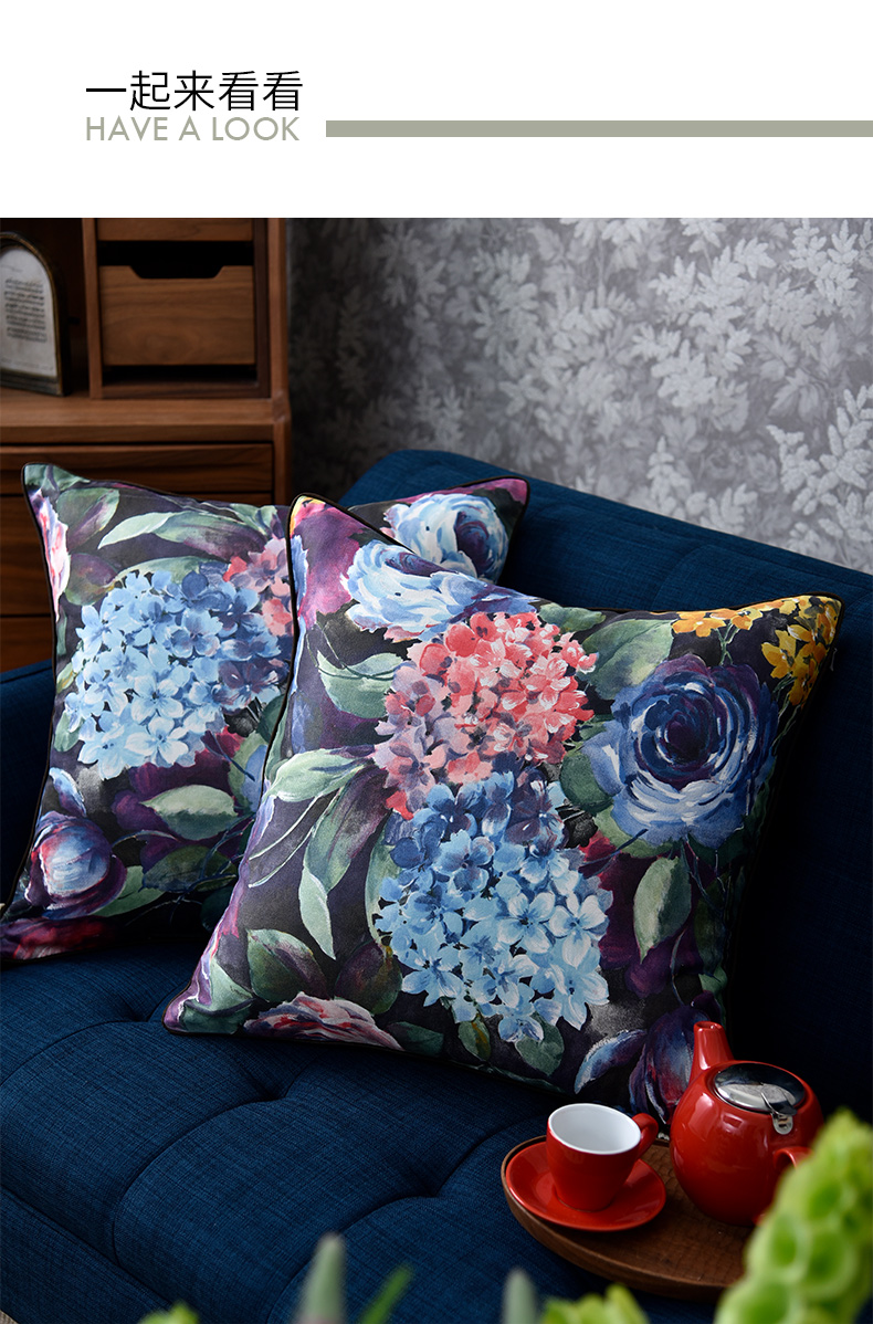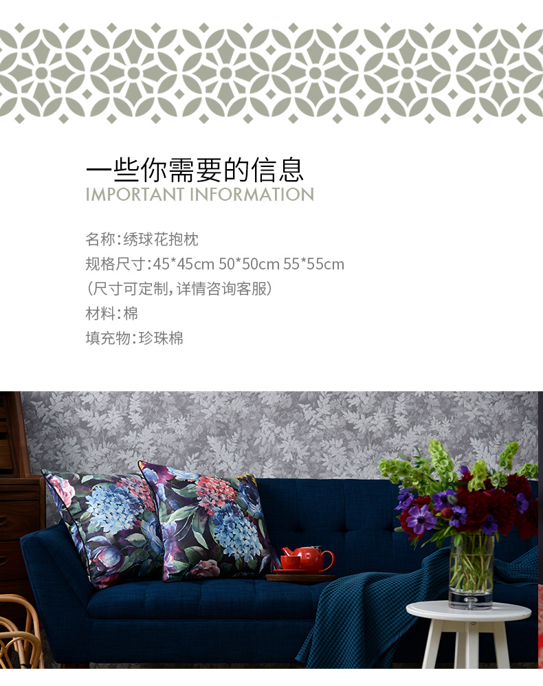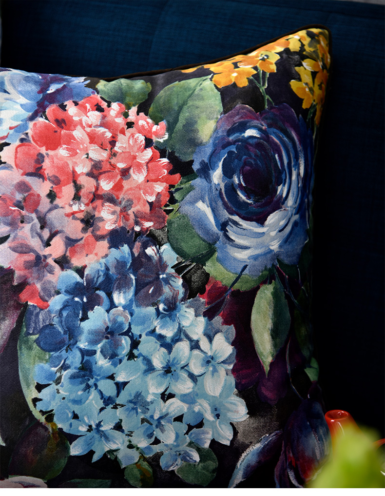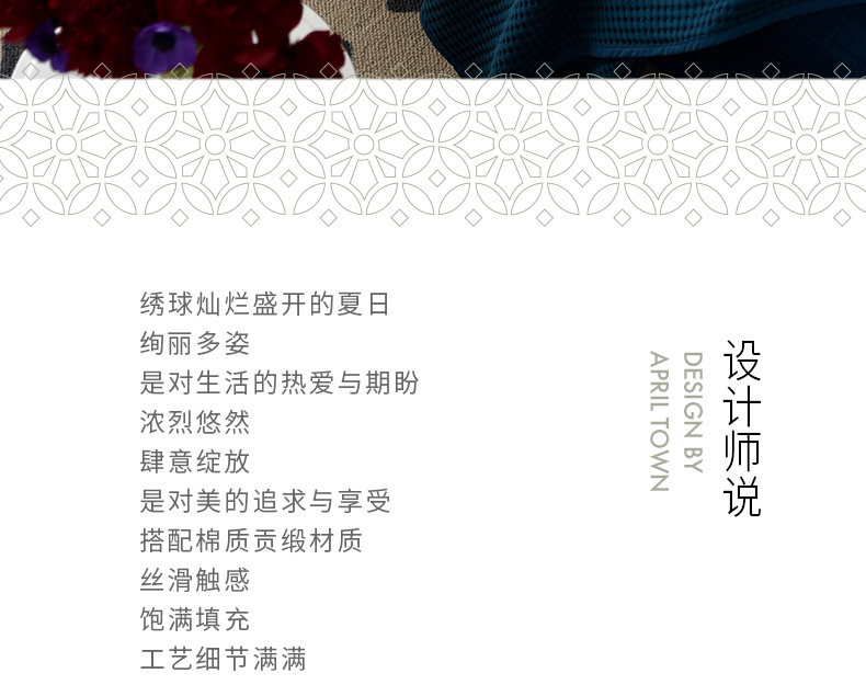 绣球花抱枕花朵贡缎靠包