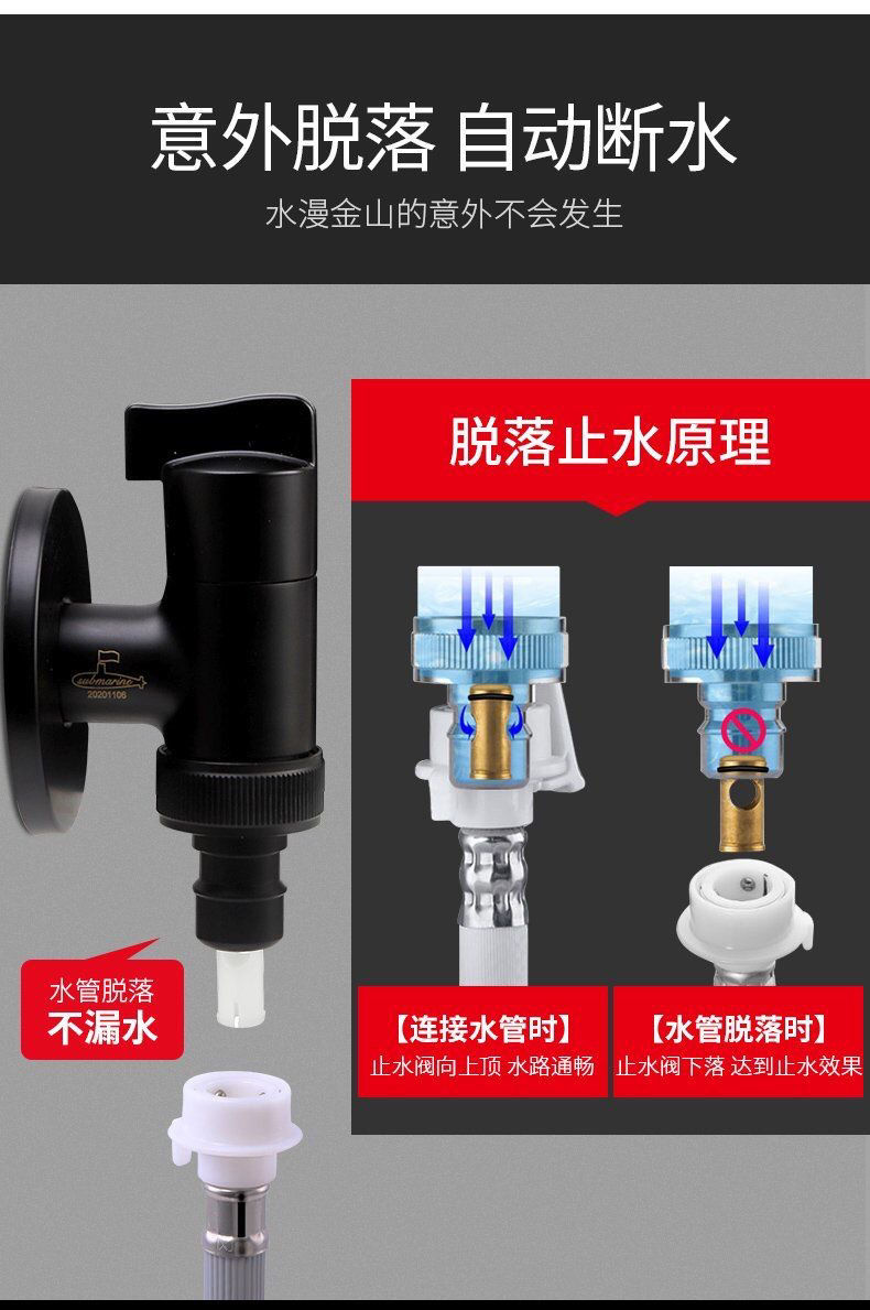 【46分通用】潜水艇亲全自动洗衣机专用水龙头接头家用全铜自动止水阀