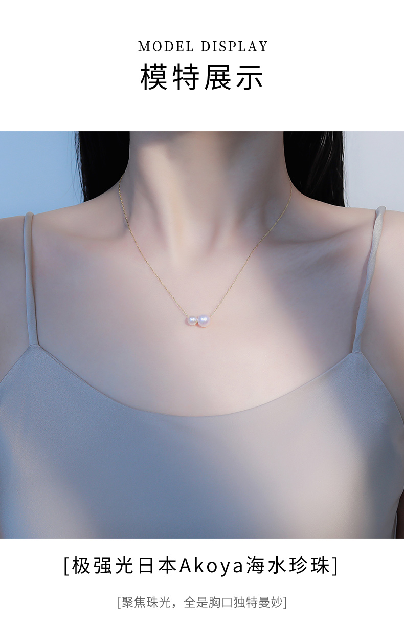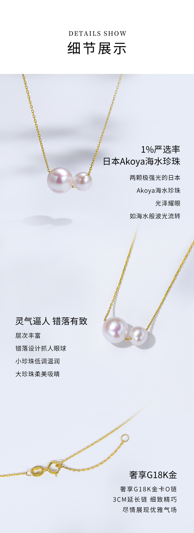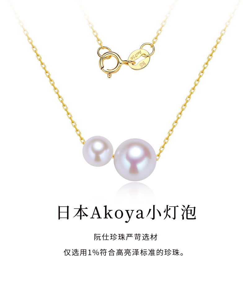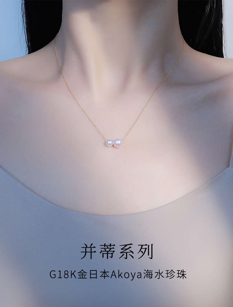 阮仕珍珠 并蒂系列G18K金日本akoya珍珠链牌 6-6.5mm/8-8.5mm 正圆 微瑕 极强光