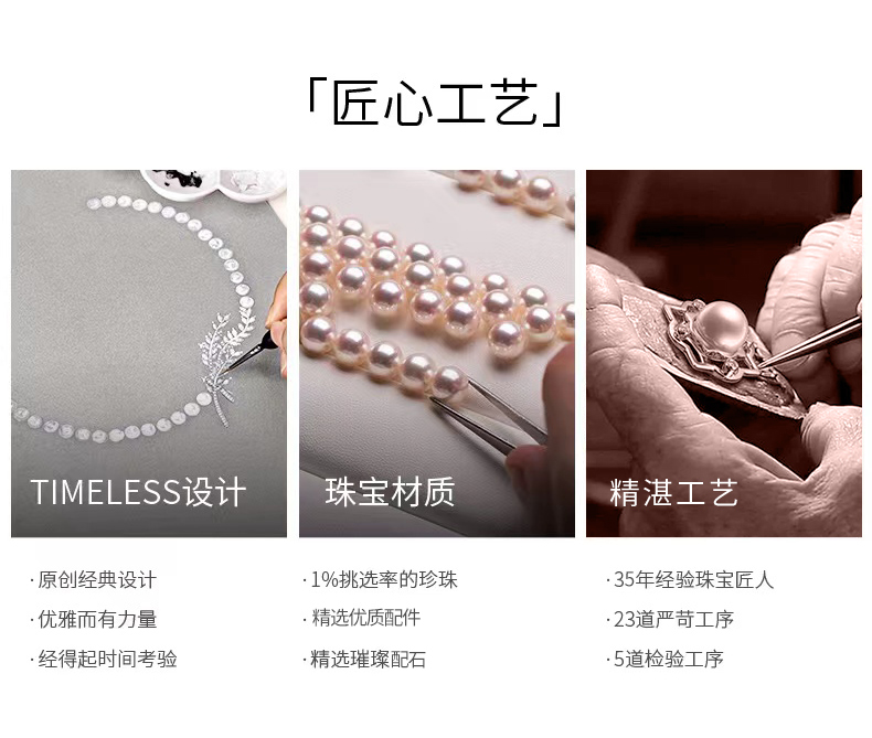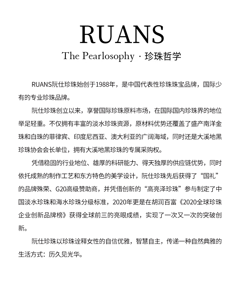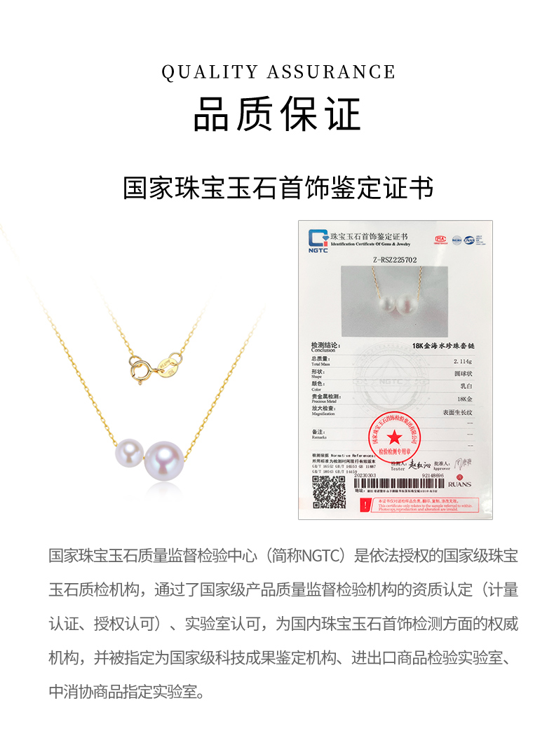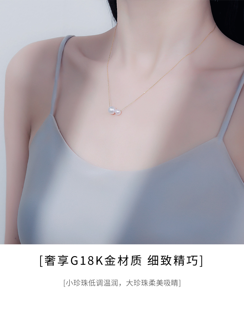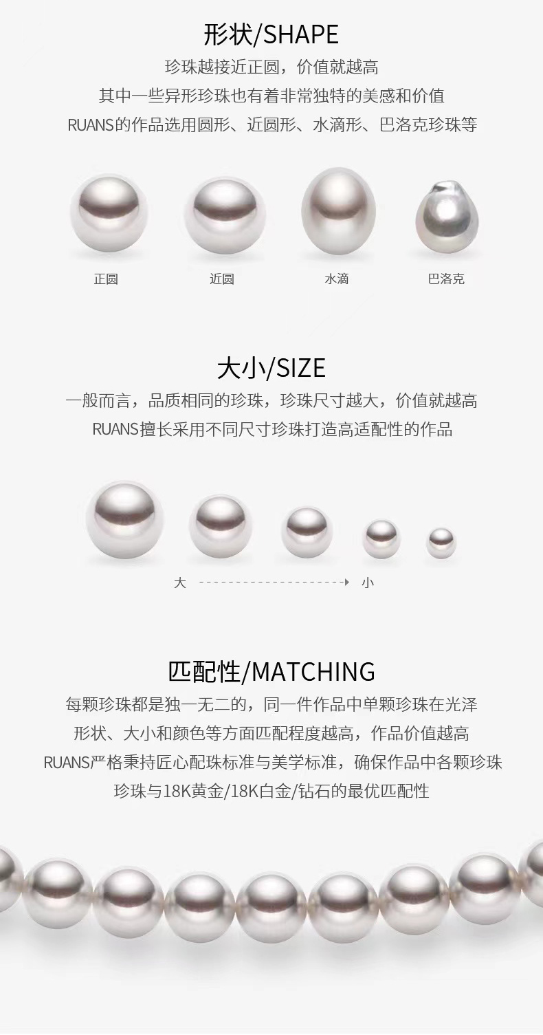 阮仕珍珠 并蒂系列G18K金日本akoya珍珠链牌 6-6.5mm/8-8.5mm 正圆 微瑕 极强光