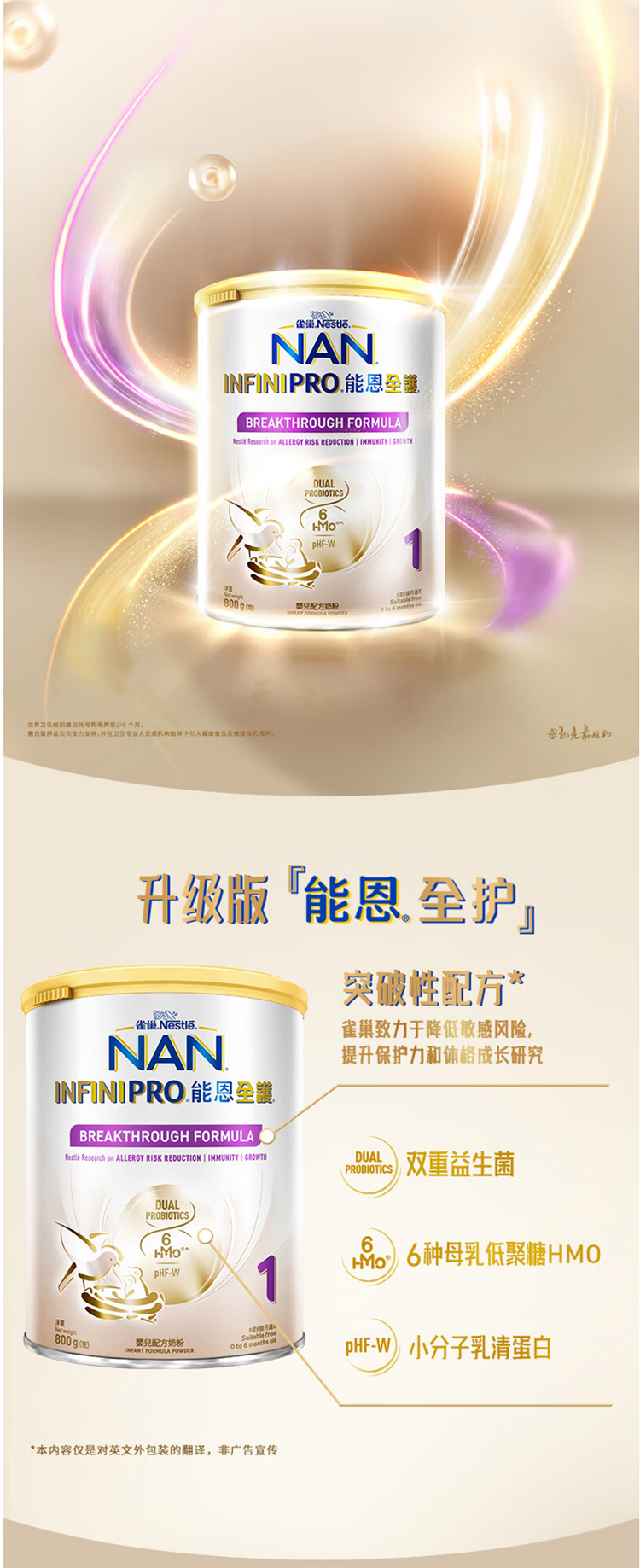 雀巢(Nestle)能恩全护适度水解低敏6HMO部分水解婴幼儿奶粉1段(0-6月) 800g/罐(下单咨询客服)