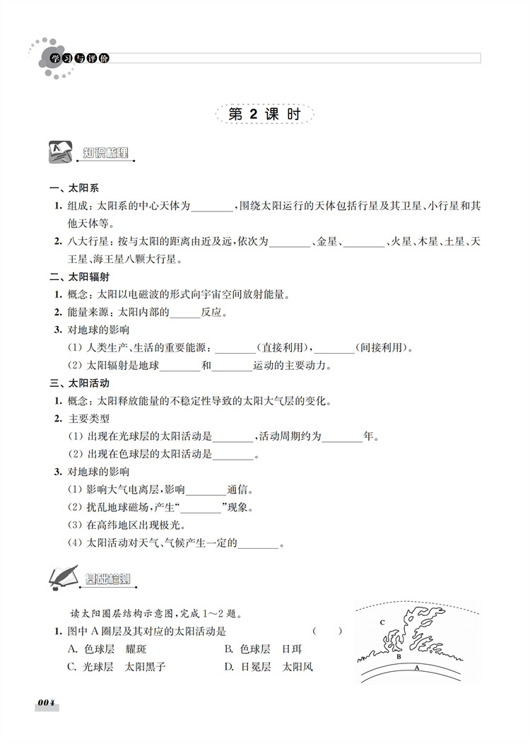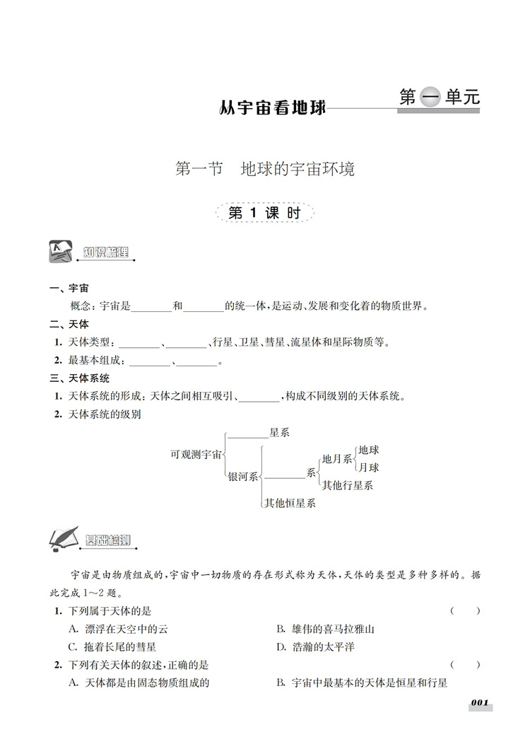 2025年 学习与评价 高中地理 新课标修订版 鲁教版 必修第一册 含参考答案 第1册高中教辅 江苏凤凰教育出版社 XG