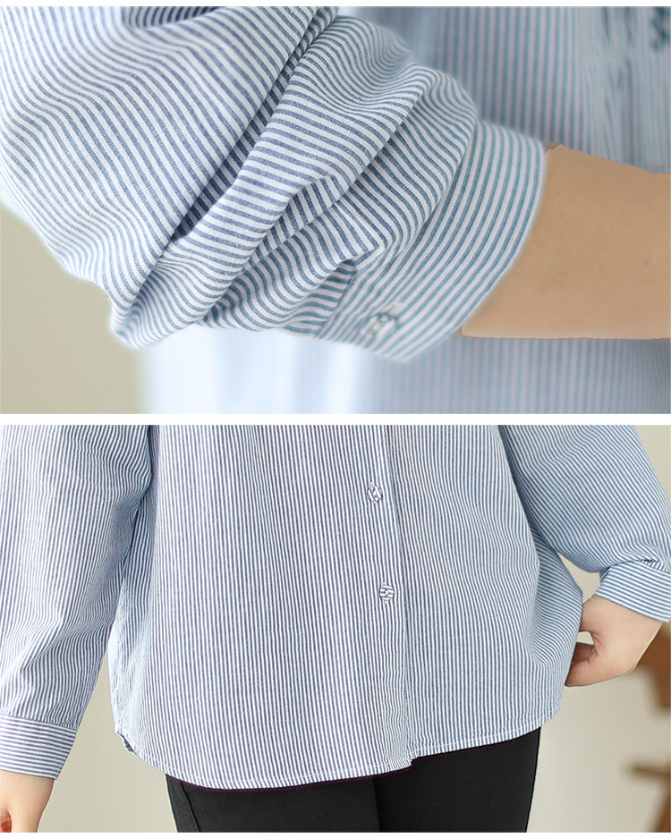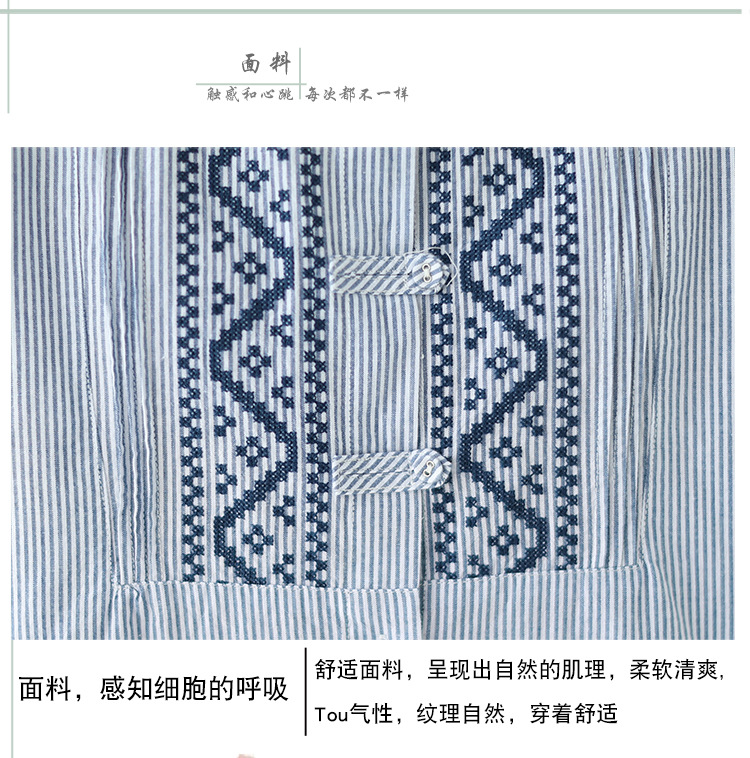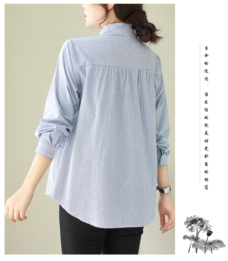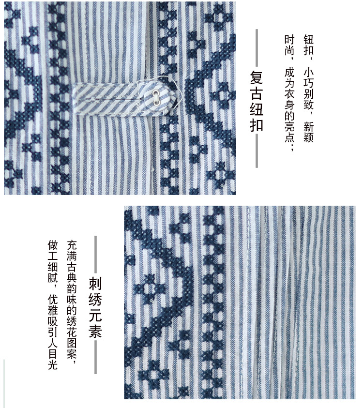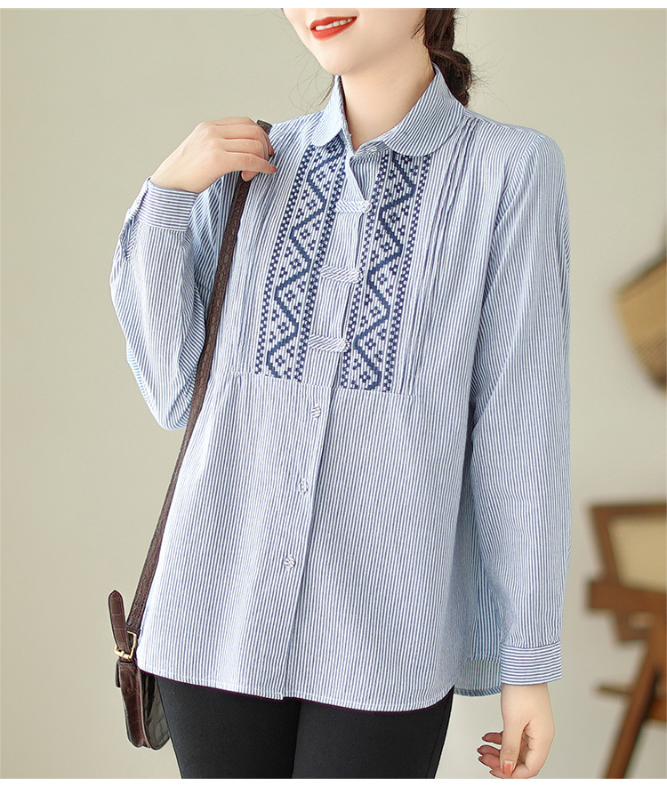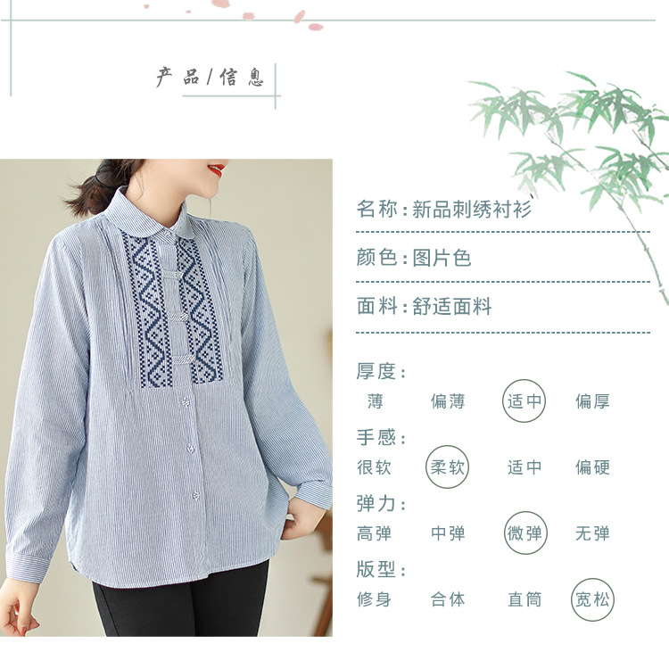 雀说民族风刺绣设计感小众纽扣显瘦条纹衬衫女长袖AL3073