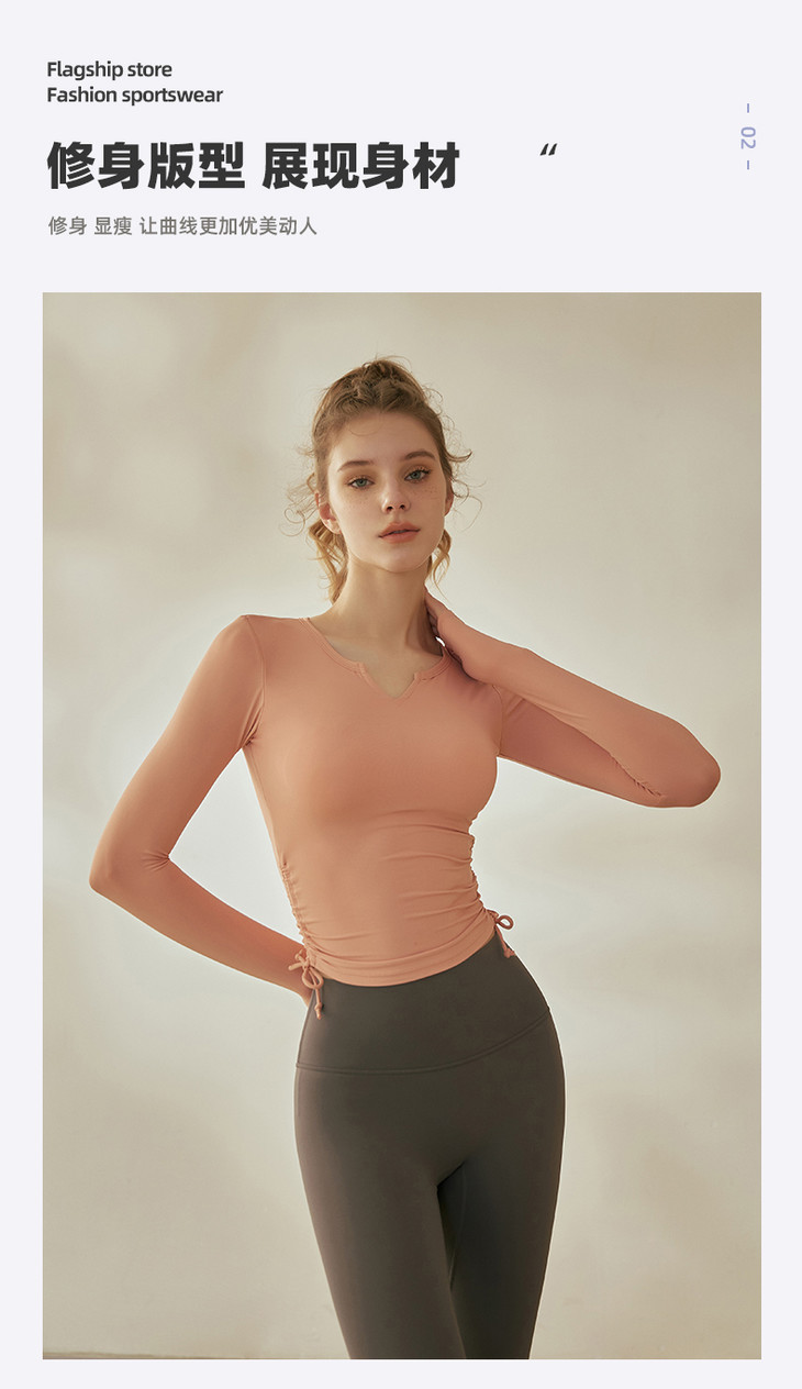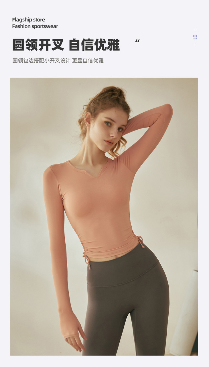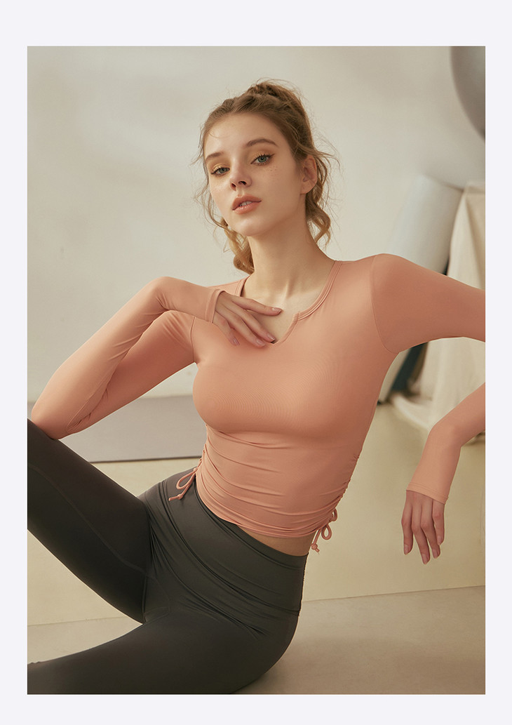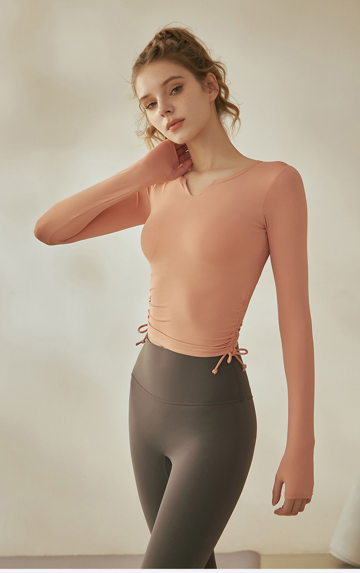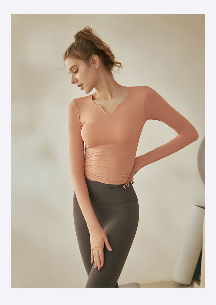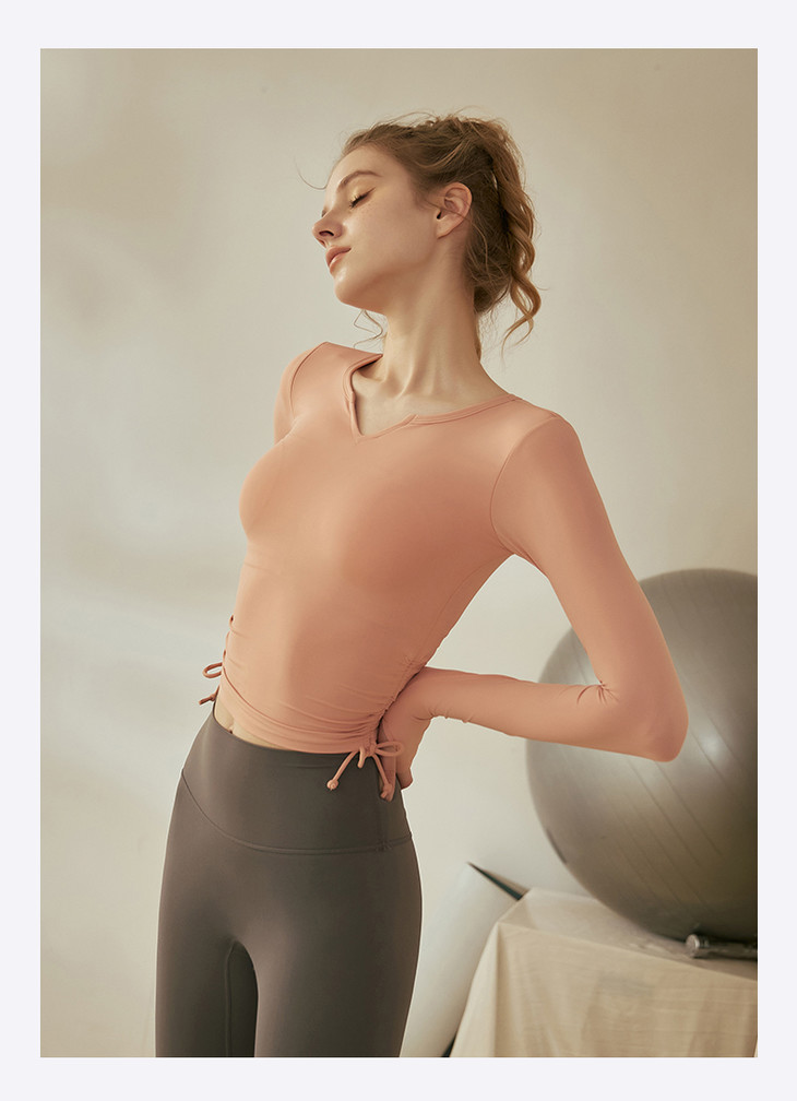 跃牌【倚窗听雨系列】V领紧身显瘦健身上衣 带胸垫CA26-21