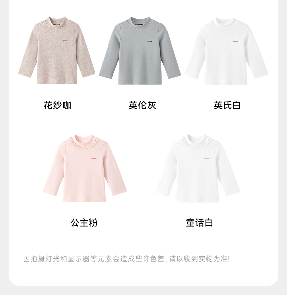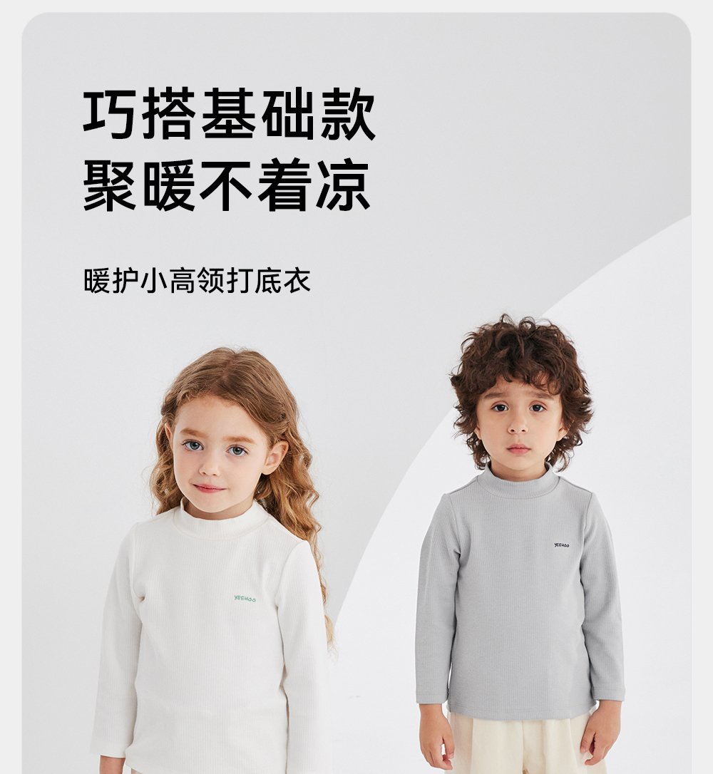 英氏儿童半高领长袖T恤男女童保暖内衣打底衫