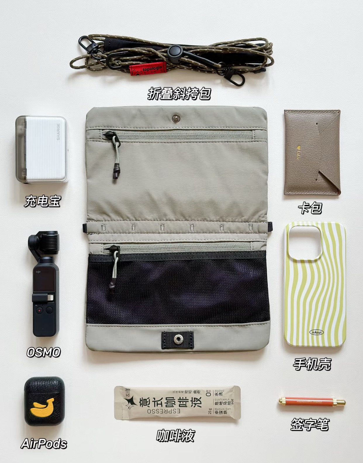 雨天☔️出行也不怕。折叠设计能以最小的体积创造最大的储物空间!!Topologie 全新多功能折叠斜挎包