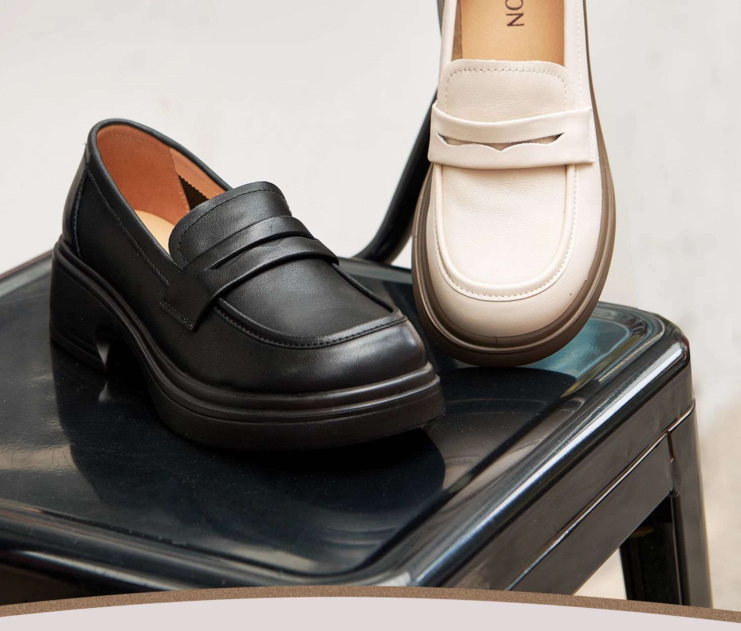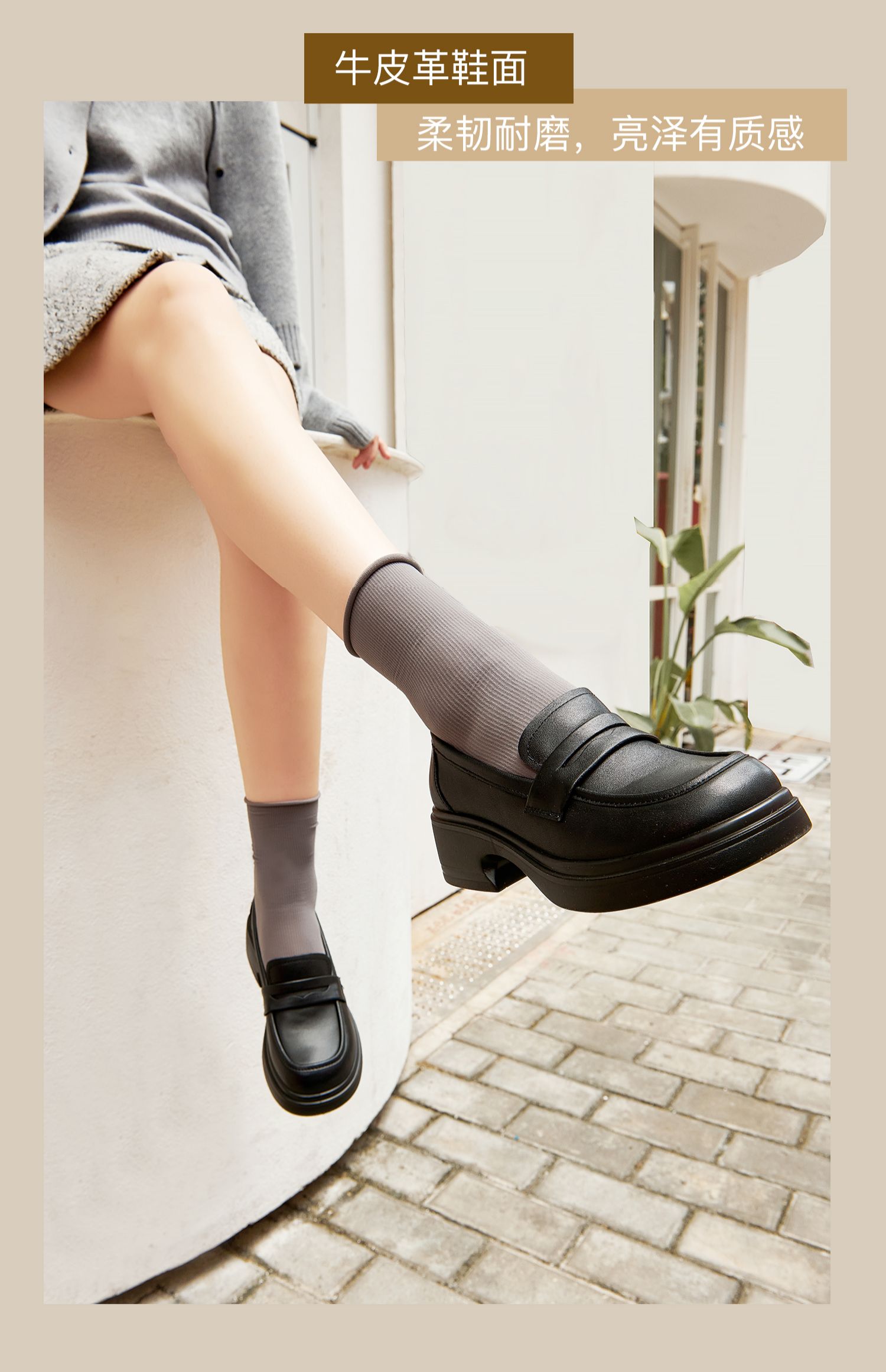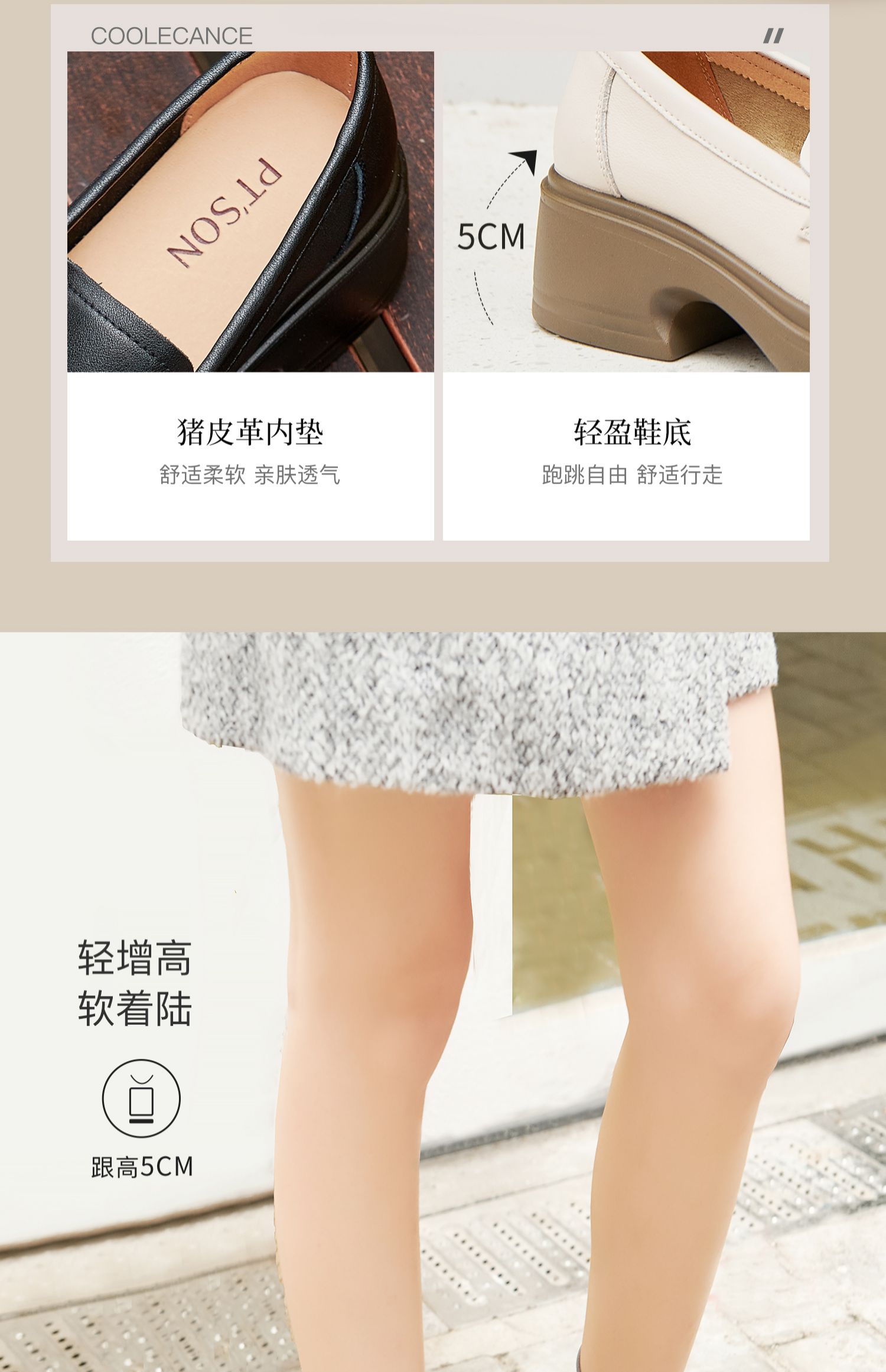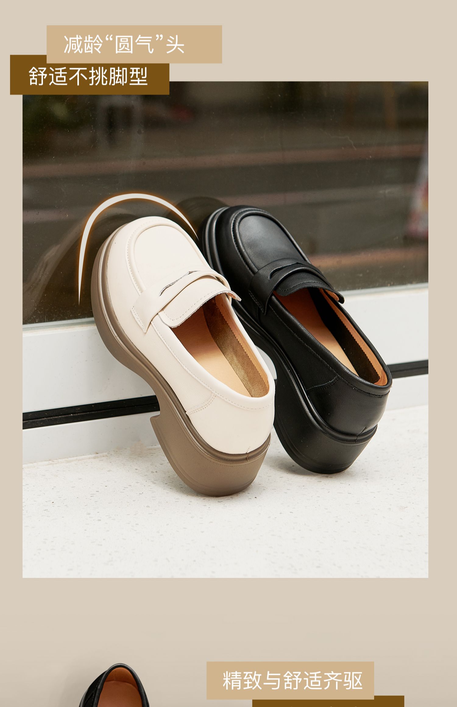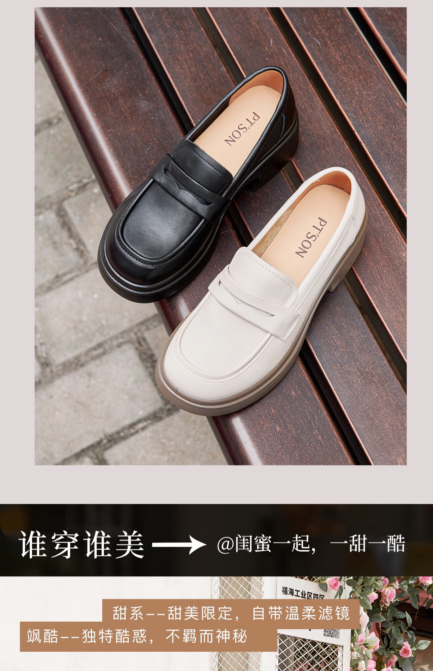 PT'SON百田森 牛皮乐福鞋女新款真皮深口单鞋秋冬软皮软底乐福鞋
