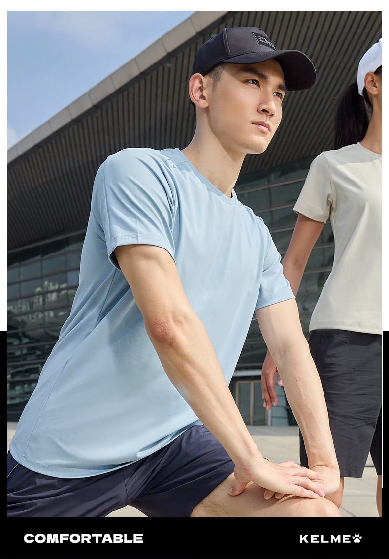 KELME 卡尔美纯色棉短袖夏季新款男士运动T恤纯色透气休闲T恤