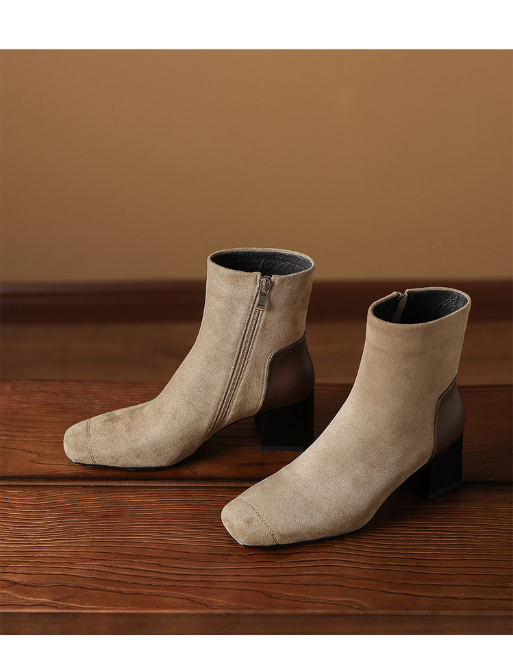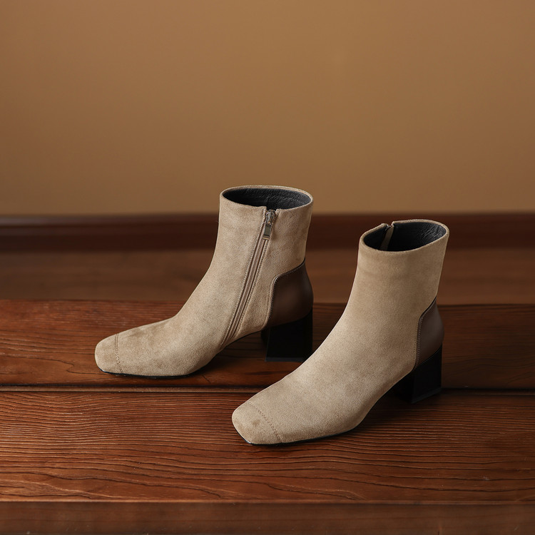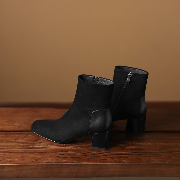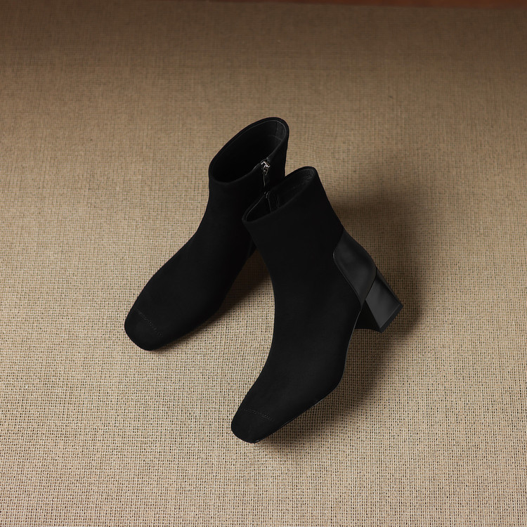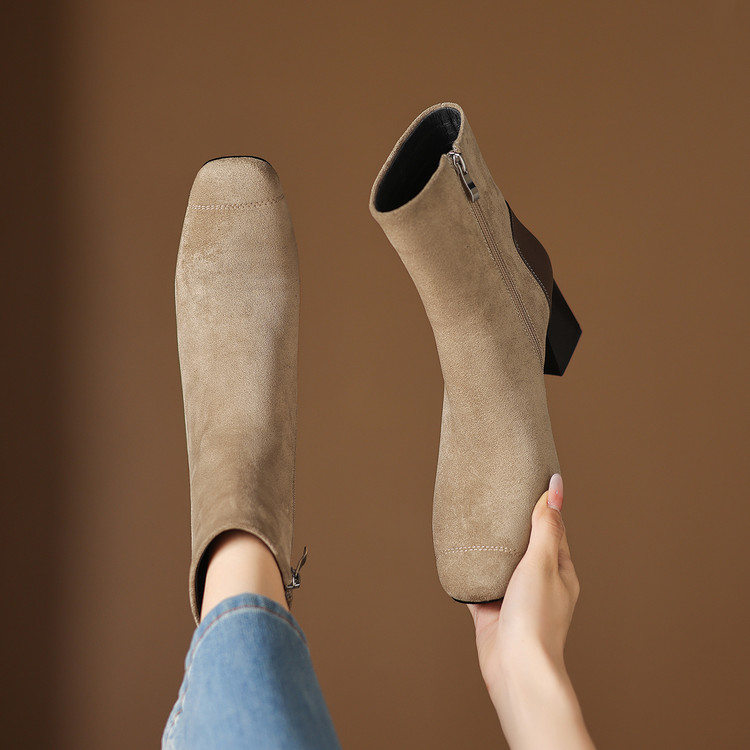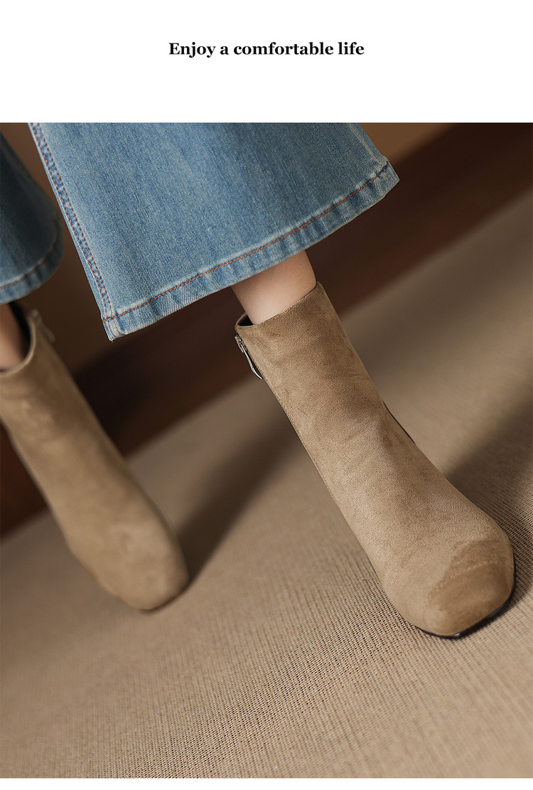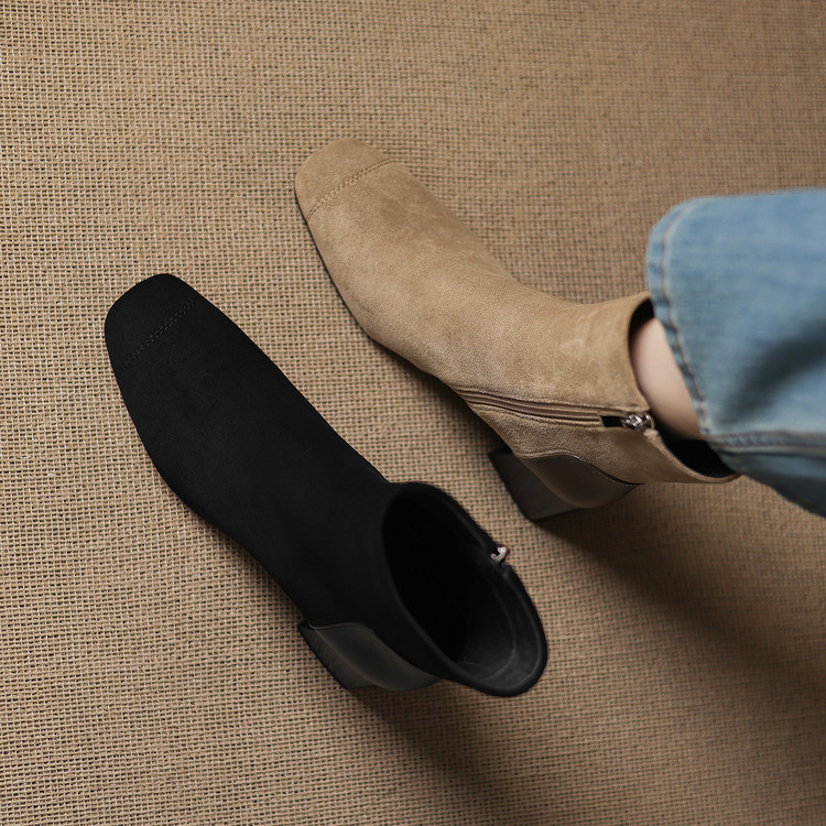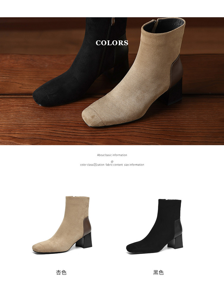【预售5天】牛皮显瘦短靴秋冬新款方头磨砂短筒粗中跟百搭马丁靴女DQ&DQ1377