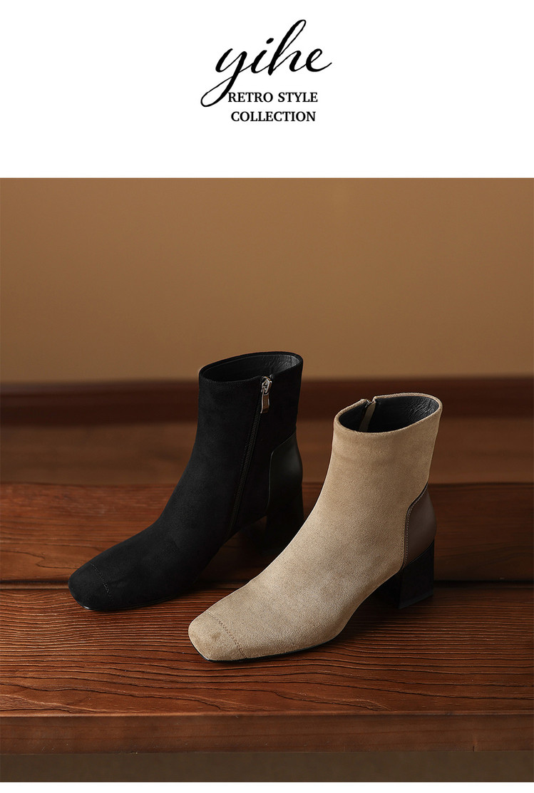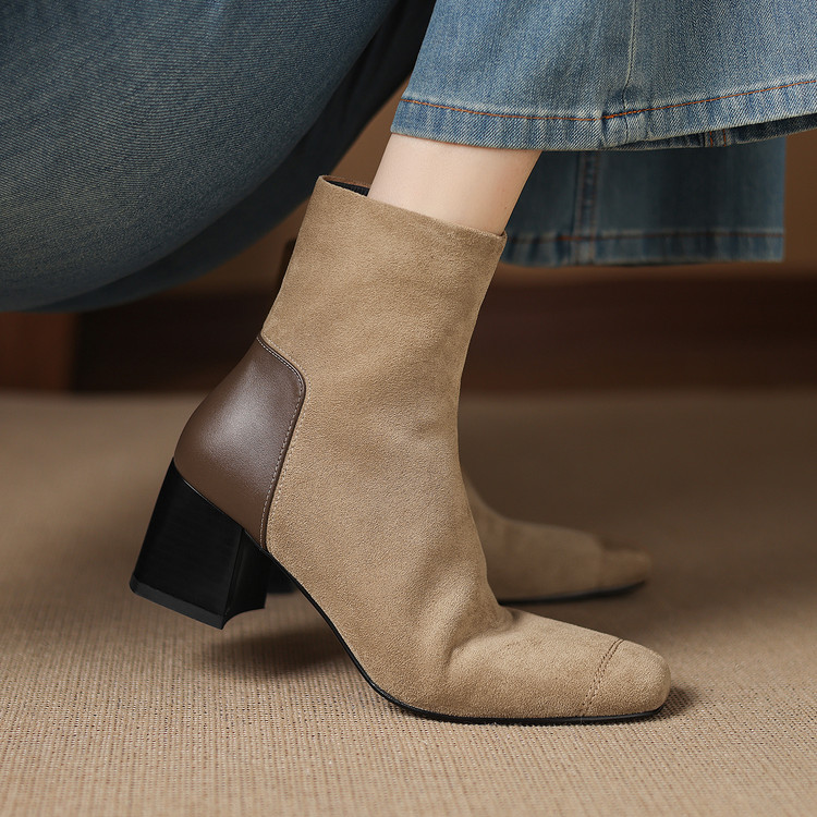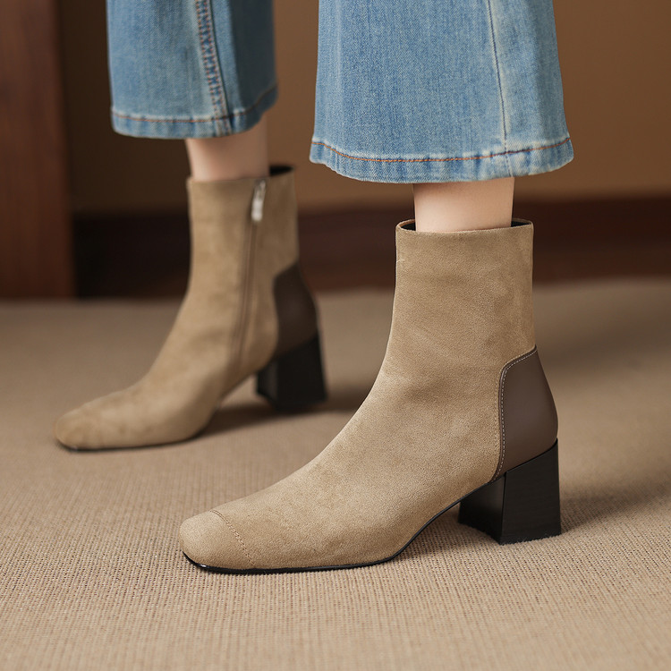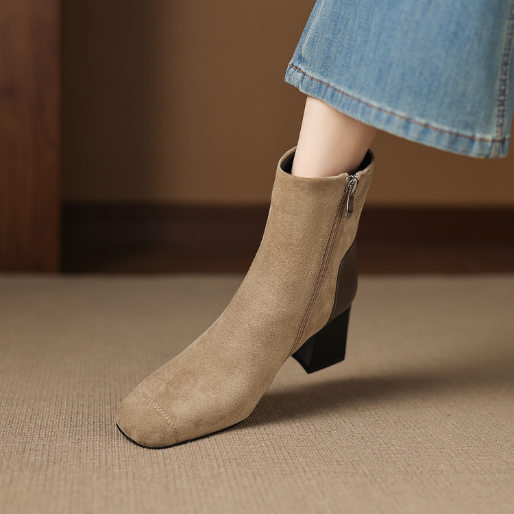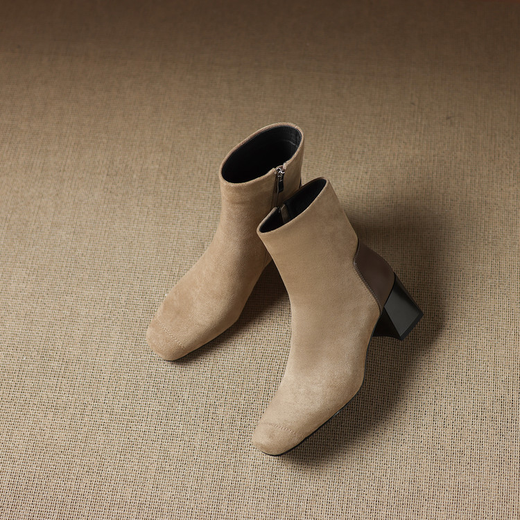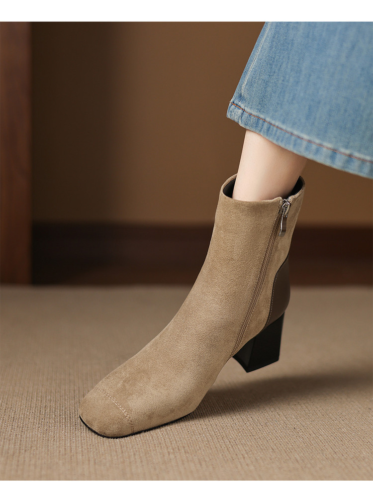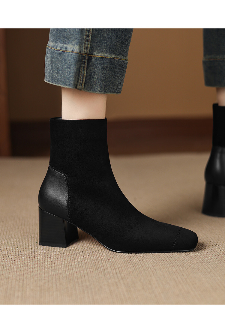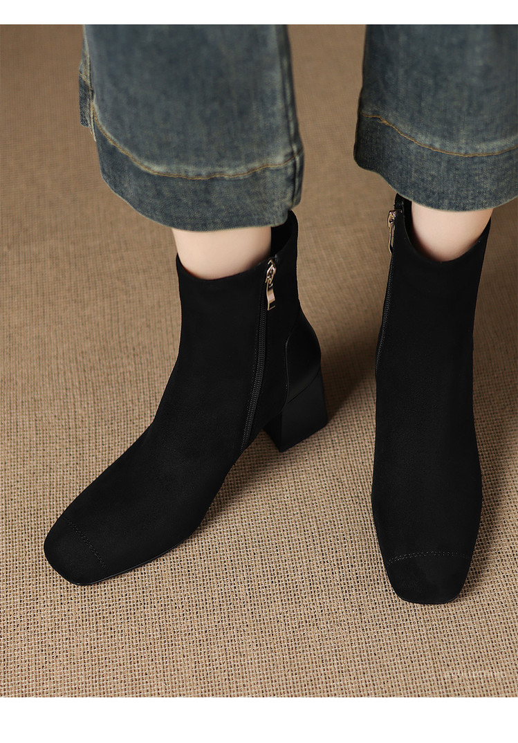 【预售5天】牛皮显瘦短靴秋冬新款方头磨砂短筒粗中跟百搭马丁靴女DQ&DQ1377