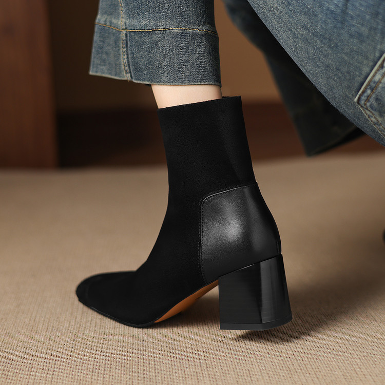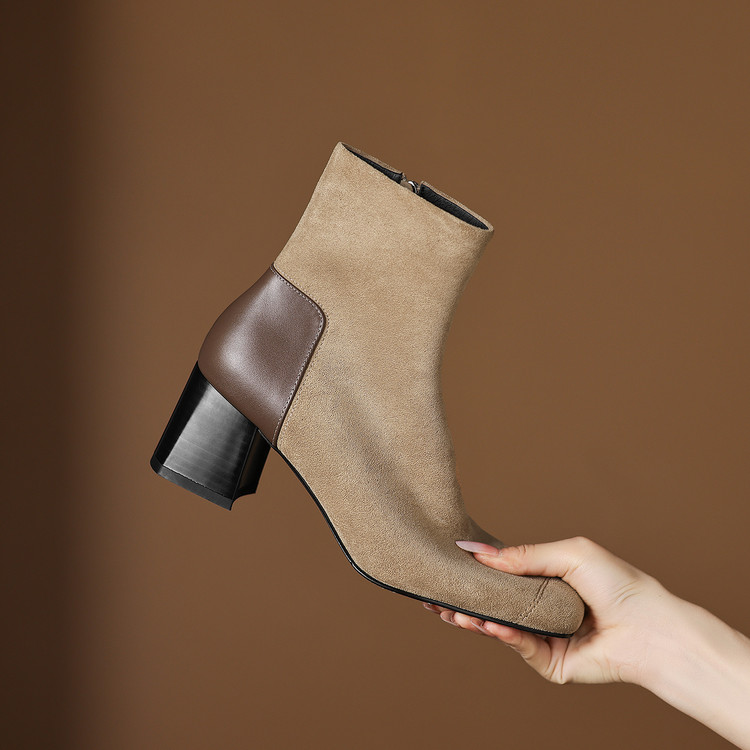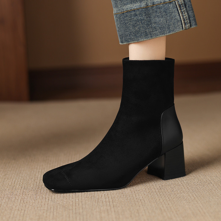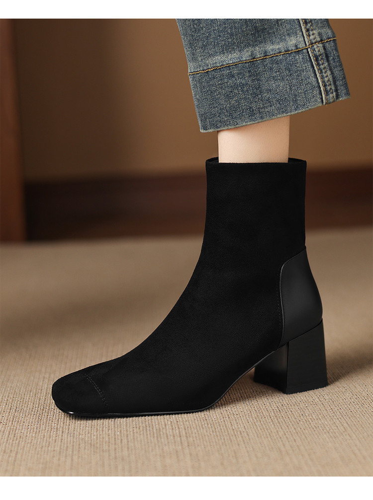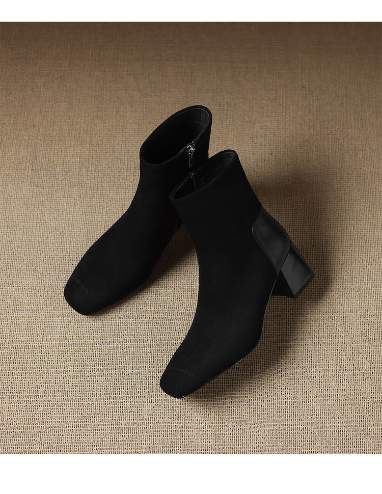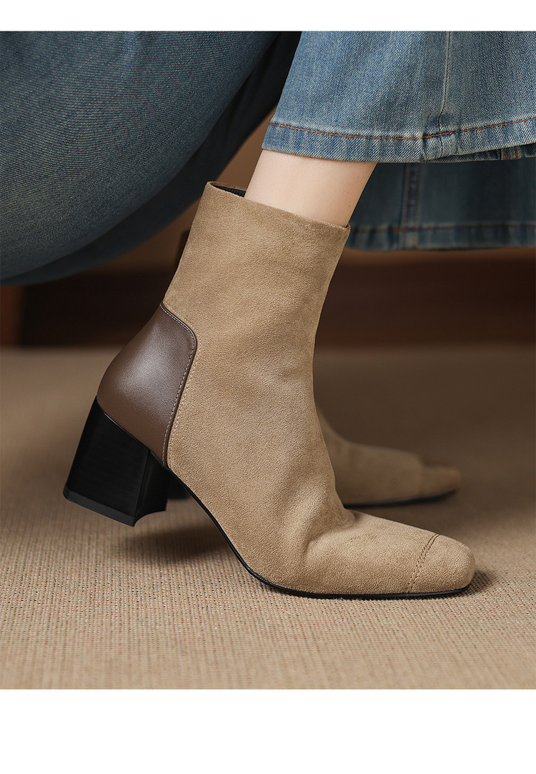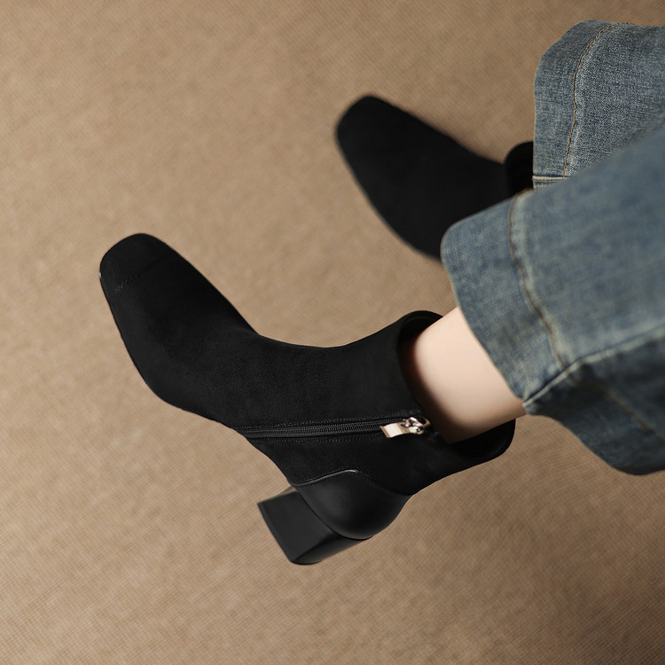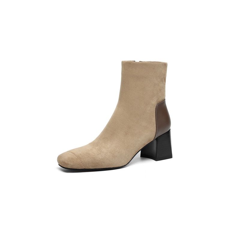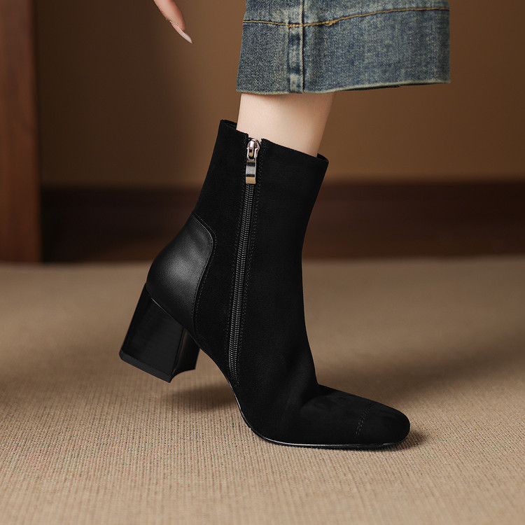 【预售5天】牛皮显瘦短靴秋冬新款方头磨砂短筒粗中跟百搭马丁靴女DQ&DQ1377