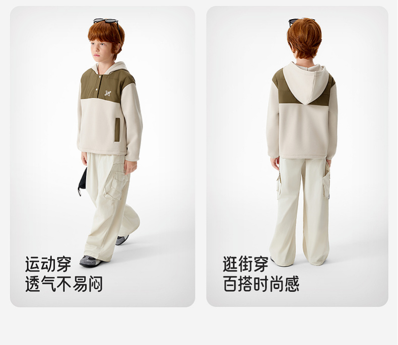 英氏儿童卫衣连帽男童针织拼色时尚潮流酷炫上衣男宝宝外穿新款