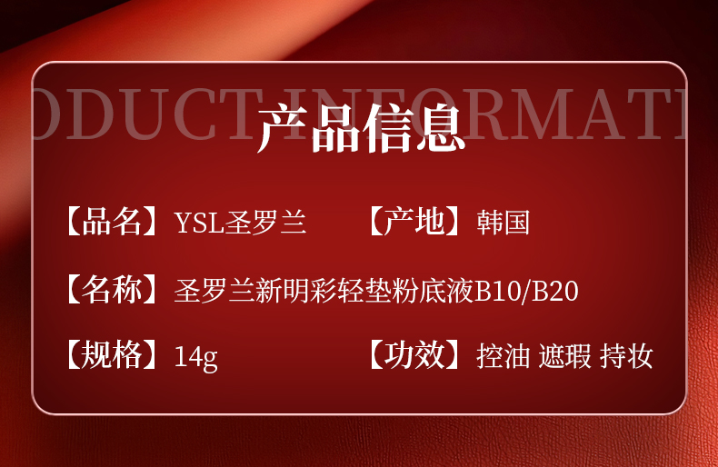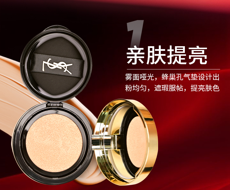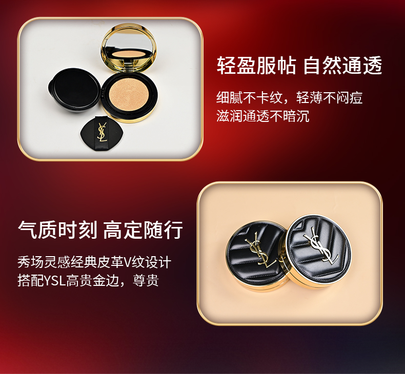 YSL圣罗兰黑皮革气垫14g 新明彩轻垫粉底液 #B10#B20