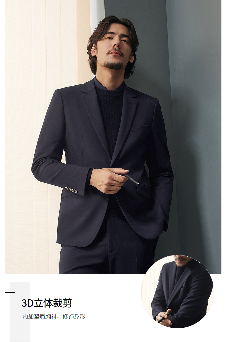 【婚礼季/含羊毛】柒牌西装男士套装秋冬新款平驳领绅士商务正装西服礼服 127C70080