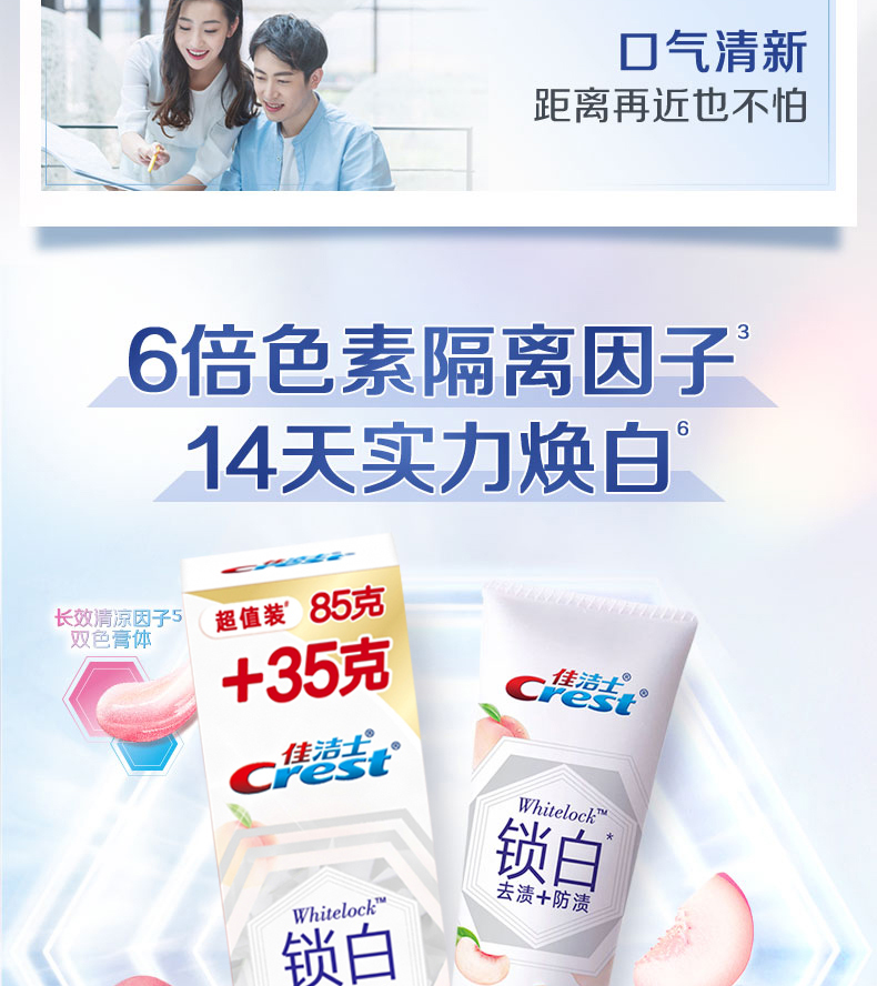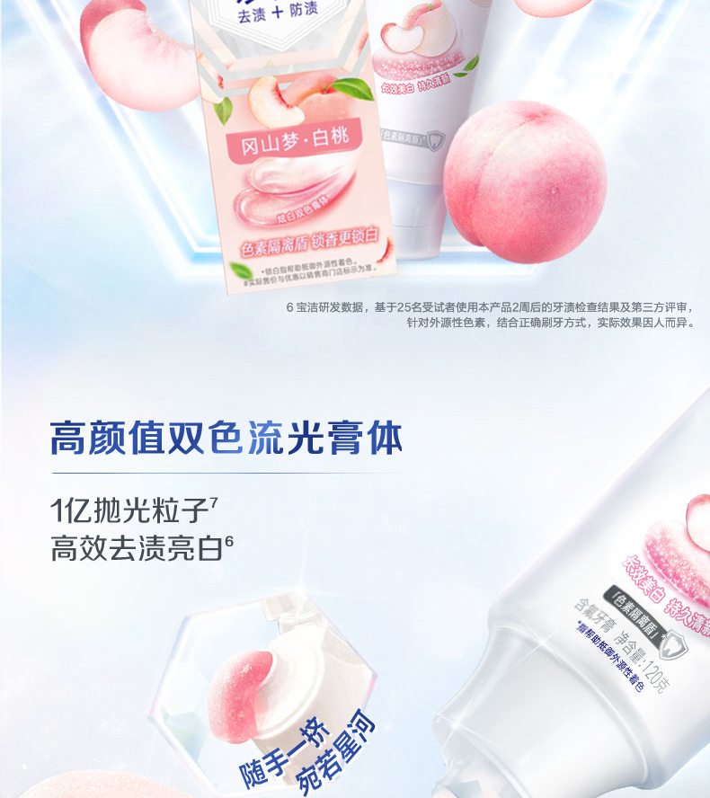 华西20240515-佳洁士锁白牙膏85克+35克(白桃味)/一支