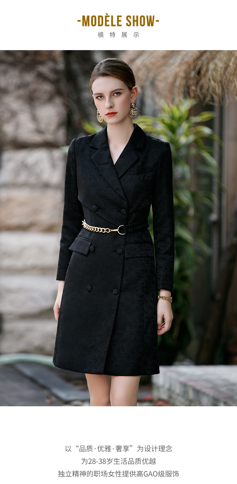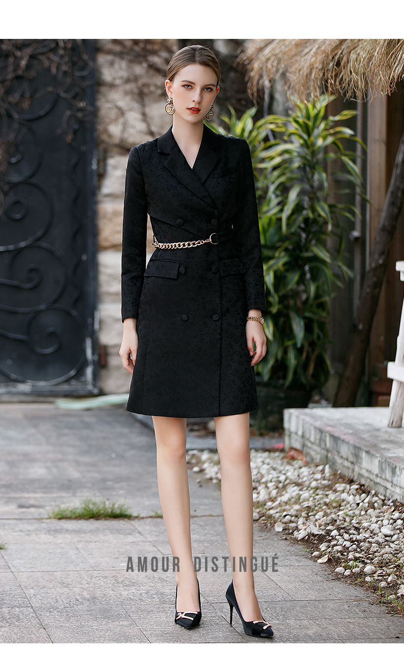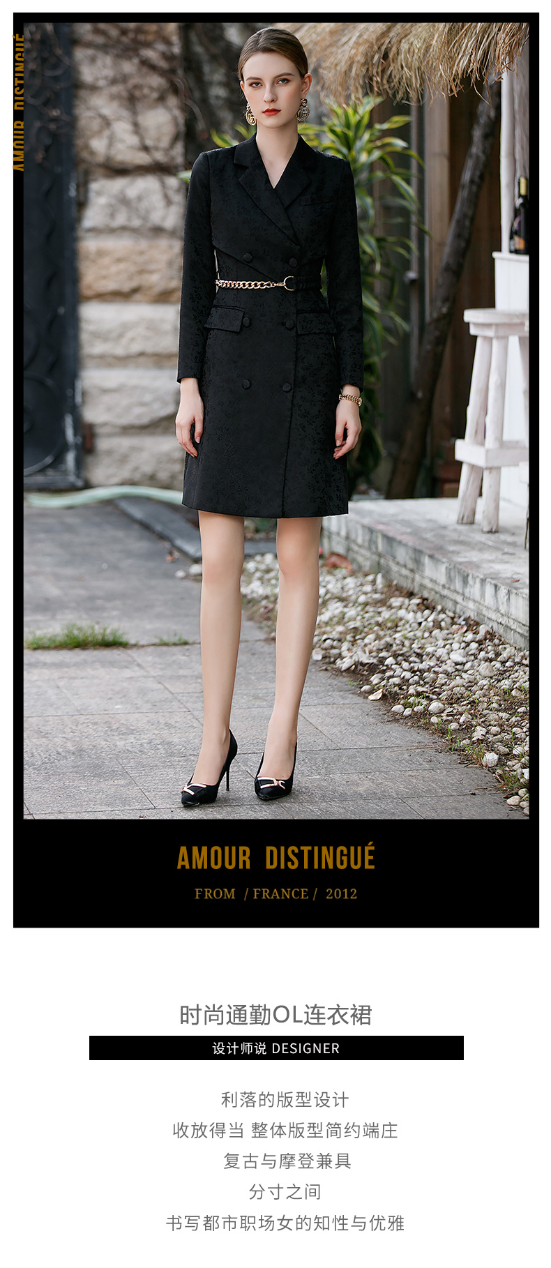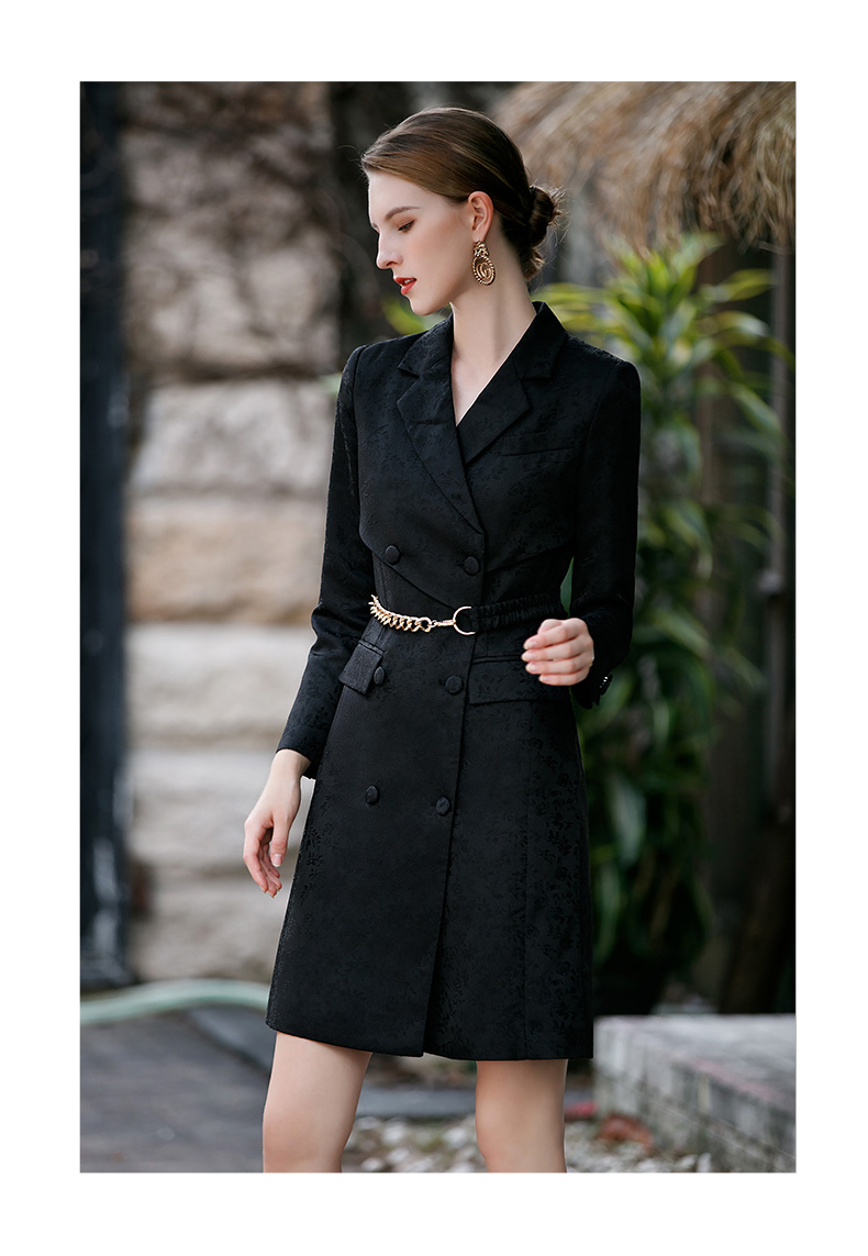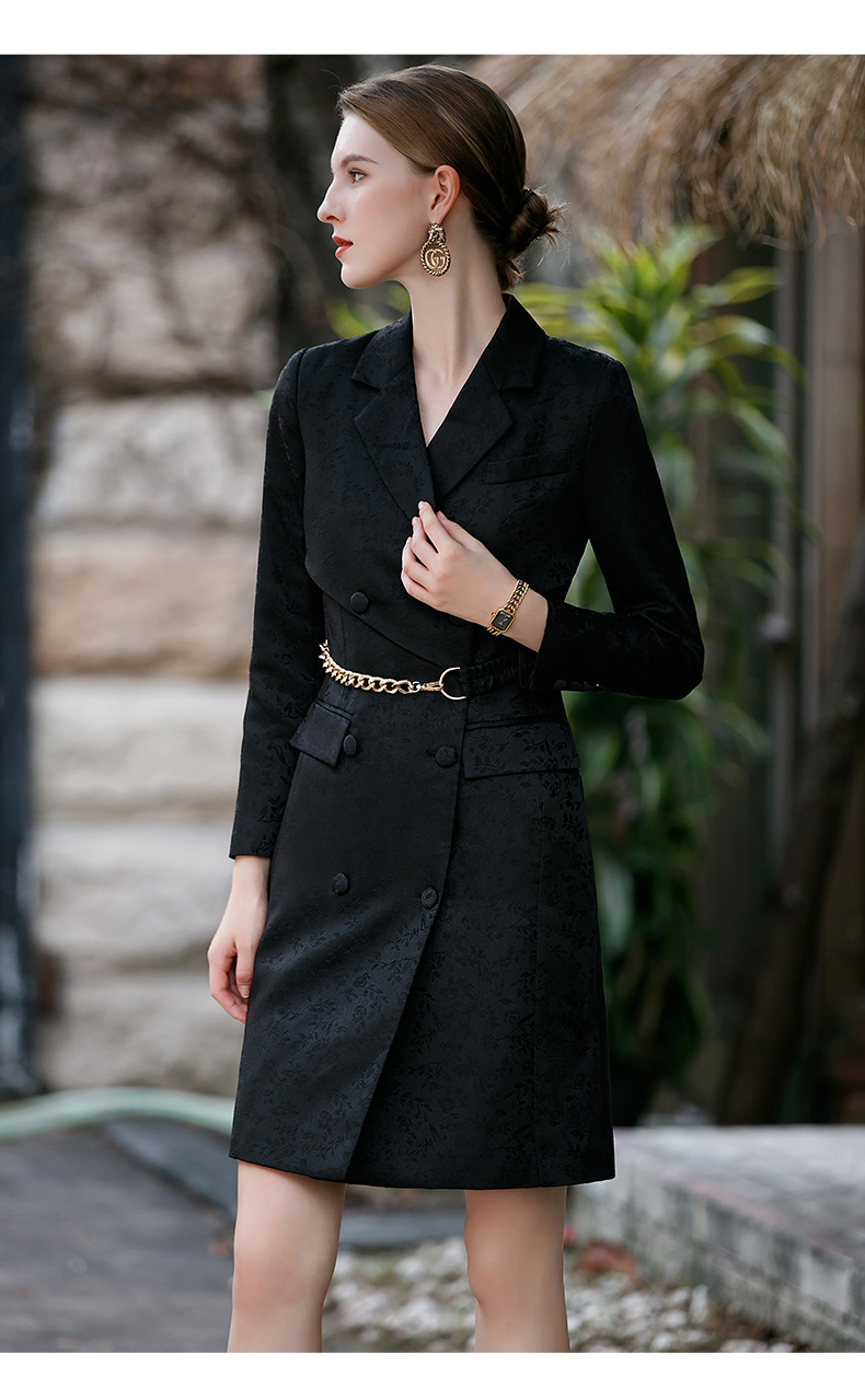 IWY/赫本风黑色连衣裙女秋冬缎面暗花纹长袖西服裙高级Q758
