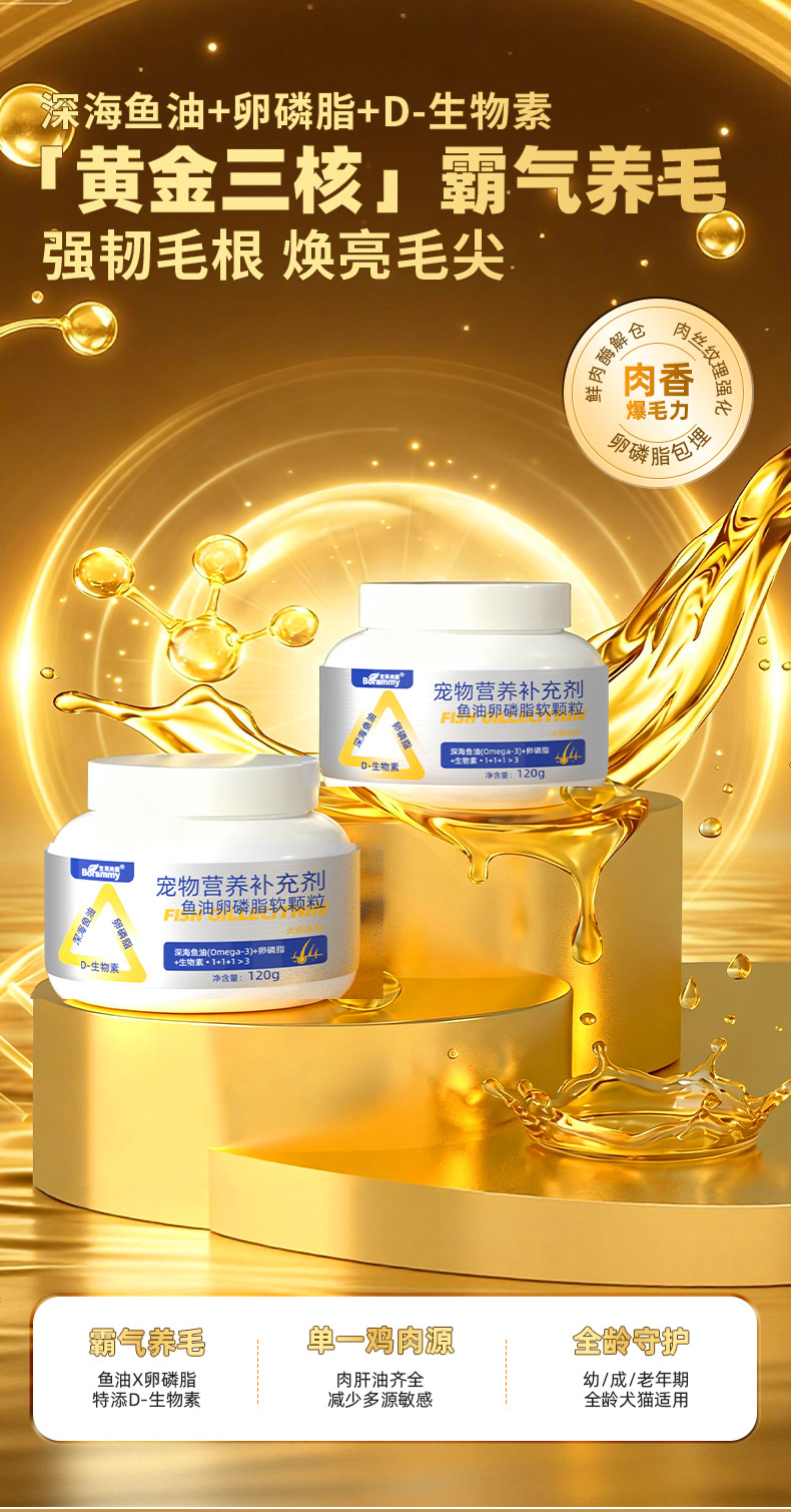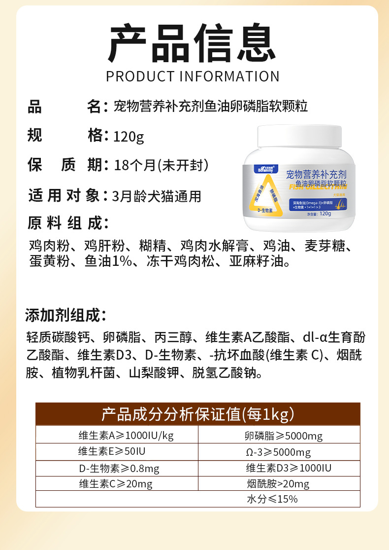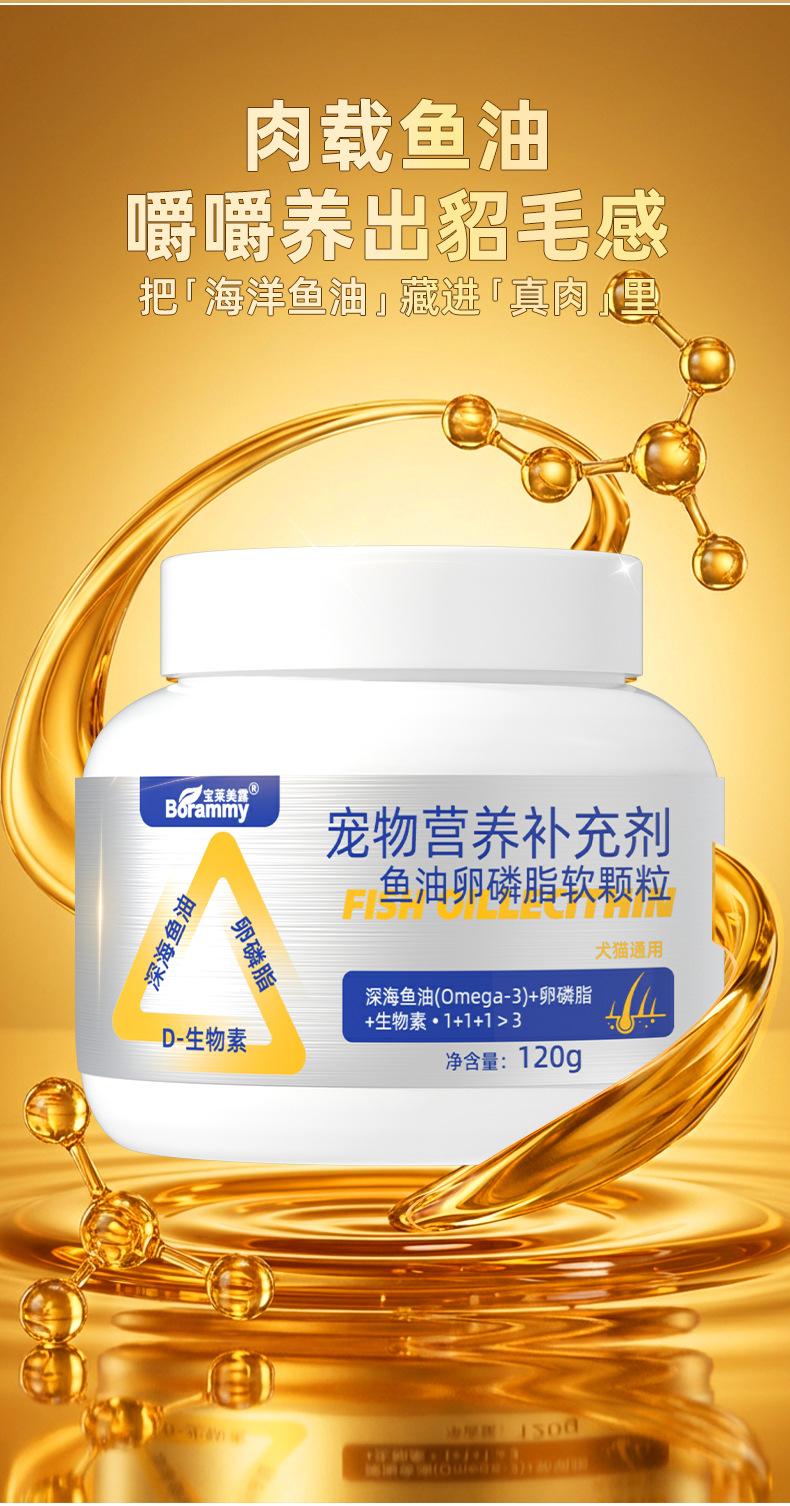 宝莱美露鱼油卵磷脂颗粒120g 犬猫通用鱼油幼猫成猫毛发养护