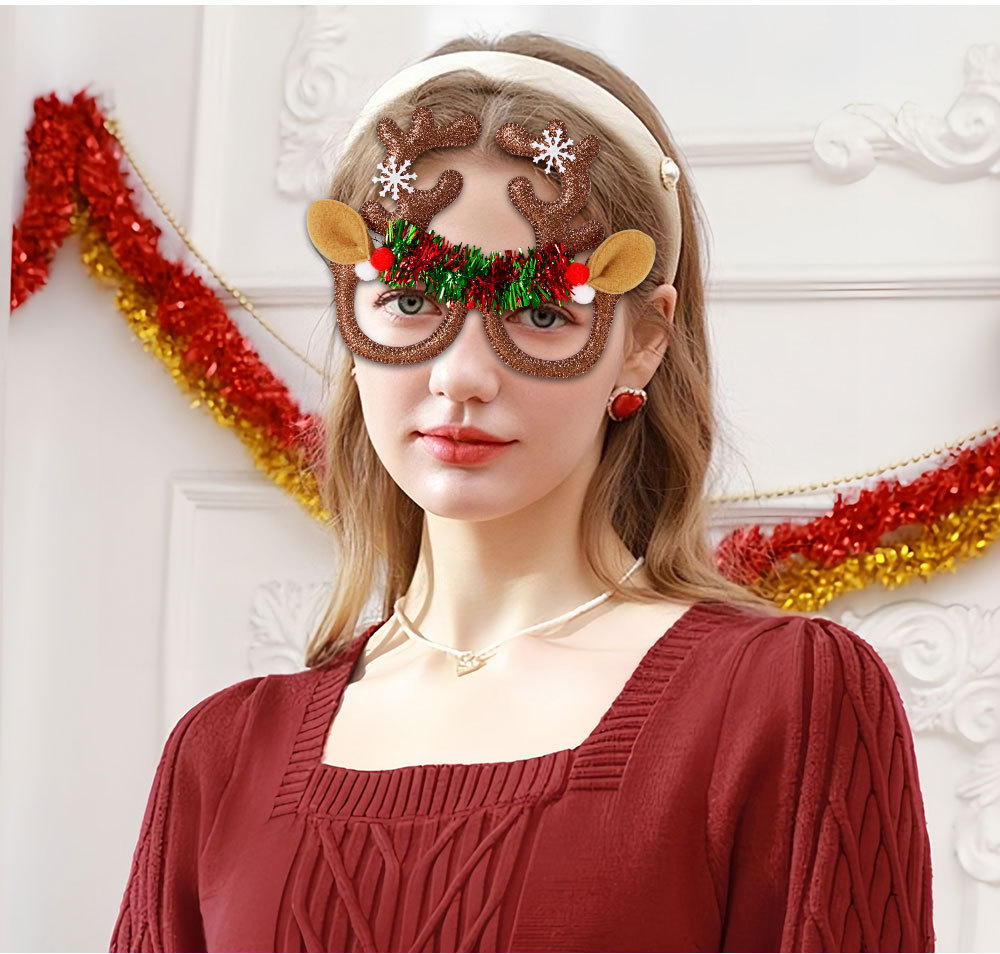 【新款圣诞节创意礼物】卡通鹿角圣诞帽眼镜 成人儿童派对聚会装饰眼镜