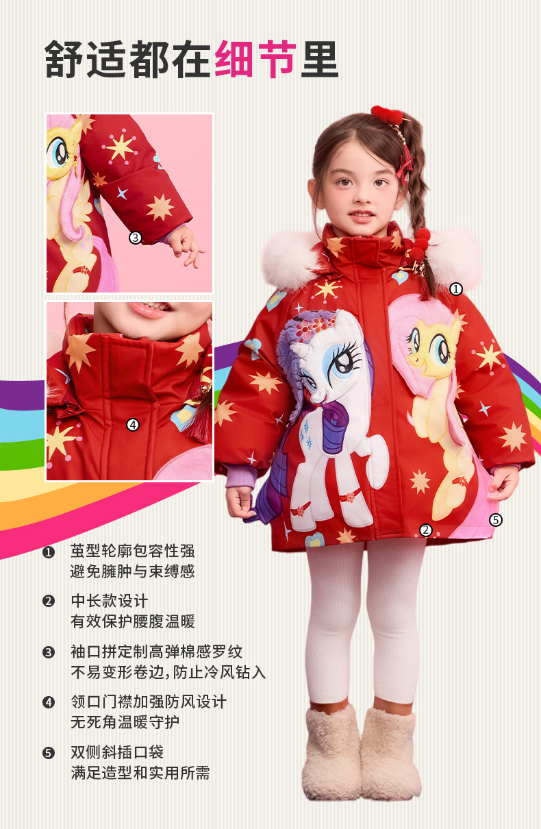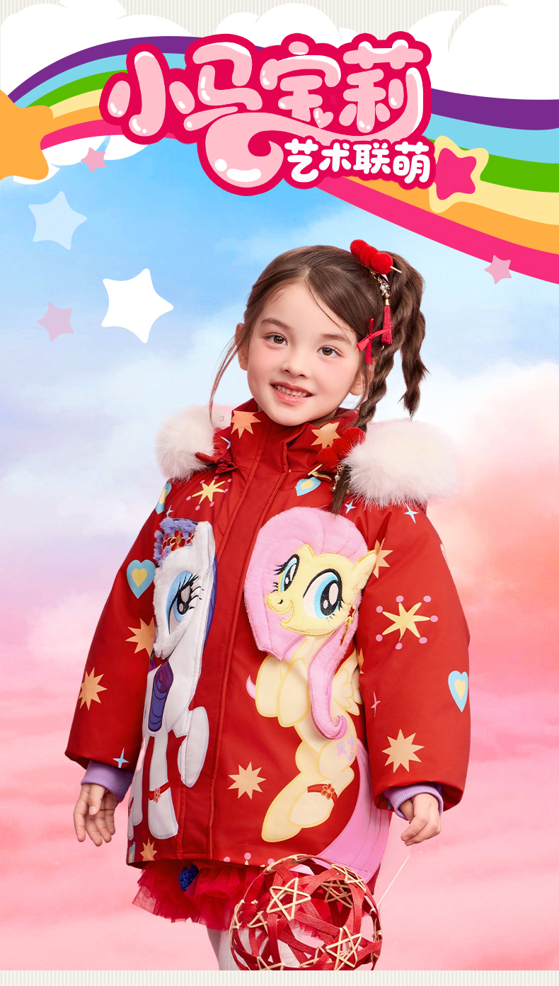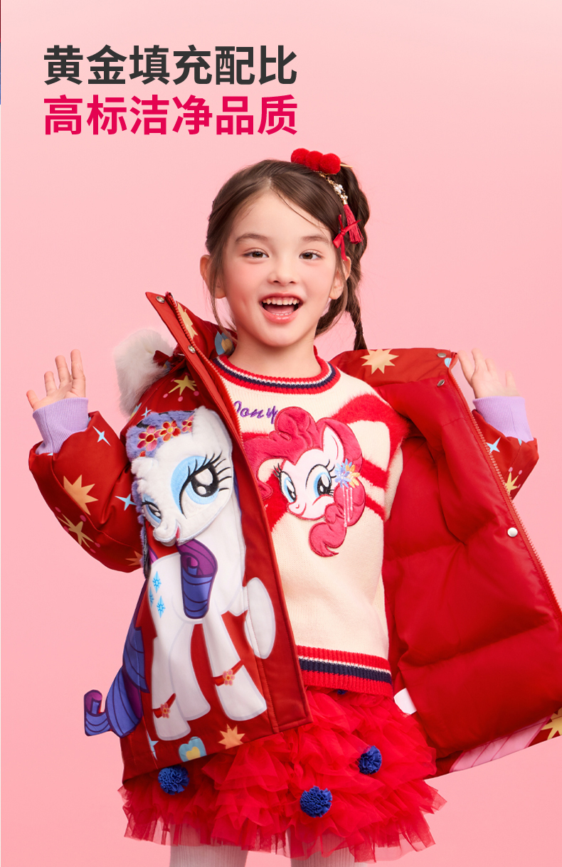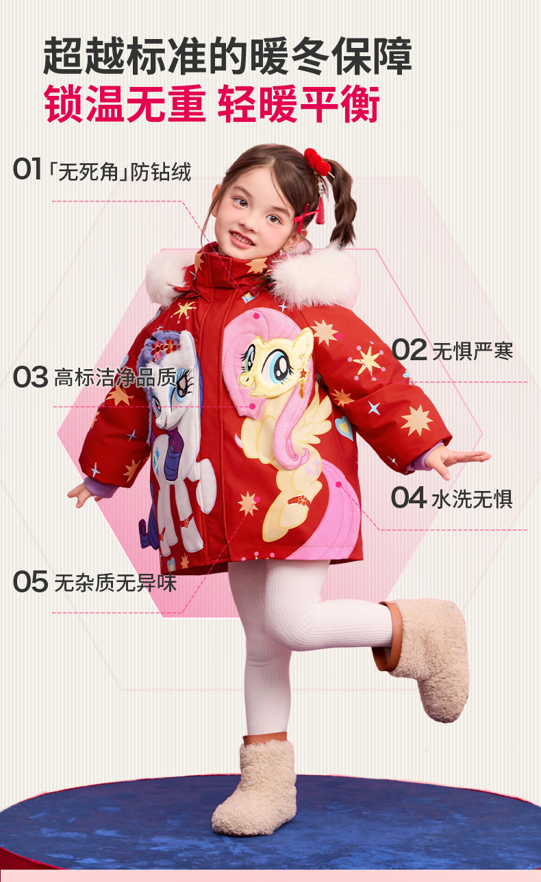 小马宝莉联名年衣冬装新款女童加厚小马宝莉新年友谊魔法羽绒服