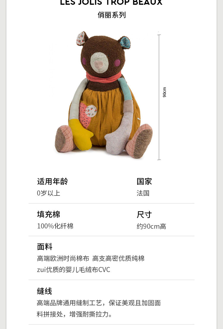 Moulin Roty 熊仔玩偶 法式玩偶 适合年龄0岁+ 俏丽系列 665026