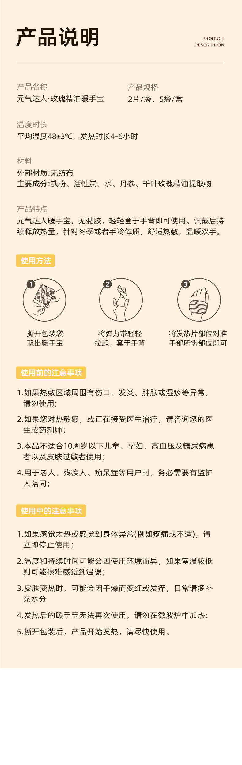 【双12活动中】元气达热敷暖手宝千叶玫瑰精油 穿戴式暖手宝 拒绝冰块手