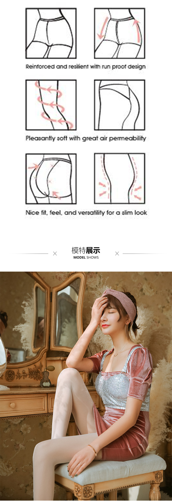 2.穿着时,请小心指甲、手指的死皮角质、佩戴的戒指等各种易拉破丝袜的物体