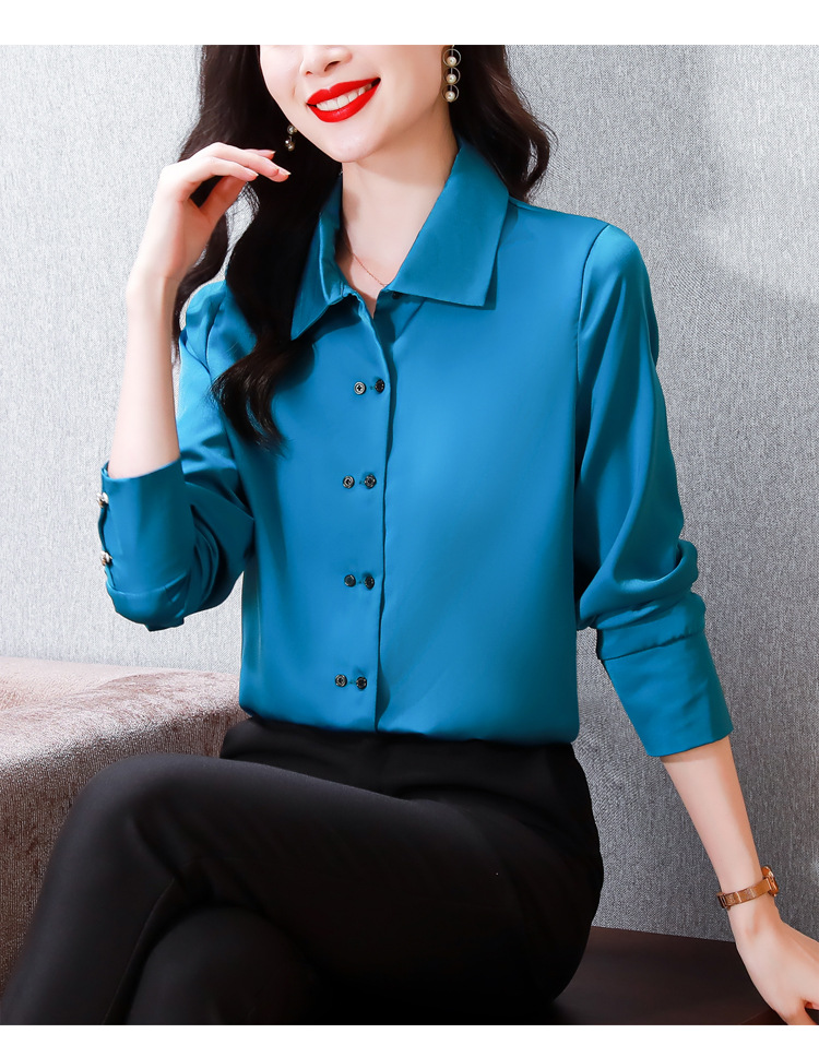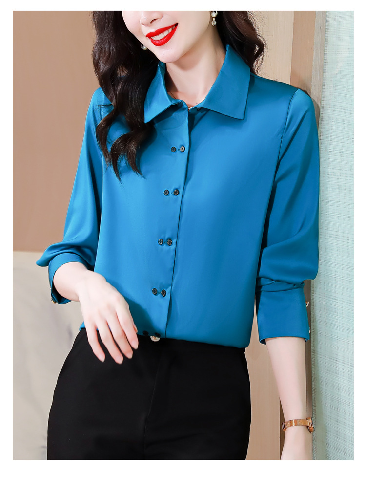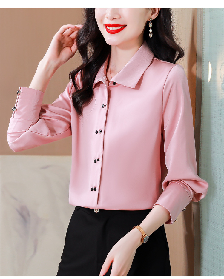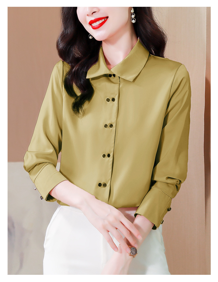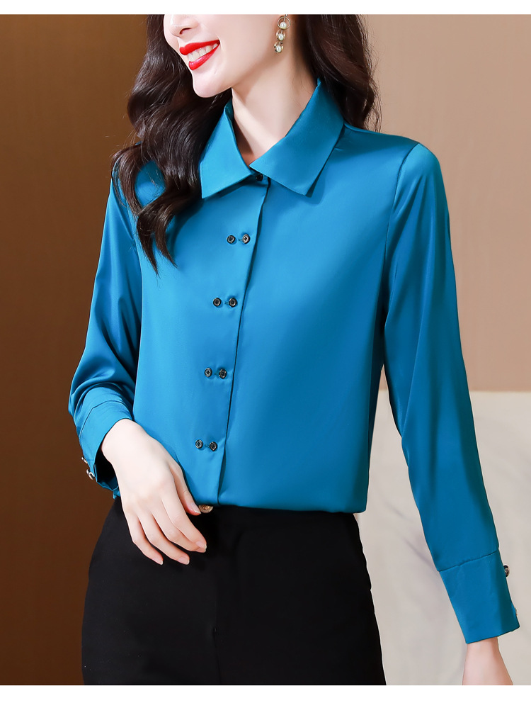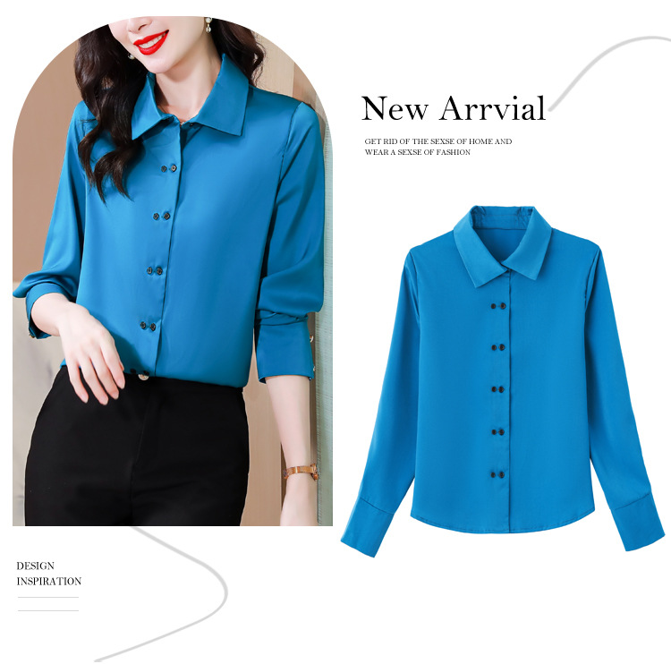 秋季新款,时尚经典纯色双排扣设计简约时尚百搭大码衬衫KQL-B24N2335